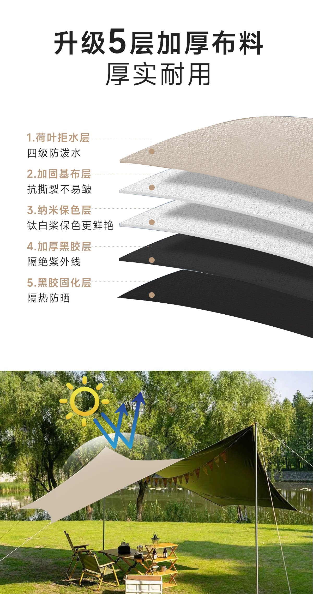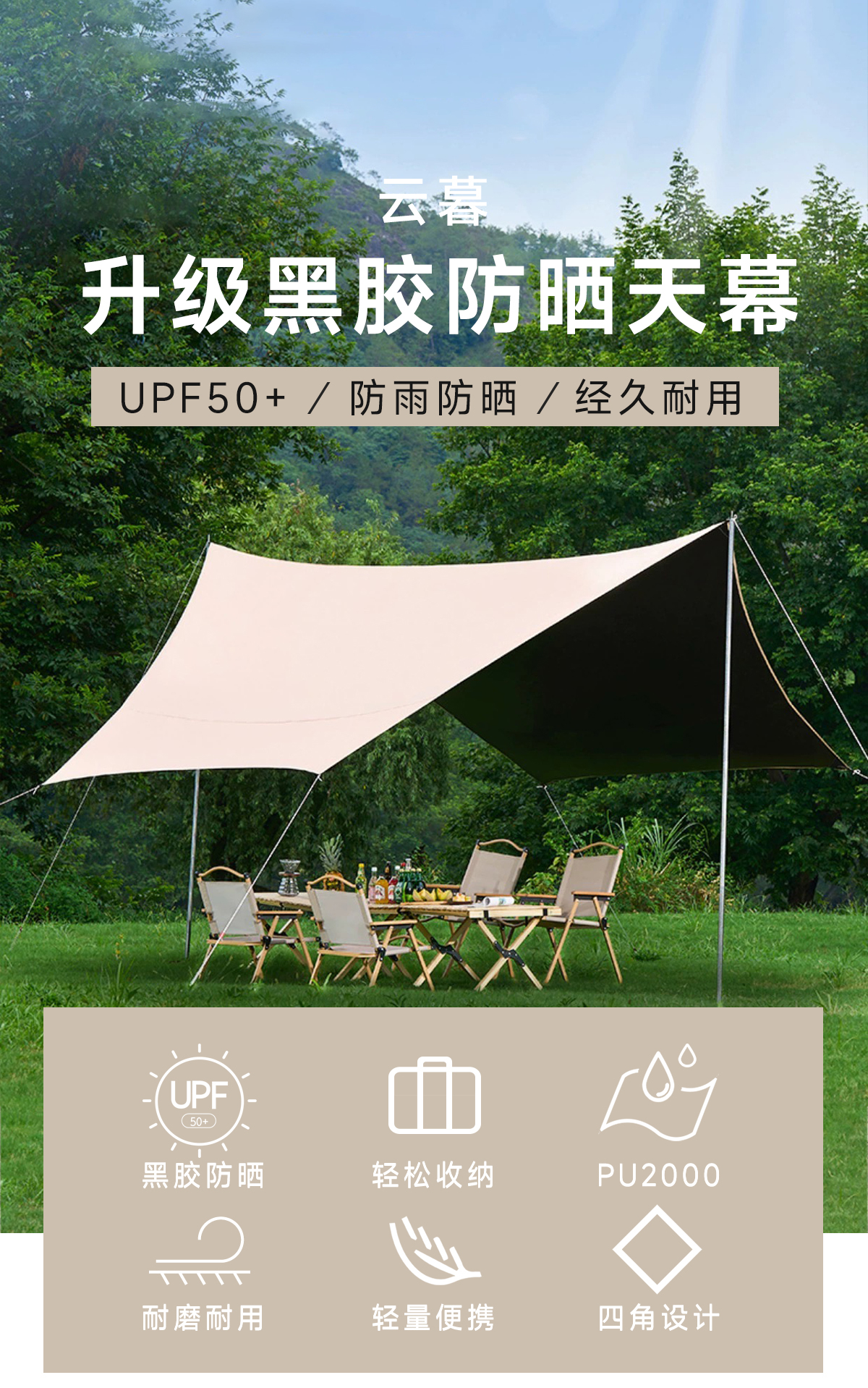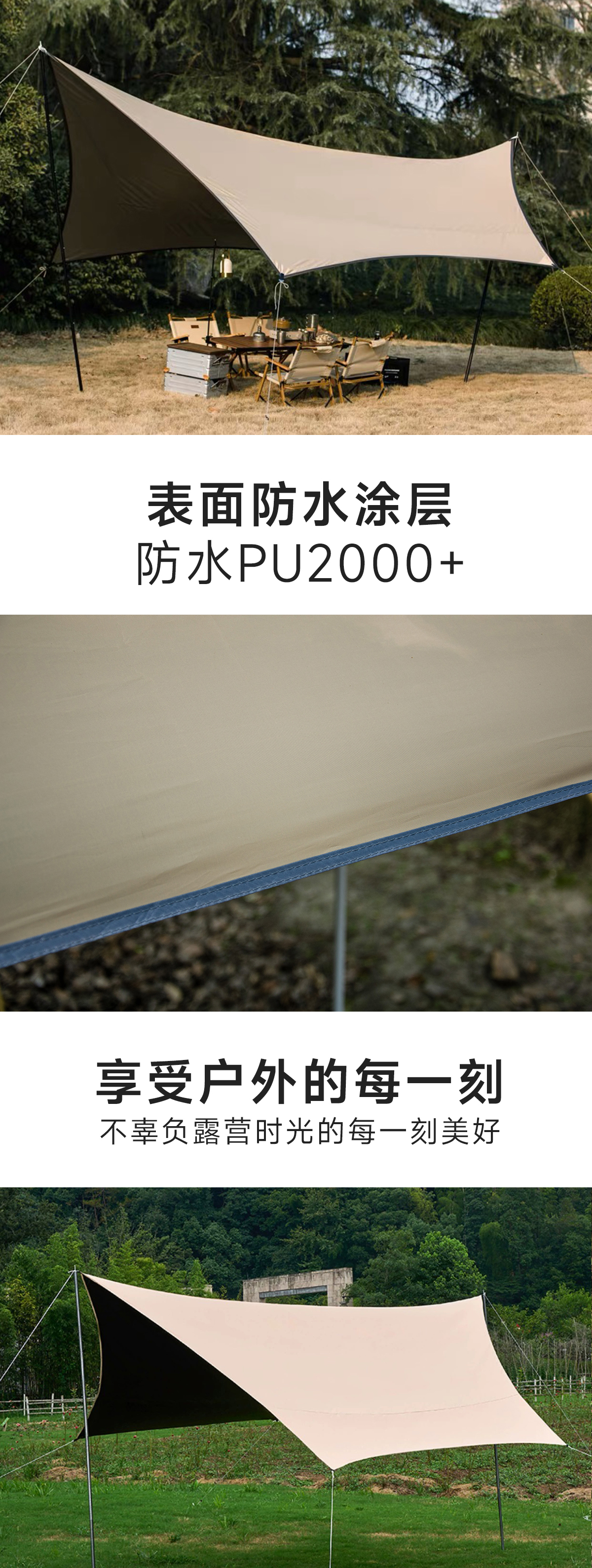 徽羚羊 云凌 六角天幕 黑胶 4.5*4.5M 卡其色 HLY-TM-23013