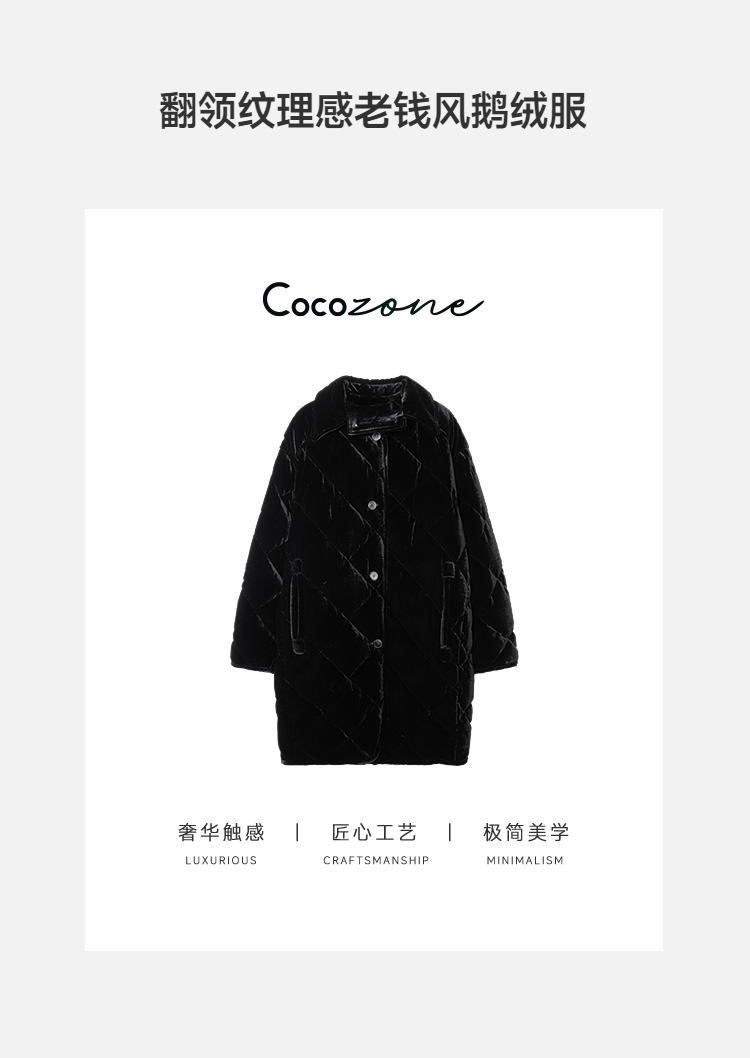 COCO ZONE 刘一一“慕尼丝绒”翻领纹理感老钱风鹅绒服 CD2A2548