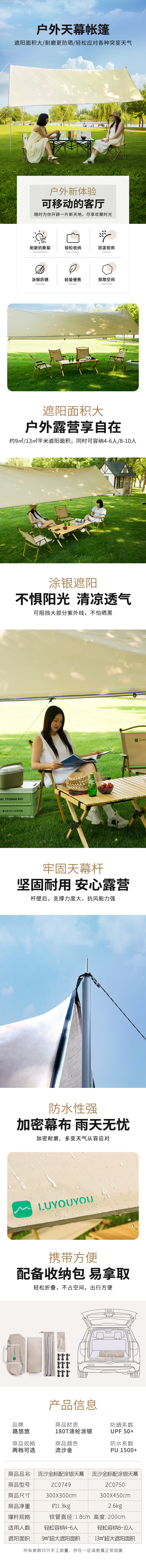 路悠悠流沙金标配涂银天幕3*3m ZC0749