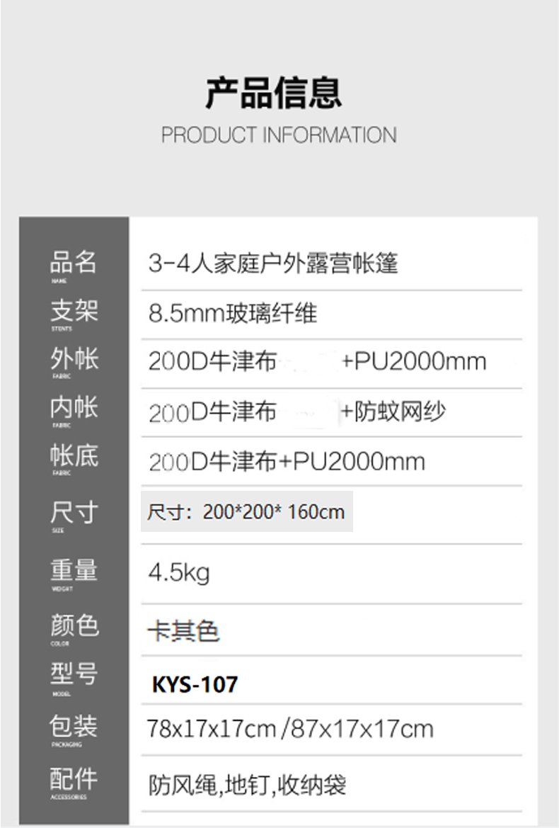 凯亚仕户外便携式折叠露营帐篷KYS-107