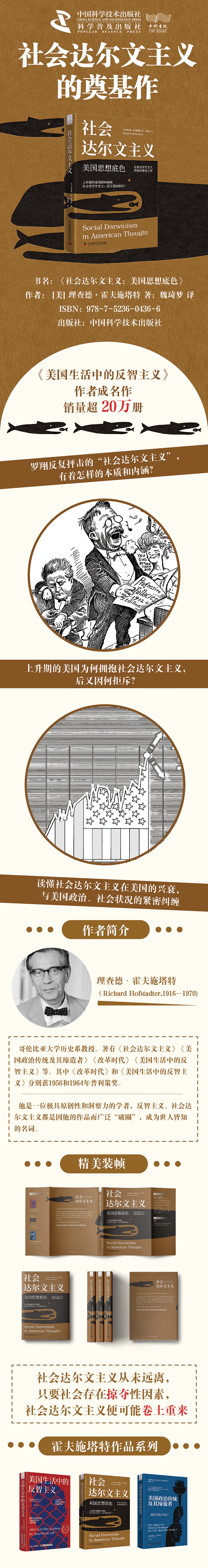 1.《美国生活中的反智主义》作者成名作,为其博士论文修订,才气纵横,横扫美国大众和学术界,销量超过20万册。2.社会达尔文主义现象的奠基作。本书回顾了社会达尔文主义在美国的兴衰,解读上升期的美国为何拥抱丛林法则,后来又为何排斥它?3.以社会达尔文主义为主线,梳理了美国从内战结束到一战前的政治和社会发展脉络,理解美国当下社会价值观的形成路径。