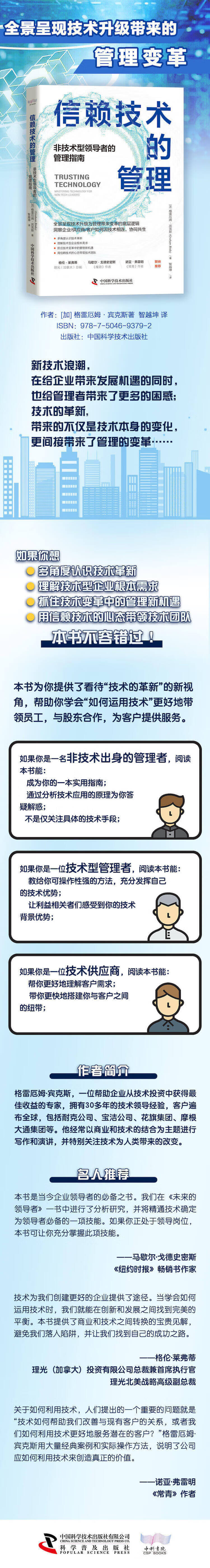愈来愈烈的新技术浪潮,在给企业带来发展机遇的同时,也给管理者带来了更多的困惑。技术的革新带来的不仅是技术本身的变化,更间接带来了管理的变革。企业、供应商、客户也因新技术而更紧密地相连,形成协同共生的局面。 如何把握新技术浪潮中除了技术变革本身之外的管理升级以及商业中各方的协同共生,成为管理者当下最需要认真思考的问题之一。 本书便为读者提供了看待这个问题的新视角,能够帮助读者学会如何运用技术更好地带领员工,与股东合作,为客户提供服务。 本书将帮助你: ?6?1 多角度认识技术革新 ?6?1 理解技术型企业根本需求 ?6?1 抓住技术变革中的管理新机遇 ?6?1 用信赖技术的心态带领技术团队 如果你是一名管理者,而且非技术出身,本书能: ?6?1 成为你的一本实用指南 ?6?1 通过分析技术应用的原理为你答疑解惑 ?6?1 不是仅关注具体的技术手段 如果你是一位技术型管理者,本书能: ?6?1 教给你可操作性强的方法,让你充分发挥自己的技术背景优势 ?6?1 更好地让利益相关者们感受到你的技术背景优势 如果你是一位技术供应商,本书能: ?6?1 帮你更好地理解客户的背景 ?6?1 帮你更好地搭建你与客户之间的纽带