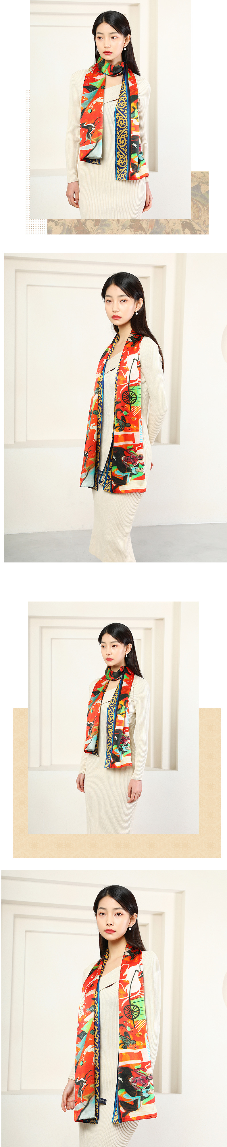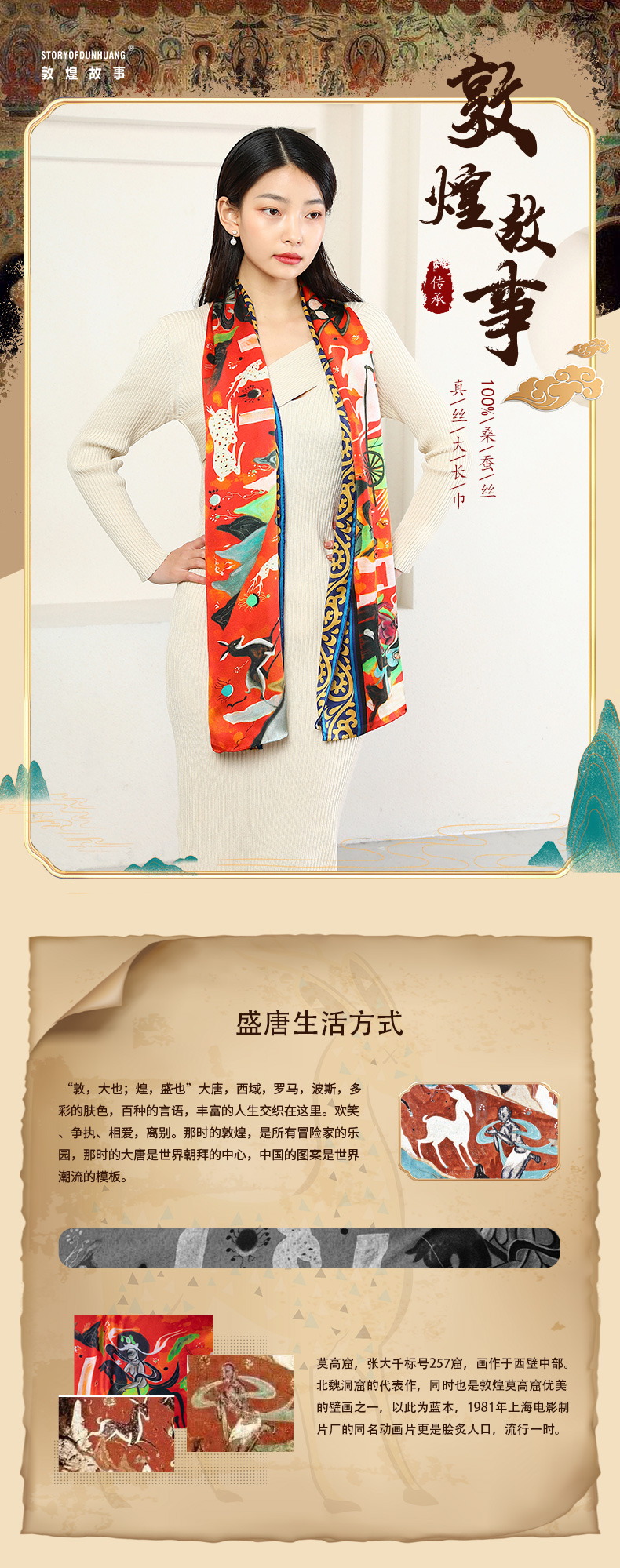 敦煌故事桑蚕丝春秋印花送礼中国风女丝巾