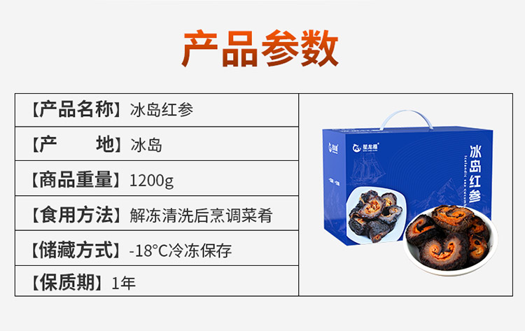 星龙港冰岛深海野生红参 1200g(注:冷冻生鲜类商品不退,质量问题只换)