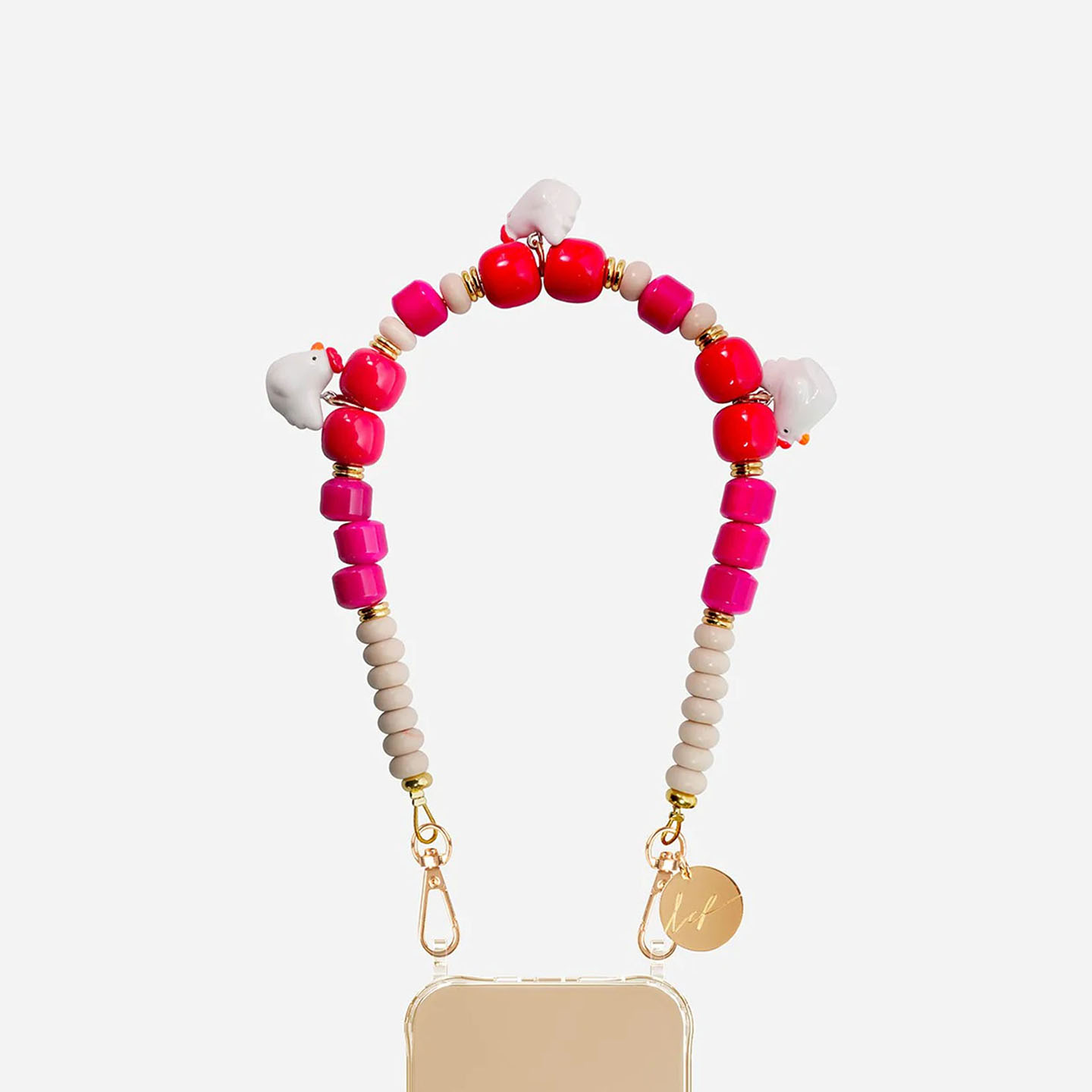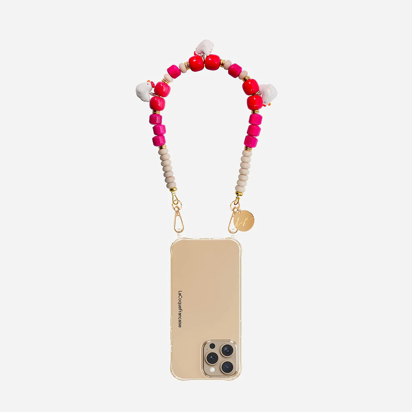 订购14周到|La Coque Française-POUPI-玫红色 小鸡 串珠 短款 手机链[法国设计师]