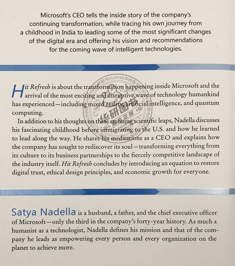 华研原版 刷新 重新发现商业与未来 英文原版书 Hit Refresh 微软变革 微软 CEO 萨提亚纳德拉 比尔盖茨作序 英文版进口管理类书籍