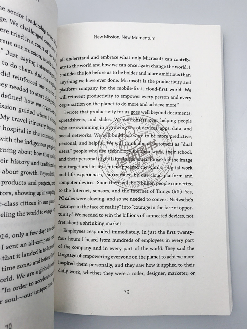 I joined Microsoft in 1992 because I wanted to work for a company filled with people who believed they were on a mission to change the world. That was twenty-five years ago, and I’ve never regretted it. Microsoft authored the PC Revolution, and our success—rivaled perhaps only by IBM in a previous generation—is legendary. But after years of outdistancing all of our competitors, something was changing—and not for the better. Innovation was being replaced by bureaucracy. Teamwork was being replaced by internal politics. We were falling behind.
