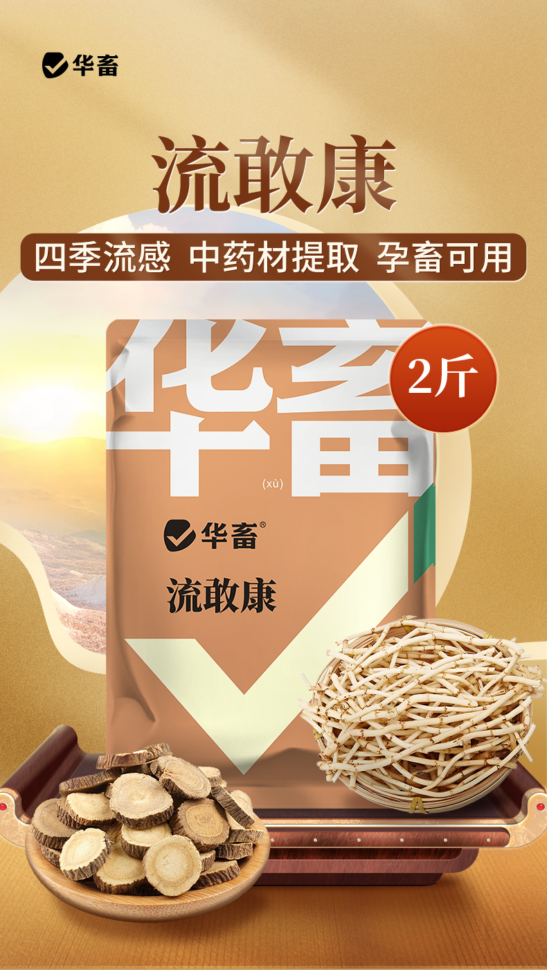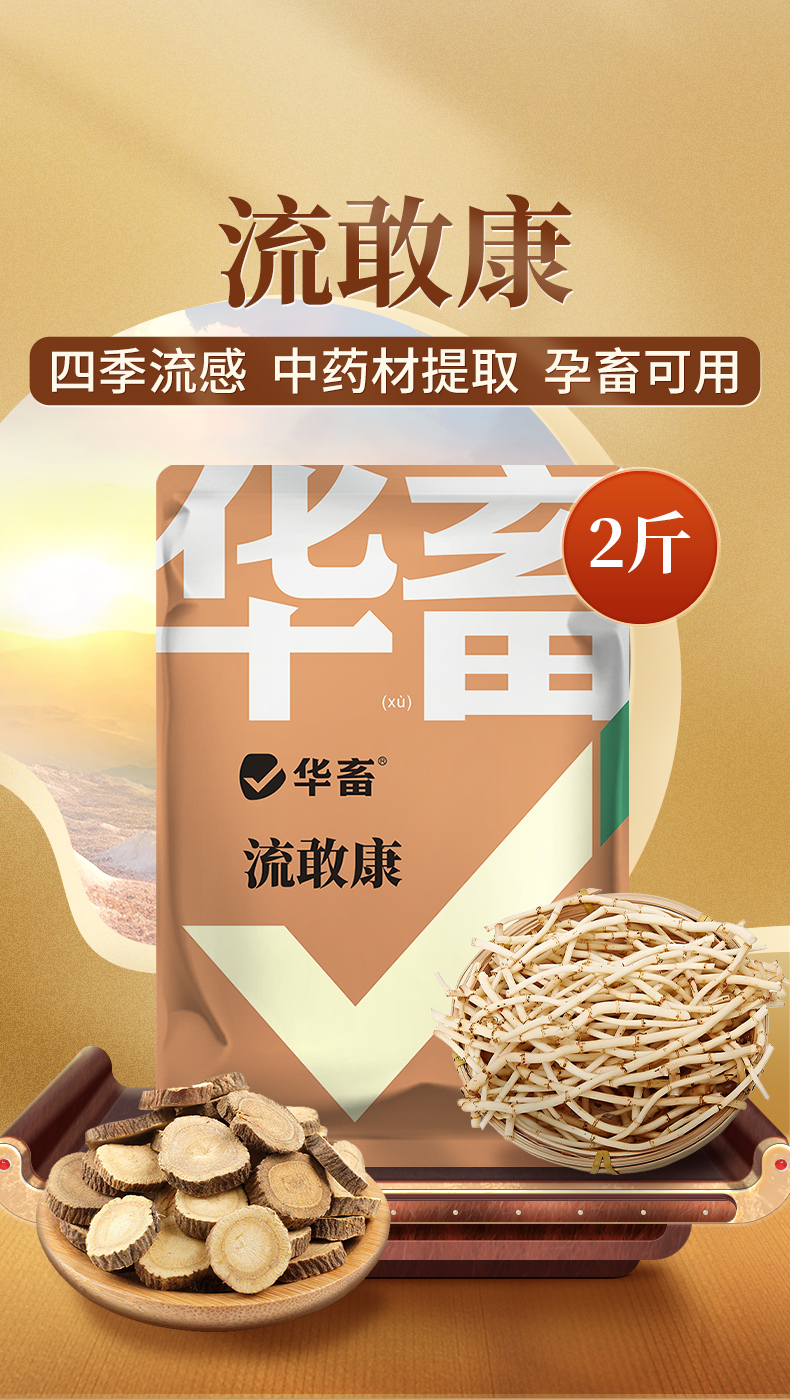 华畜四季流感兽用提免疫中药提取猪牛羊鸡鸭鹅孕畜可用呼吸流感康