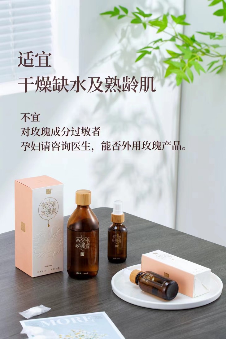 【七夕节专场】素妙娘七夕活动礼包(素颜玫瑰霜1瓶+玫瑰纯露1瓶250ml+玫瑰精华油一瓶20ml三件套)额外送价值119元的素妙娘产品:玫瑰纯露(250ml+60ml)+小罐玫瑰花茶一罐