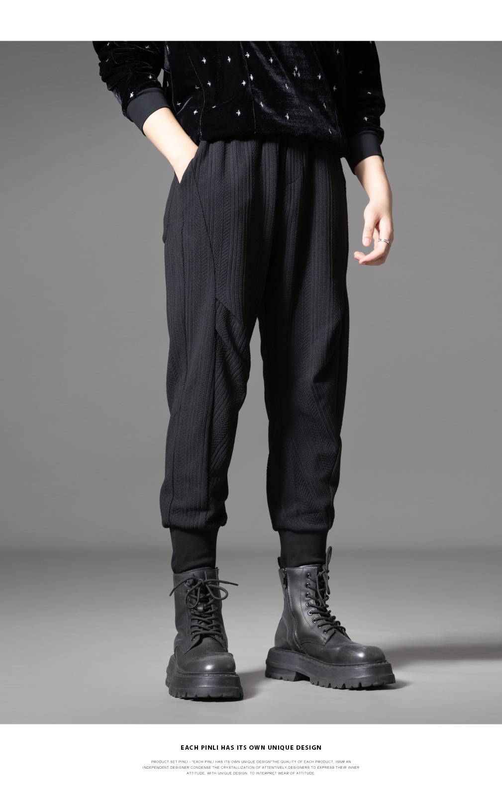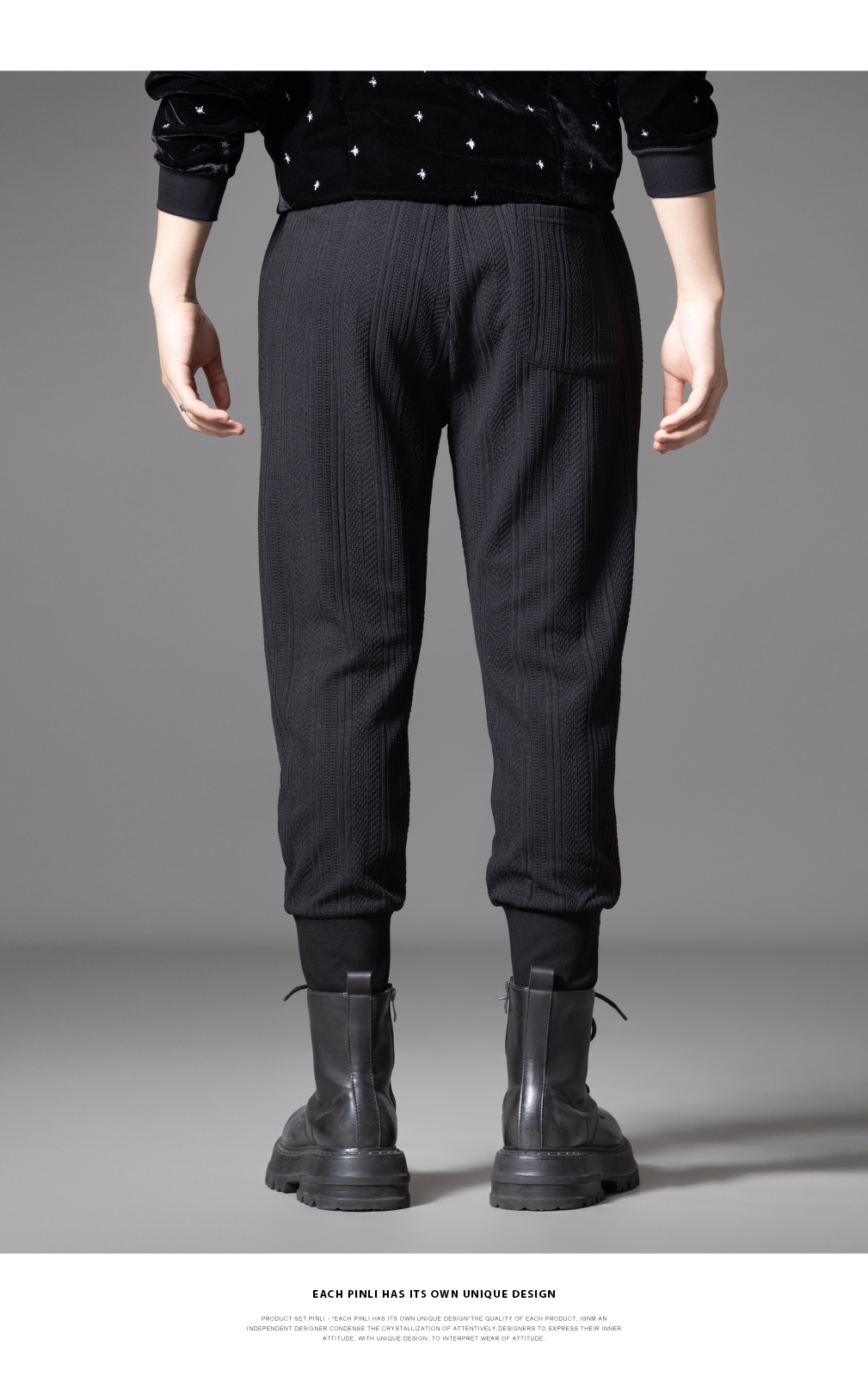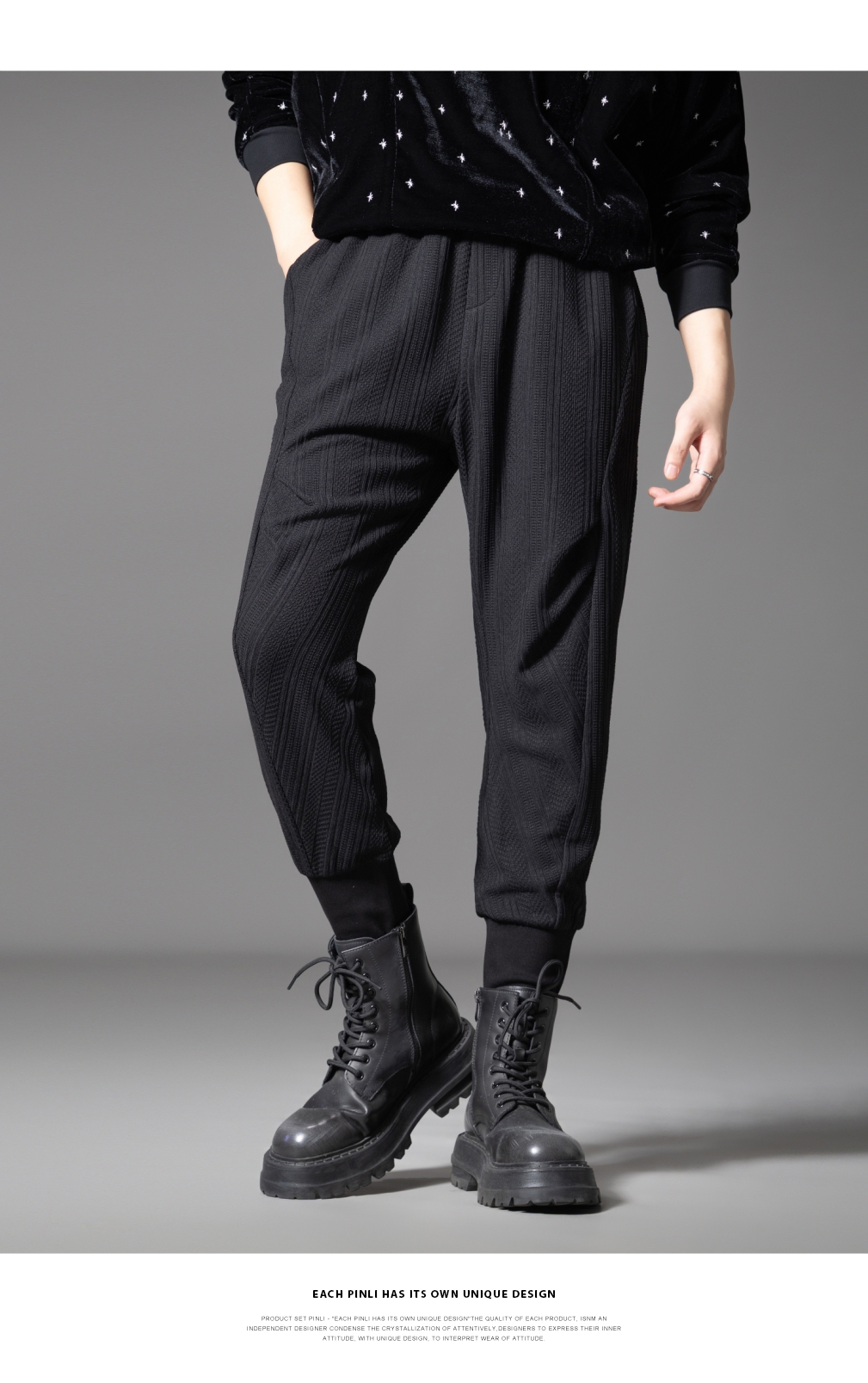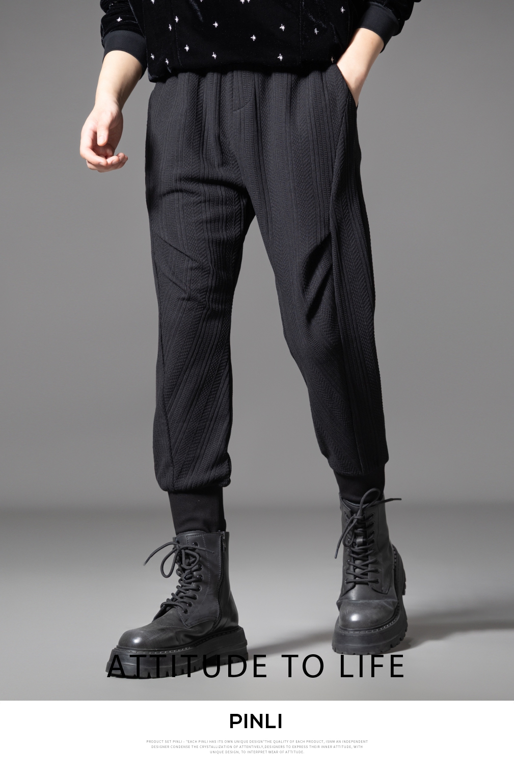 PINLI品立2025秋季新款松紧腰肌理针织提花束脚休闲长裤青年男裤B253117031