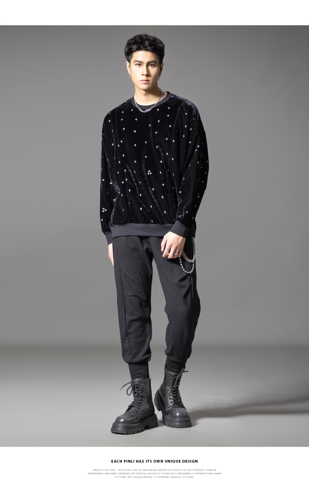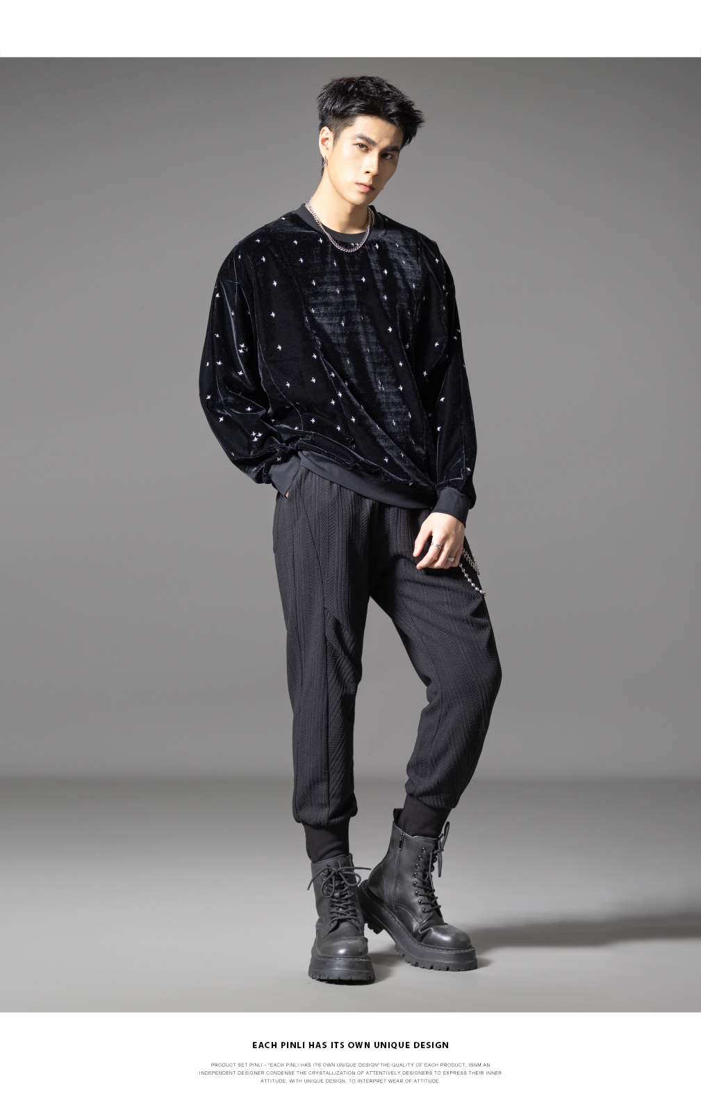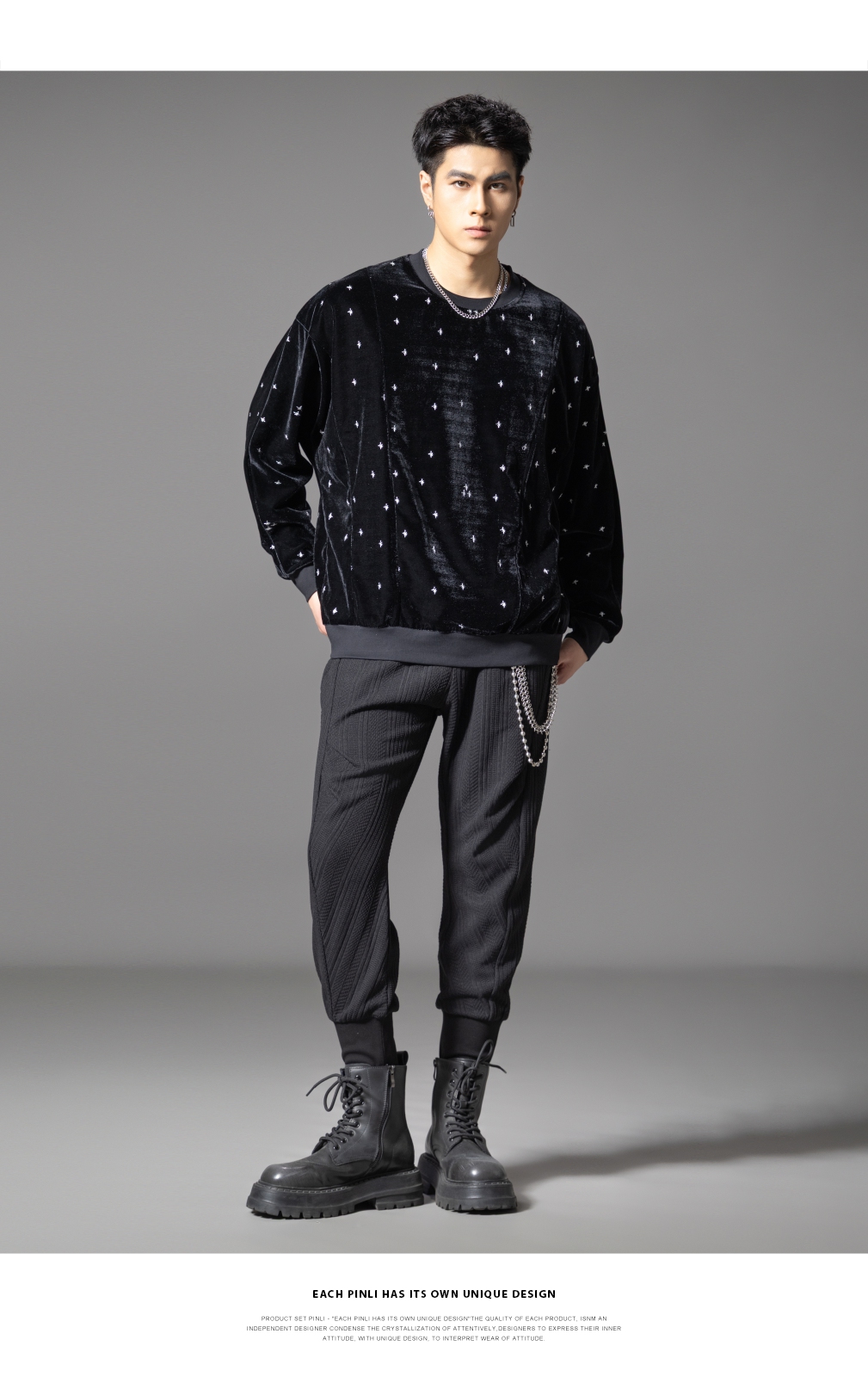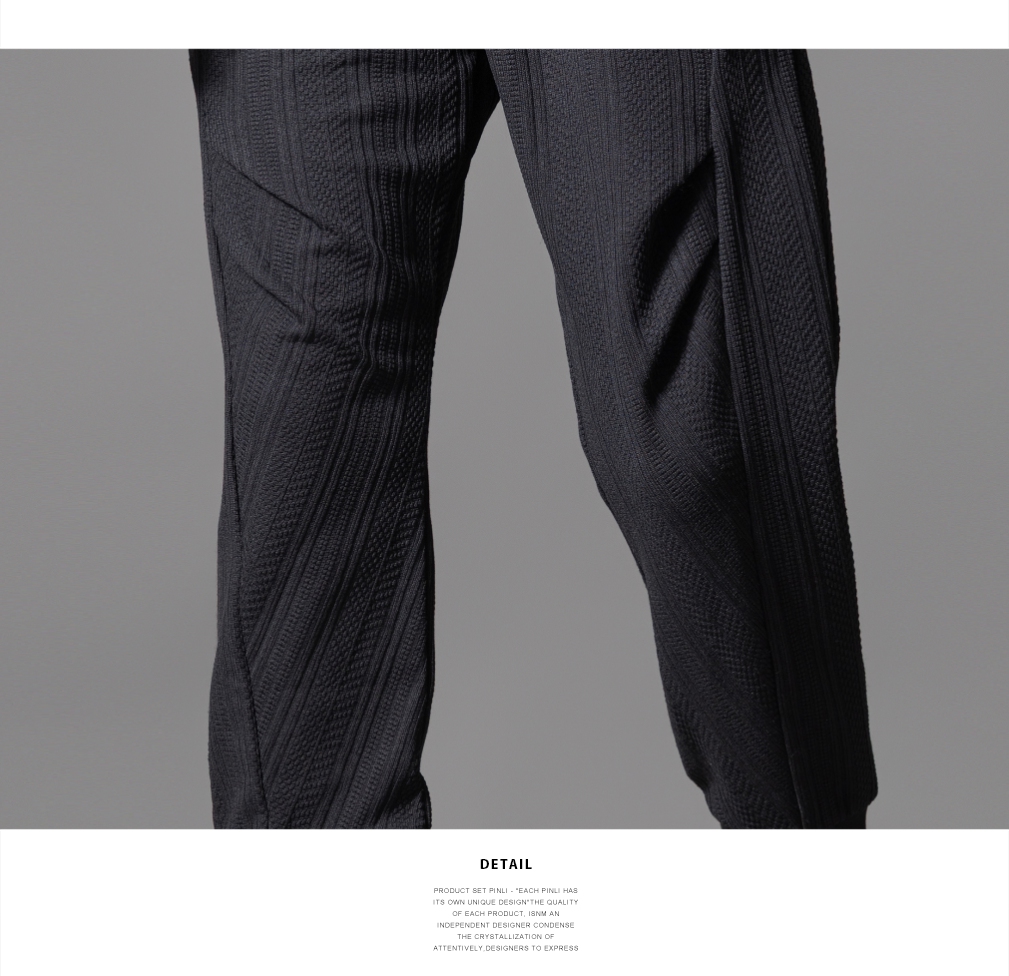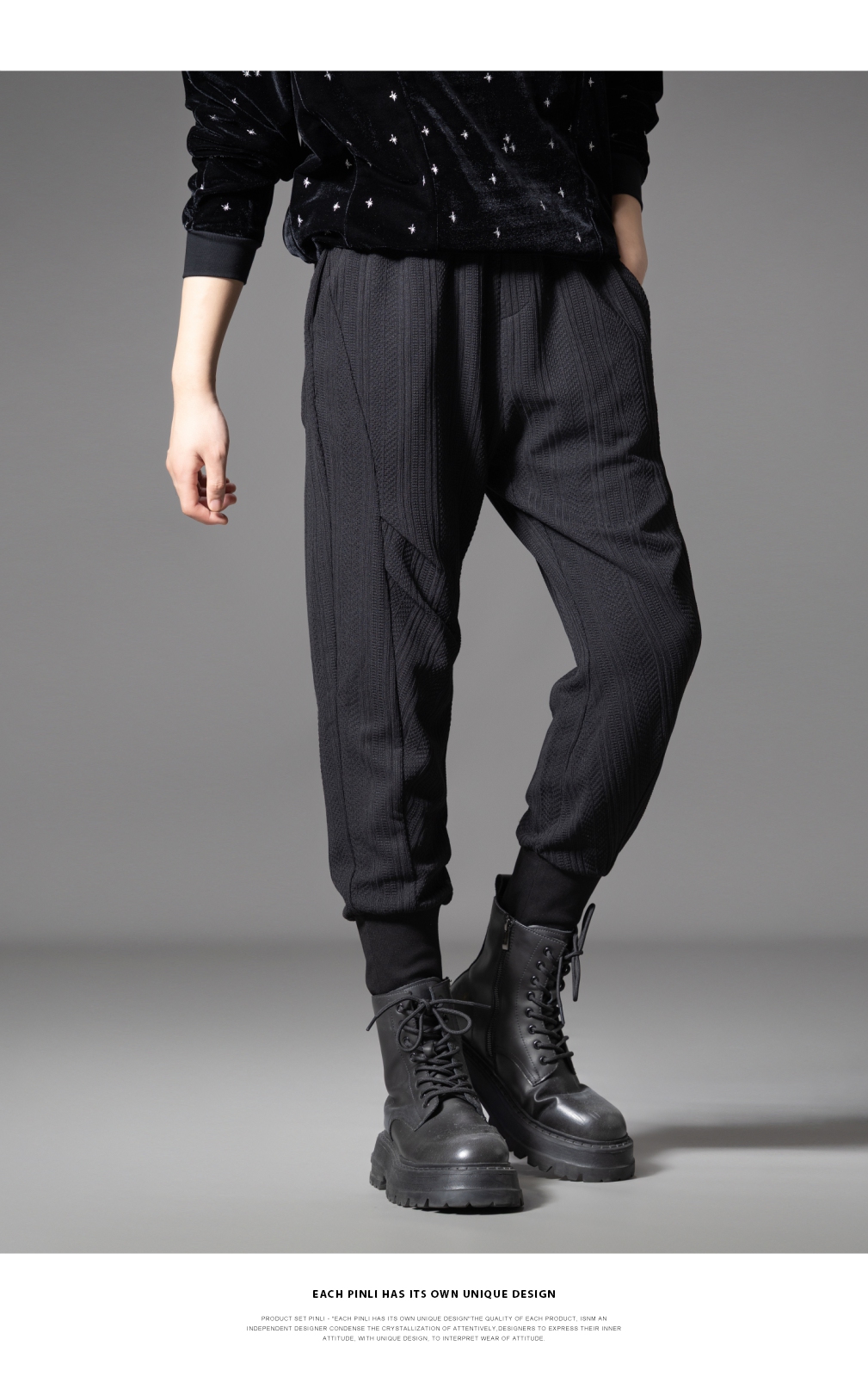 PINLI品立2025秋季新款松紧腰肌理针织提花束脚休闲长裤青年男裤B253117031