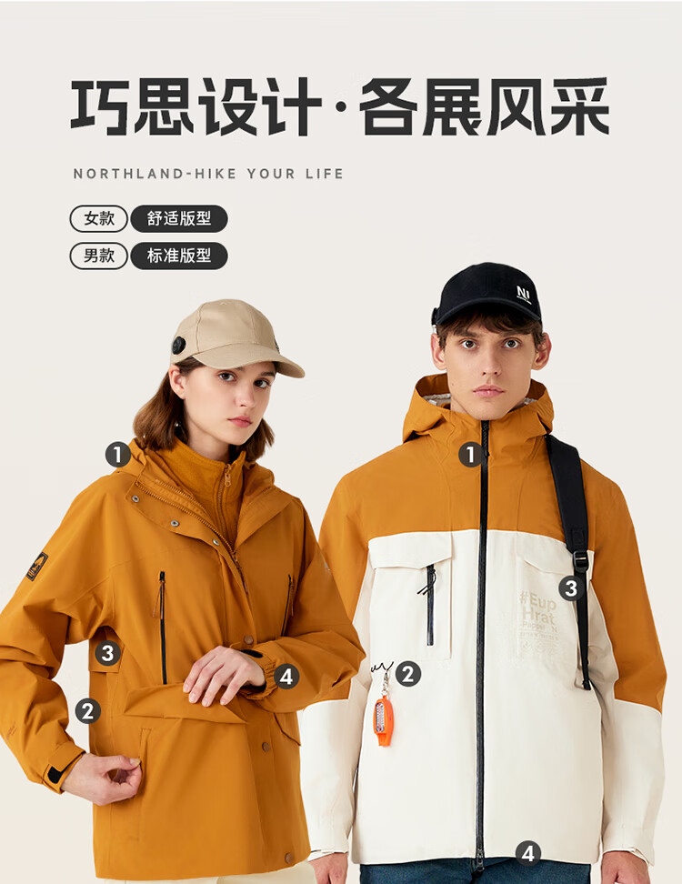 【常爸】诺诗兰 胡杨林二代抓绒三穿冲锋衣 NWJET0502E/NWJET2503E