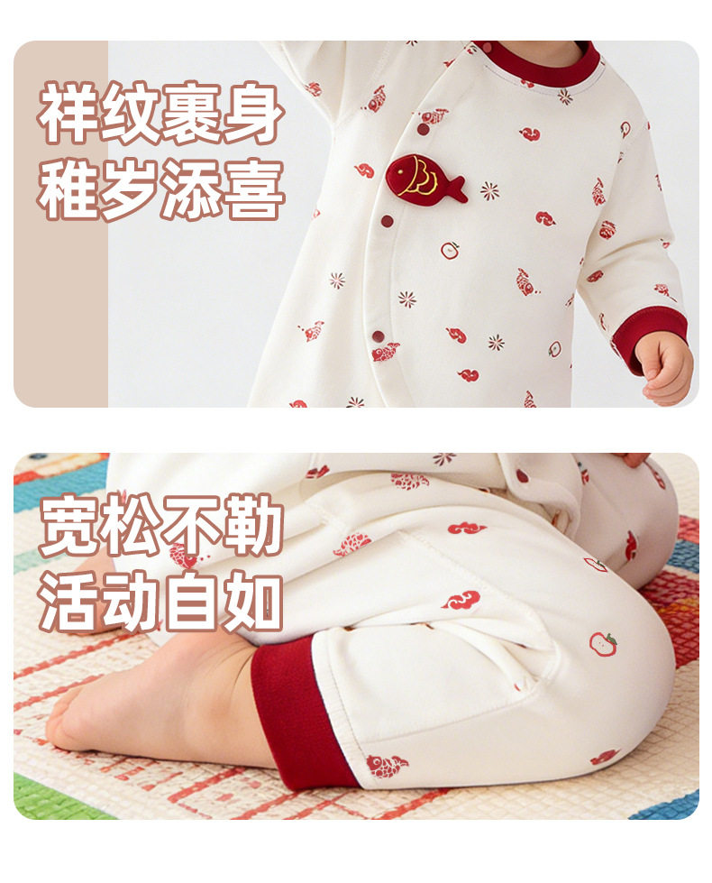 秋冬百天新生儿哈衣纯棉a类婴儿衣服新生儿年家居宝宝连体衣春秋 商品图3