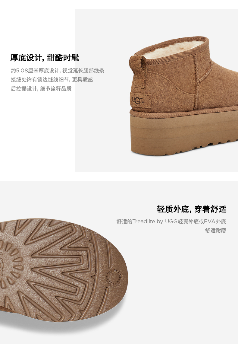 【3-7天发货】UGG秋冬女士舒适休闲经典平底/厚底纯色时尚雪地靴