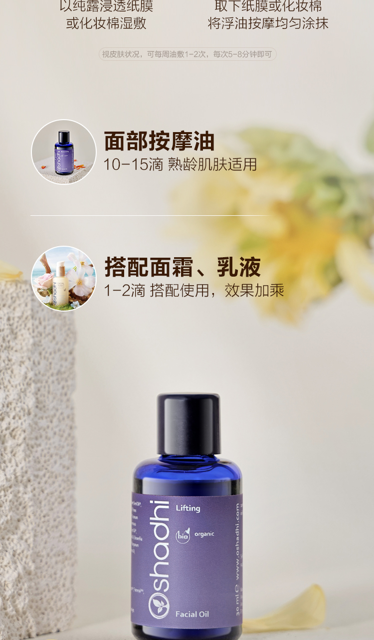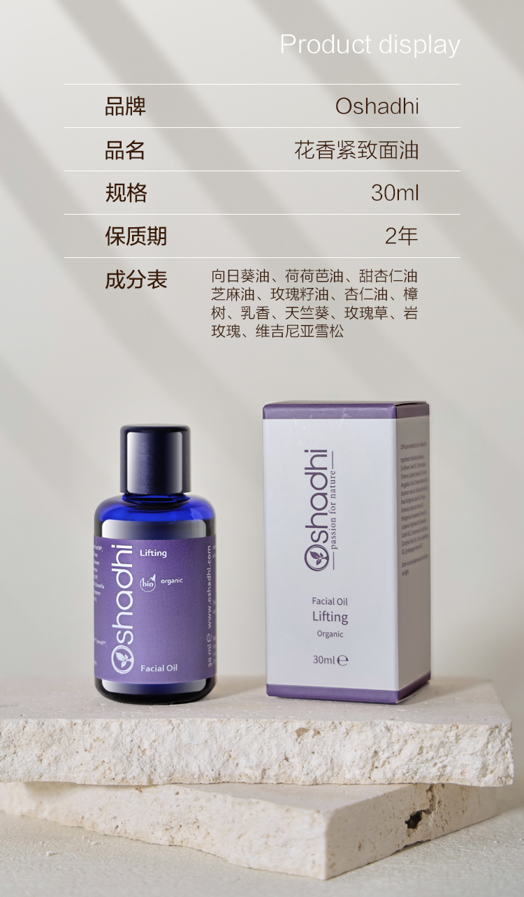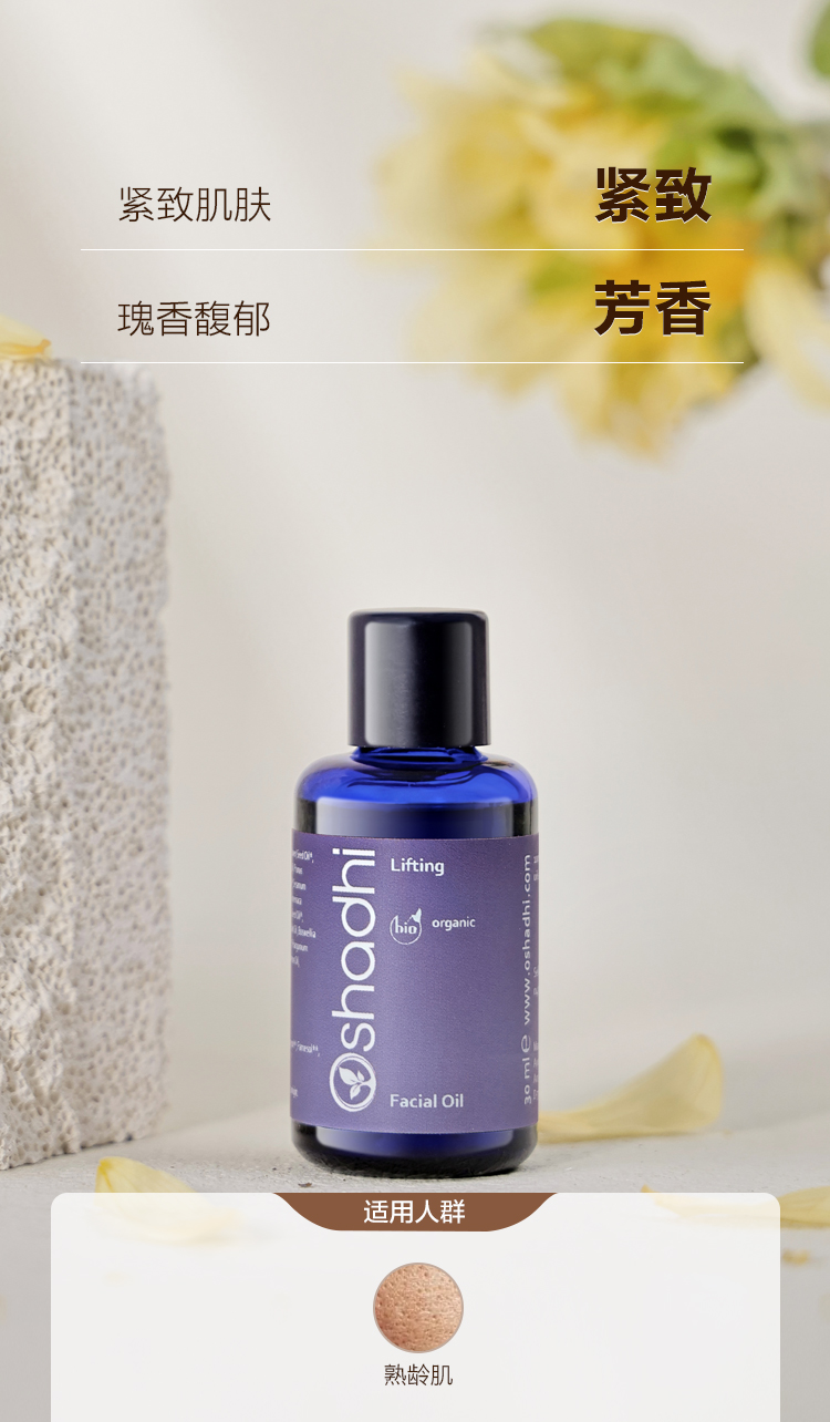 oshadhi德国O家花香紧致面油30ml面部精华油按摩油 熟龄肌肤