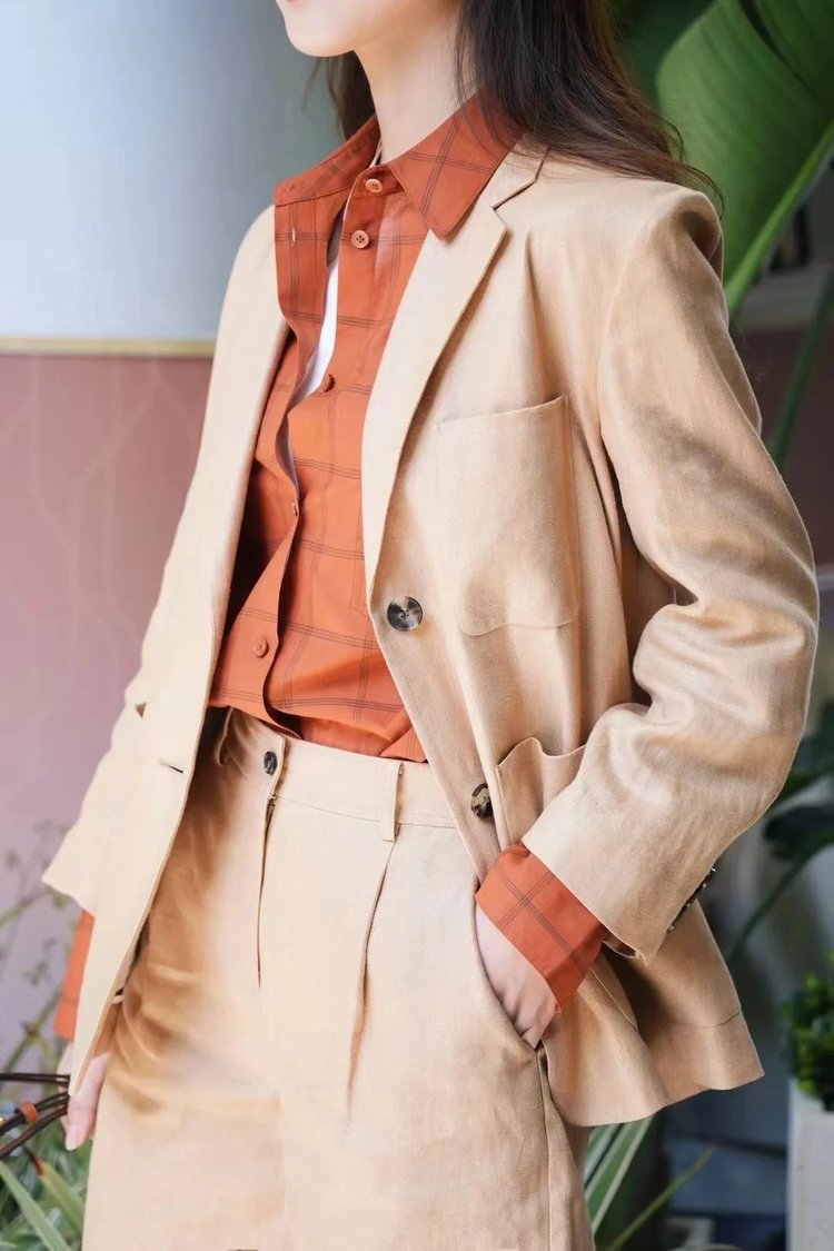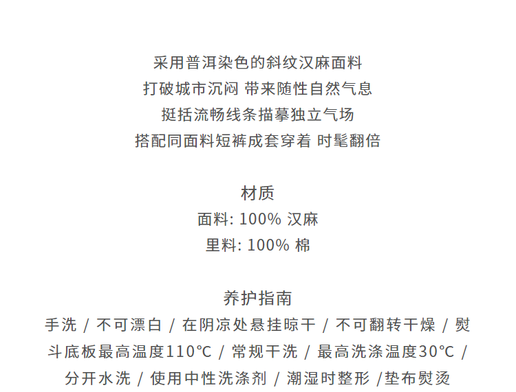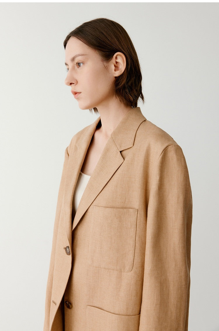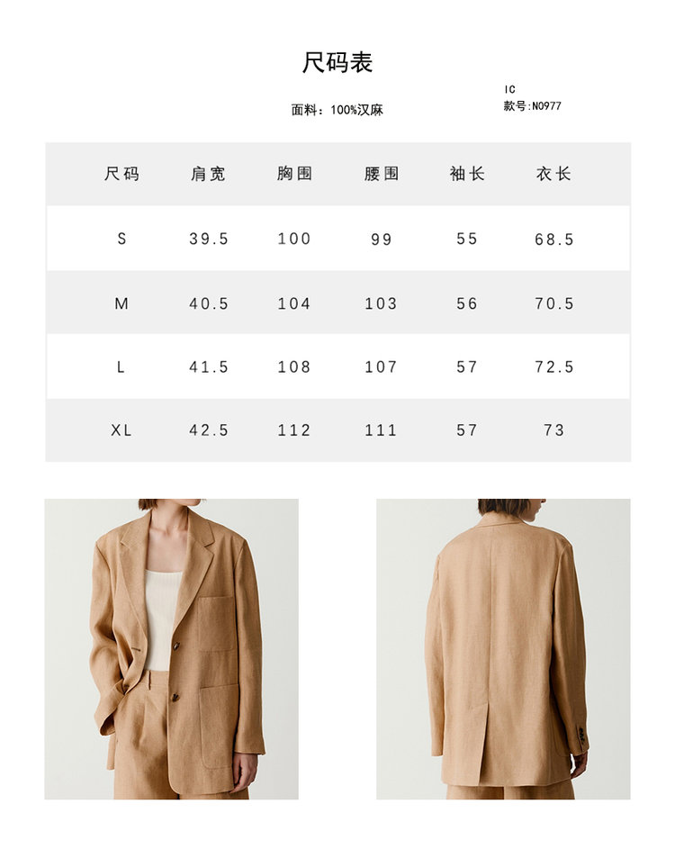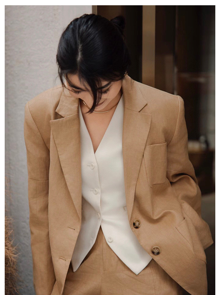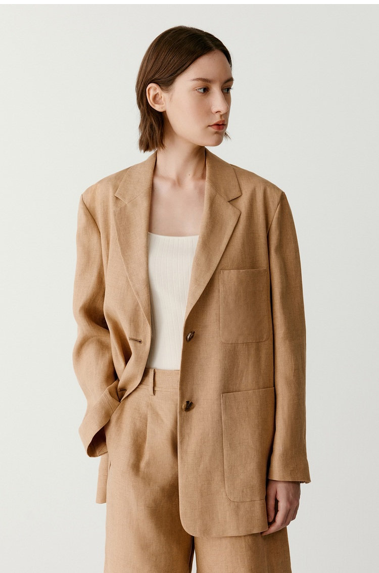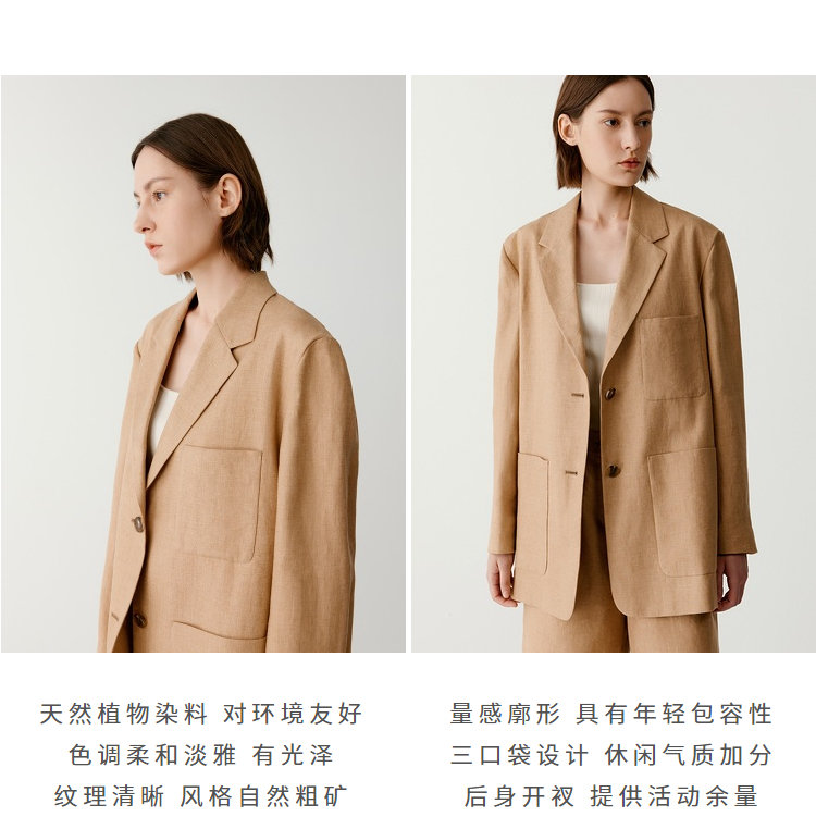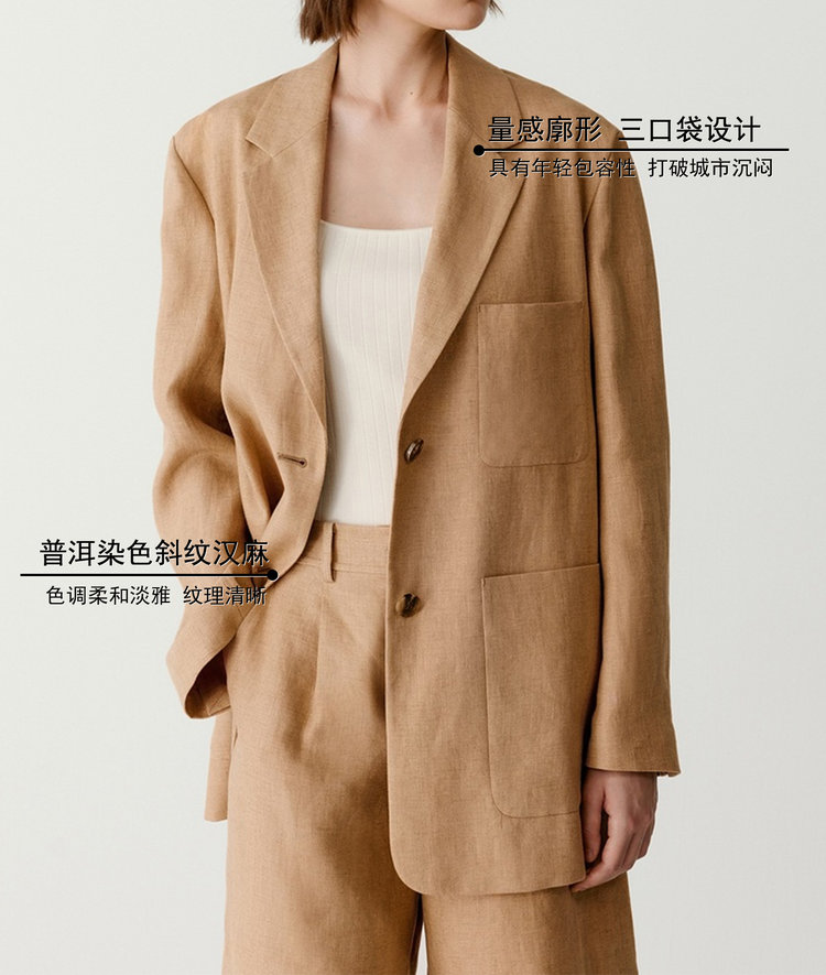 普洱染色斜纹汉麻西装外套 挺括流畅线条描摹独立气场 正肩H型西装 小个子友好款 简洁设计+流畅立裁线条 塑形不紧绷且显瘦