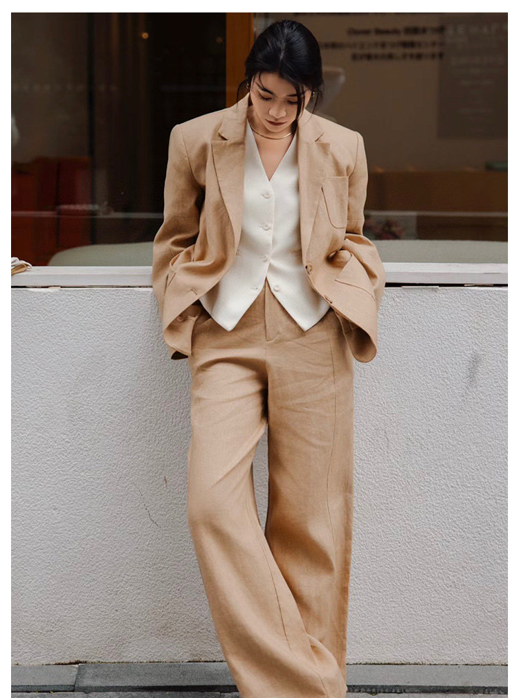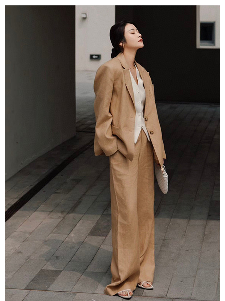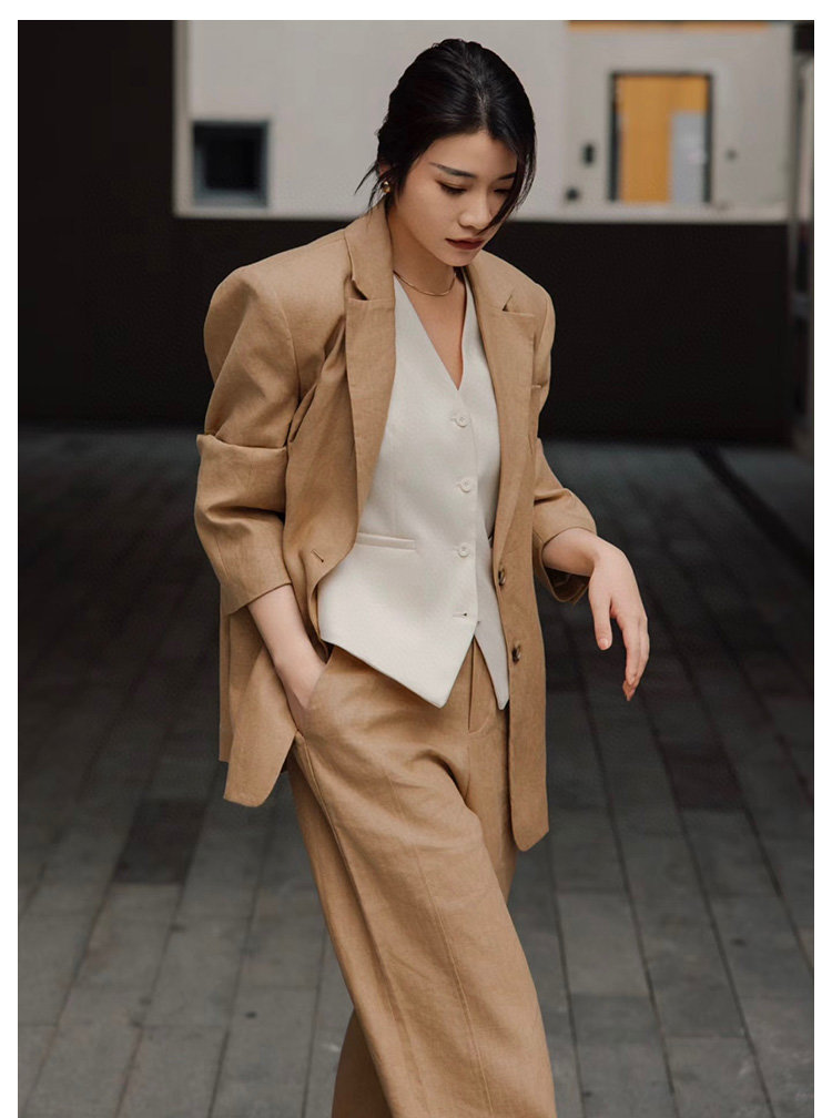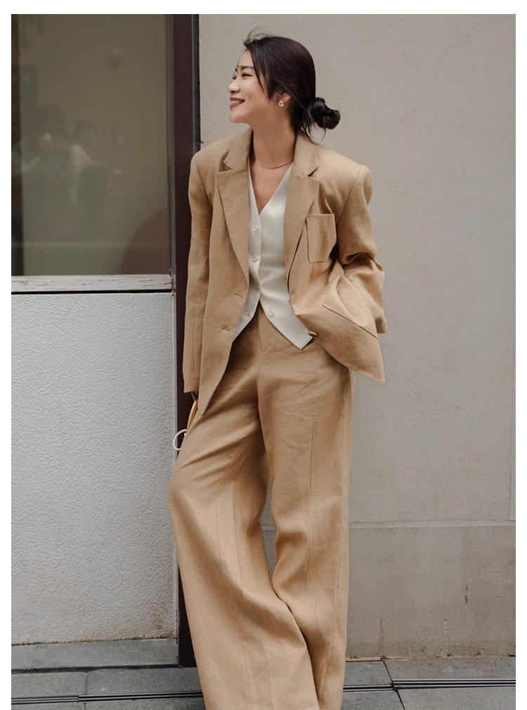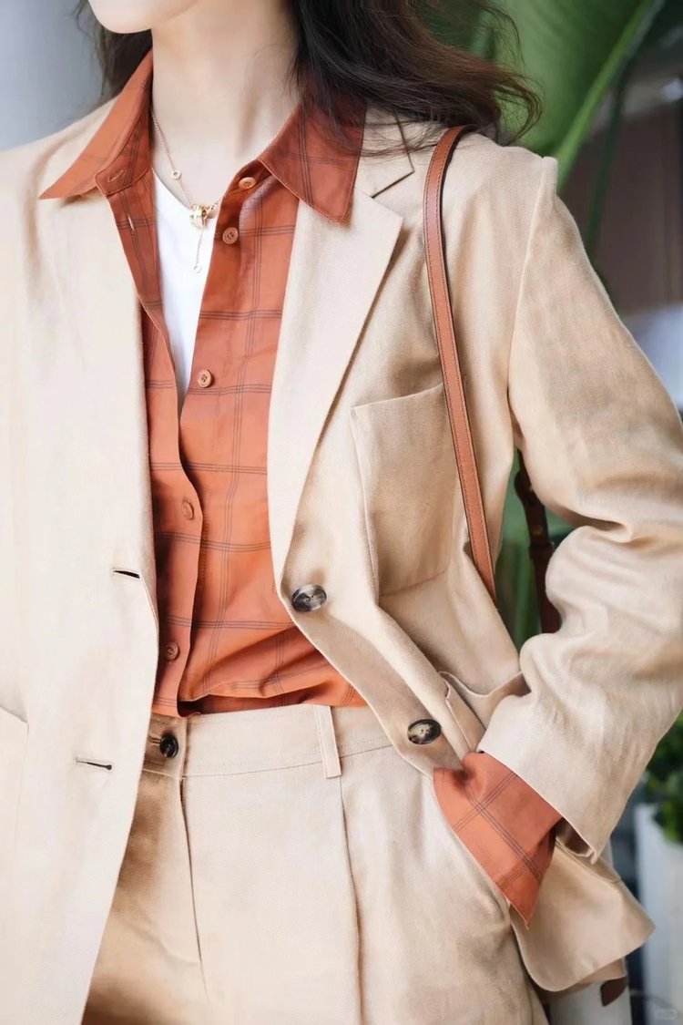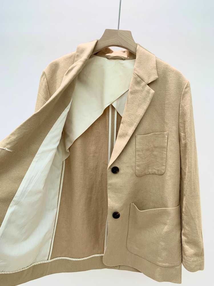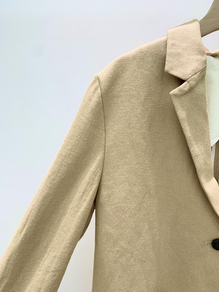 普洱染色斜纹汉麻西装外套 挺括流畅线条描摹独立气场 正肩H型西装 小个子友好款 简洁设计+流畅立裁线条 塑形不紧绷且显瘦