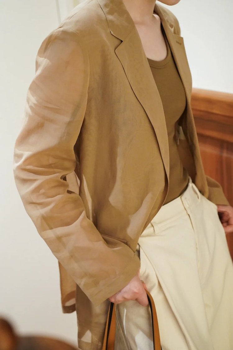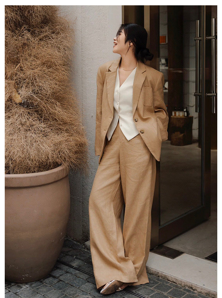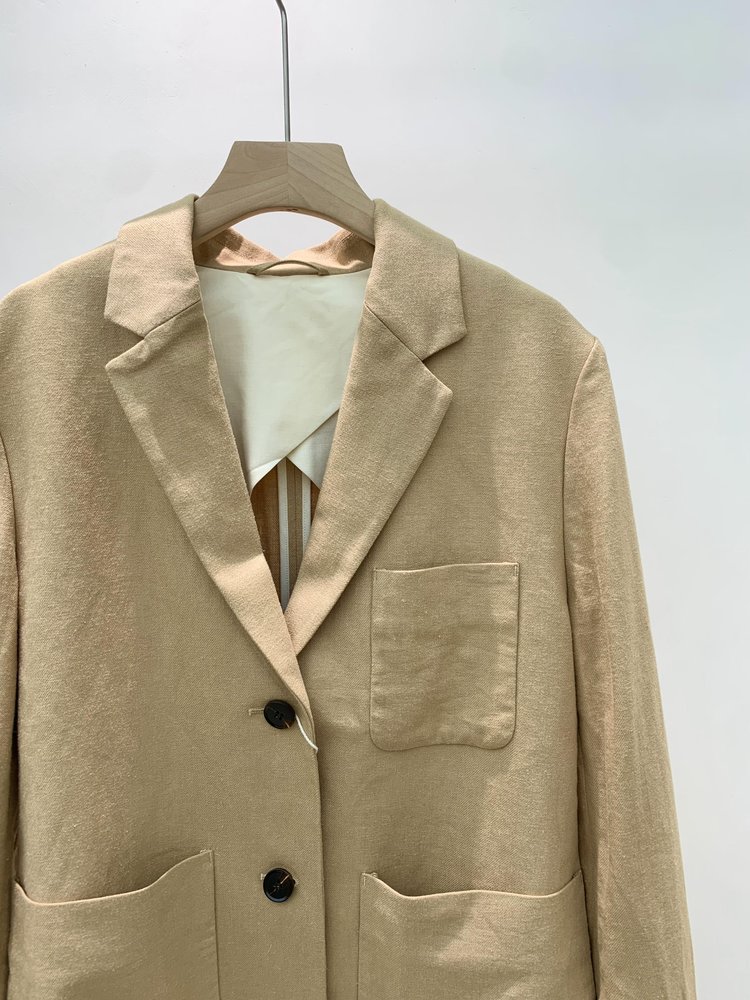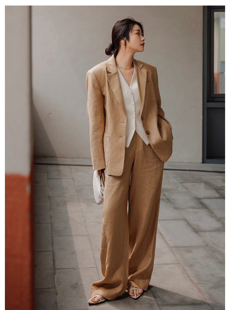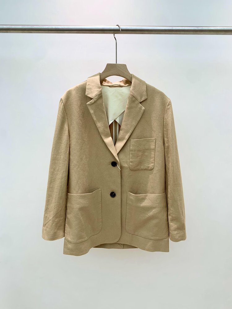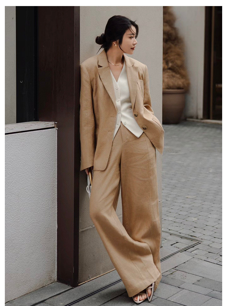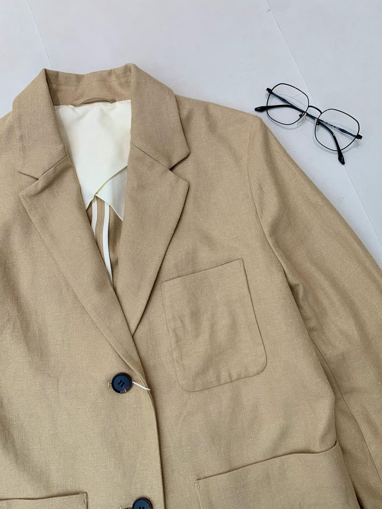 普洱染色斜纹汉麻西装外套 挺括流畅线条描摹独立气场 正肩H型西装 小个子友好款 简洁设计+流畅立裁线条 塑形不紧绷且显瘦