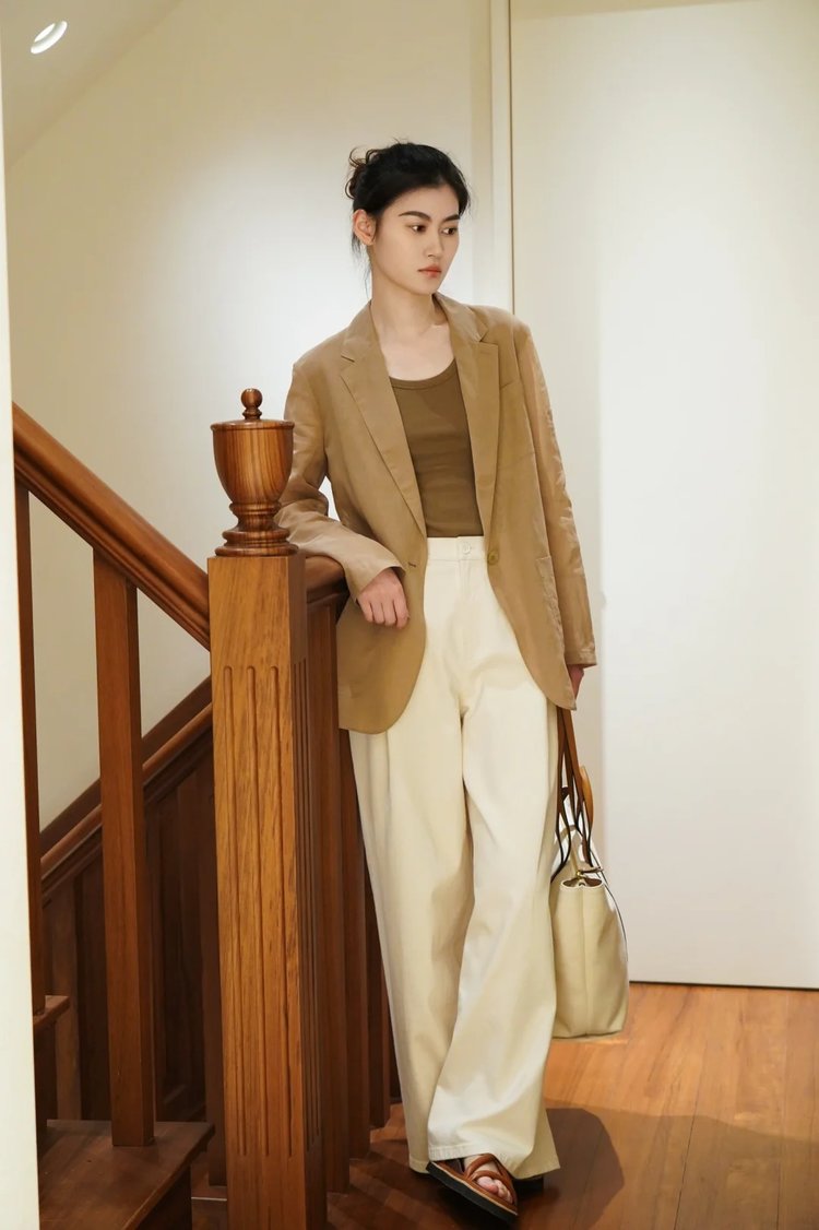 V领西装,极简精致的版型,上身穿着舒适有型,直筒微修身的版型,剪裁利落,显腰身勾勒出整体轮廓,一件即可拿捏整个衣橱造型,主张极简态度与众不同 玩转多样化穿搭氛围。