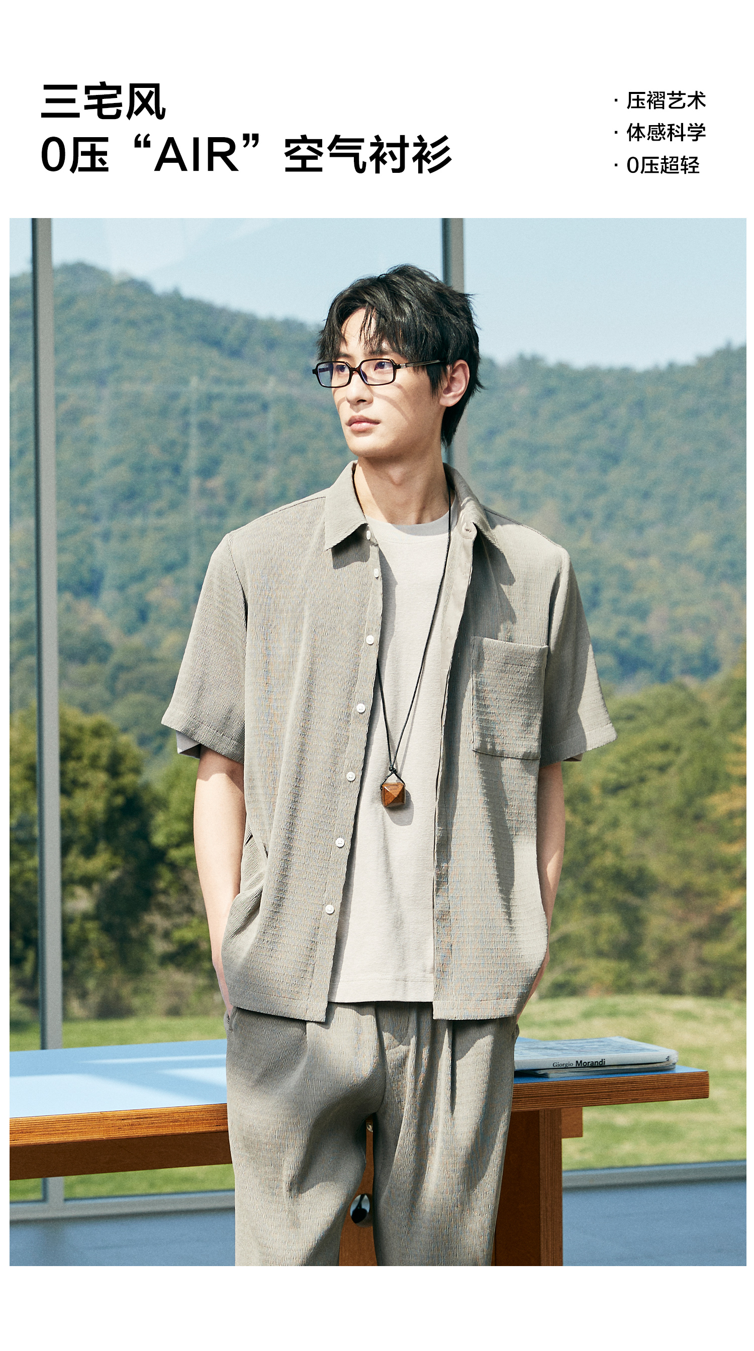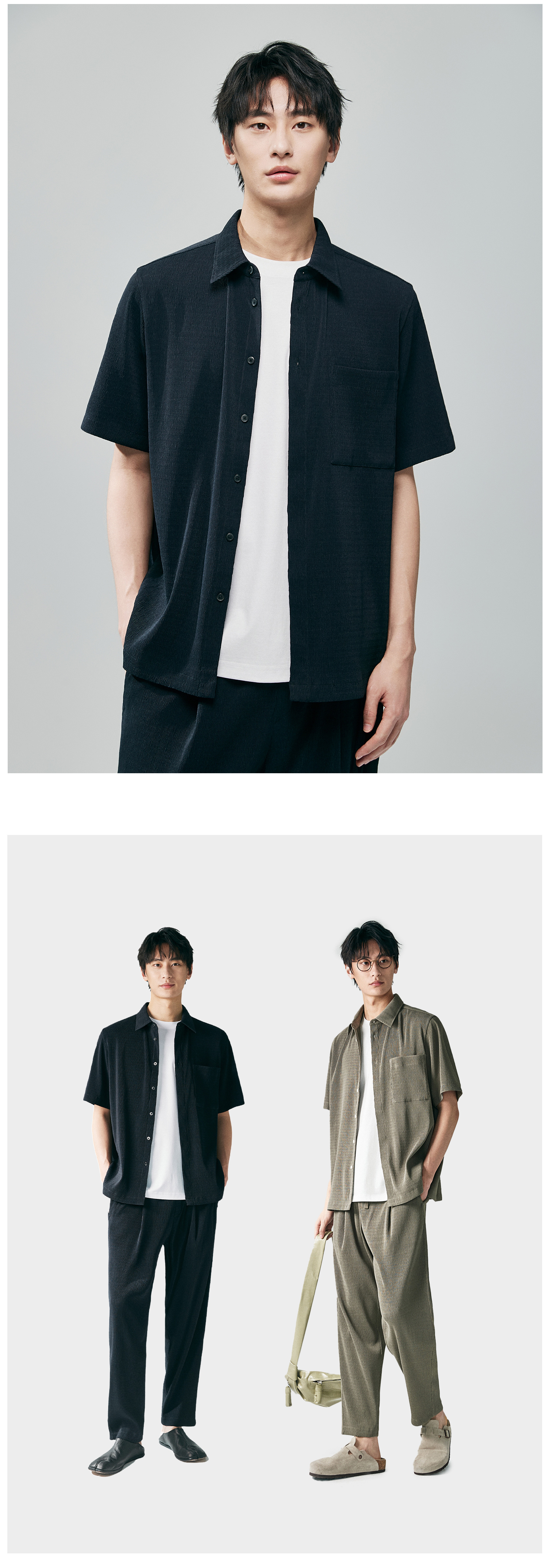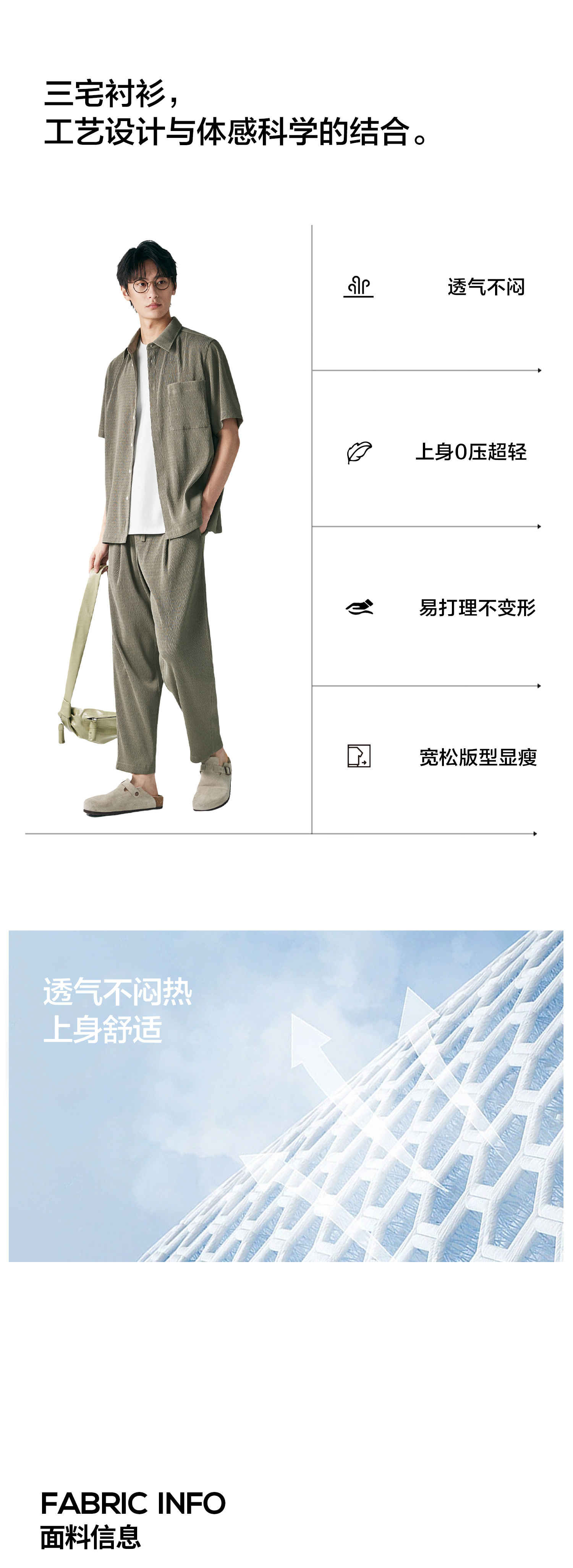 棉仓363804016-三宅风树纹皱短袖衬衫