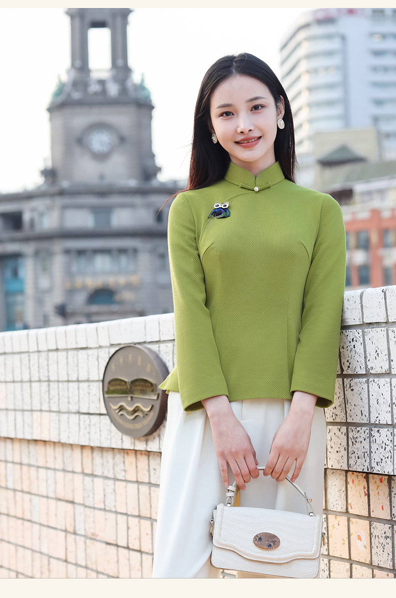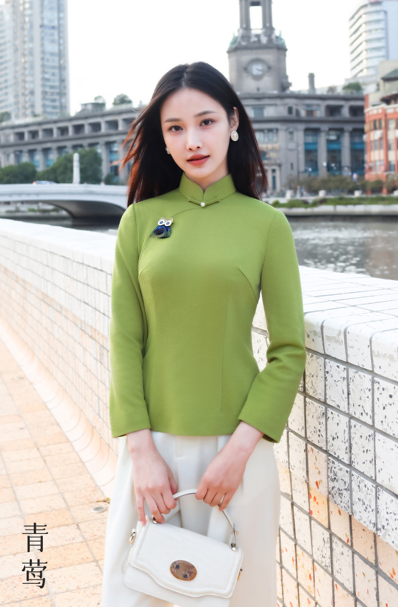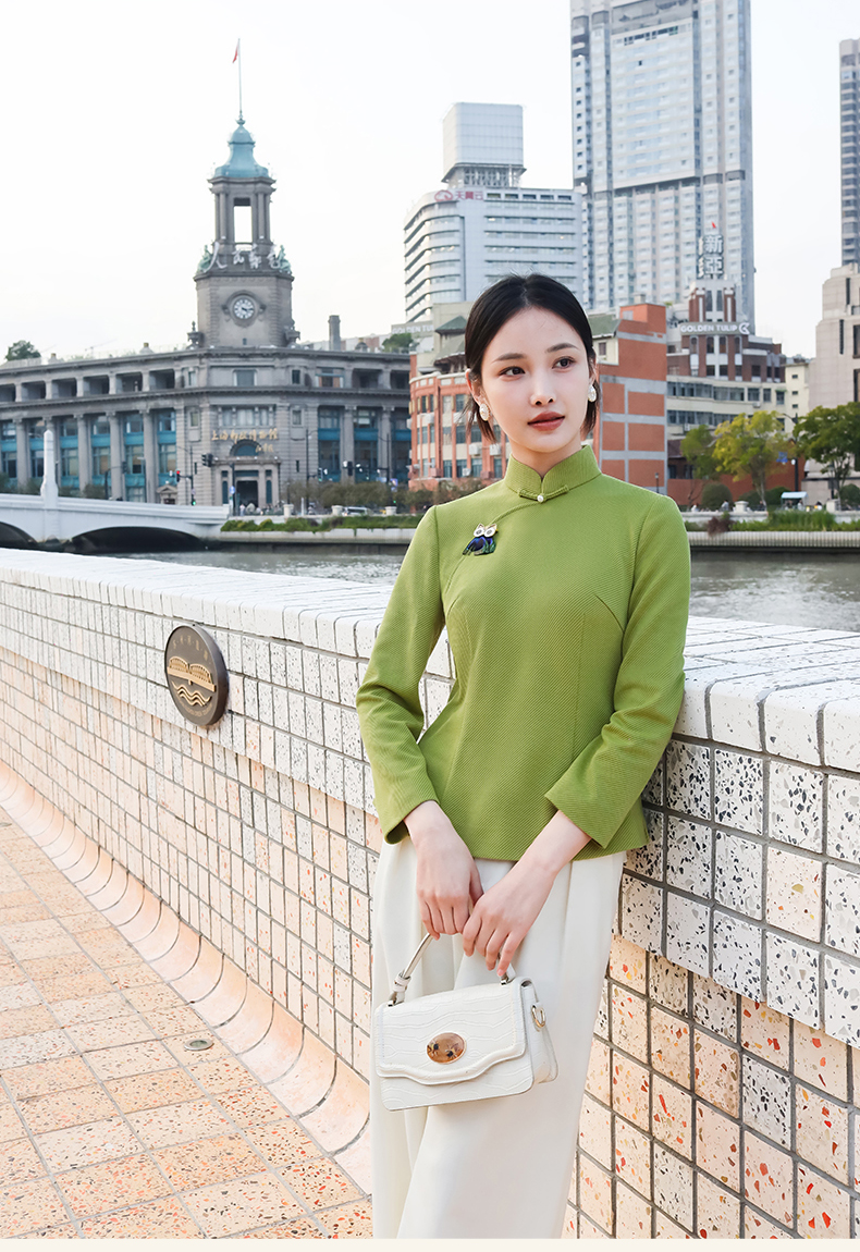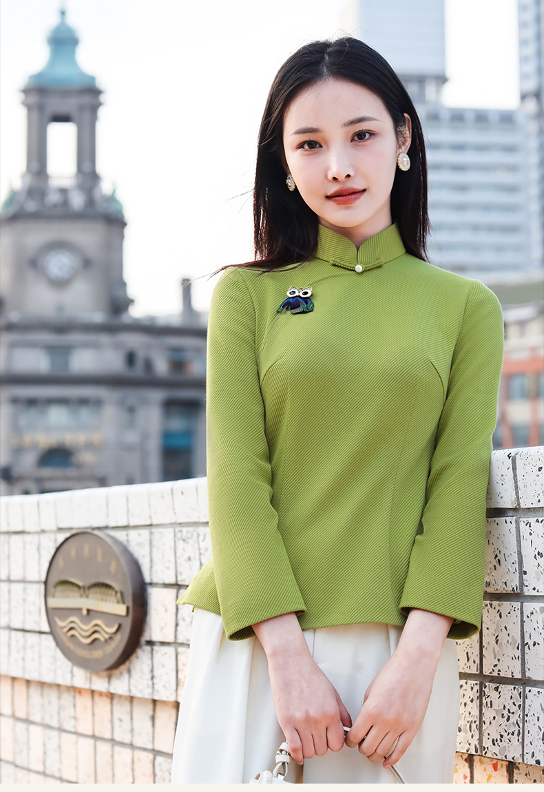 逸红颜青莺2025秋新款极简都市风斜纹针织新中式长袖改良旗袍上衣