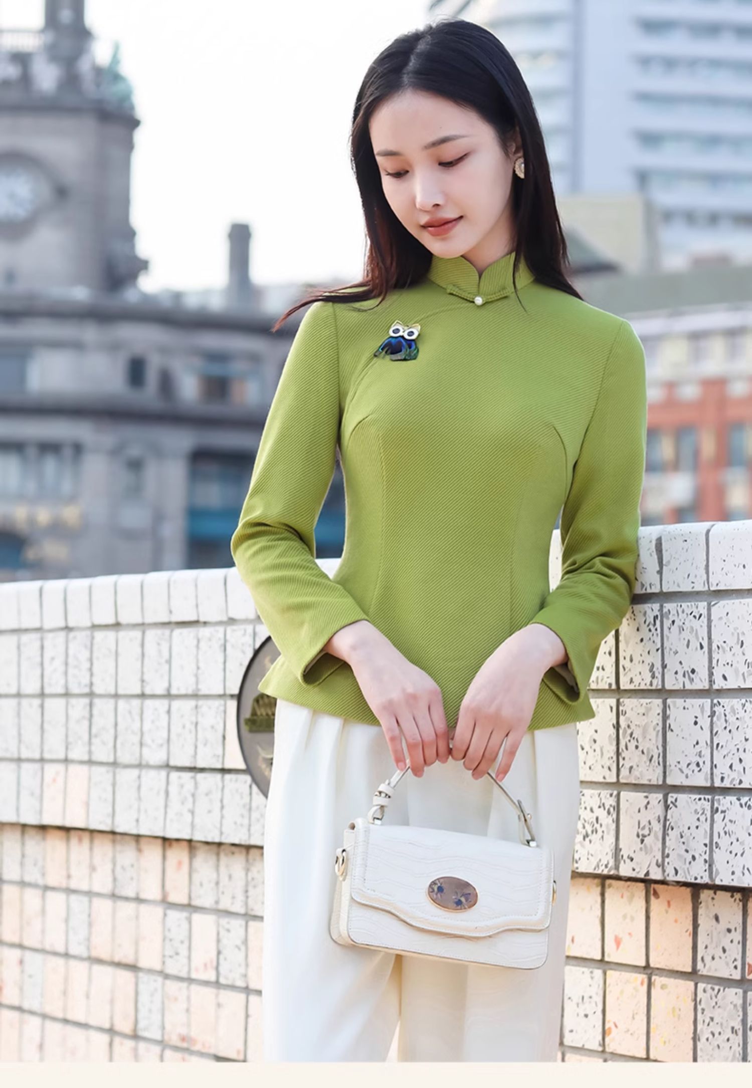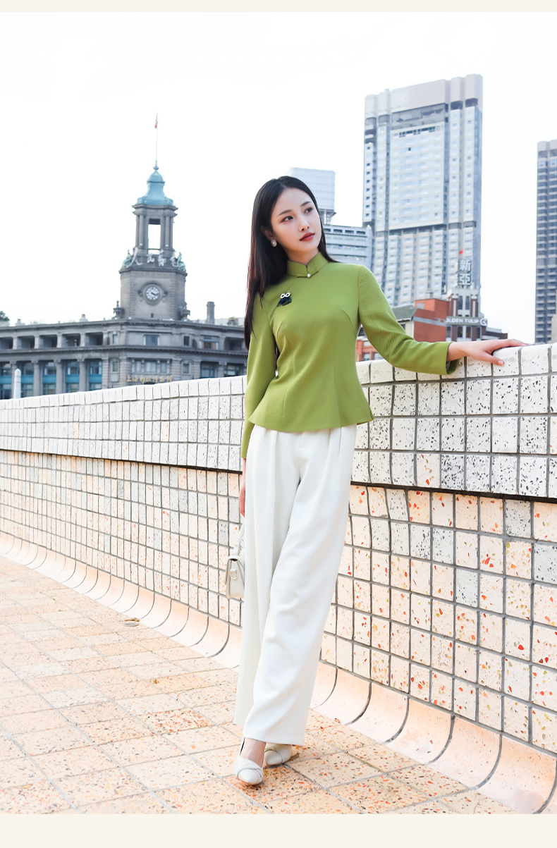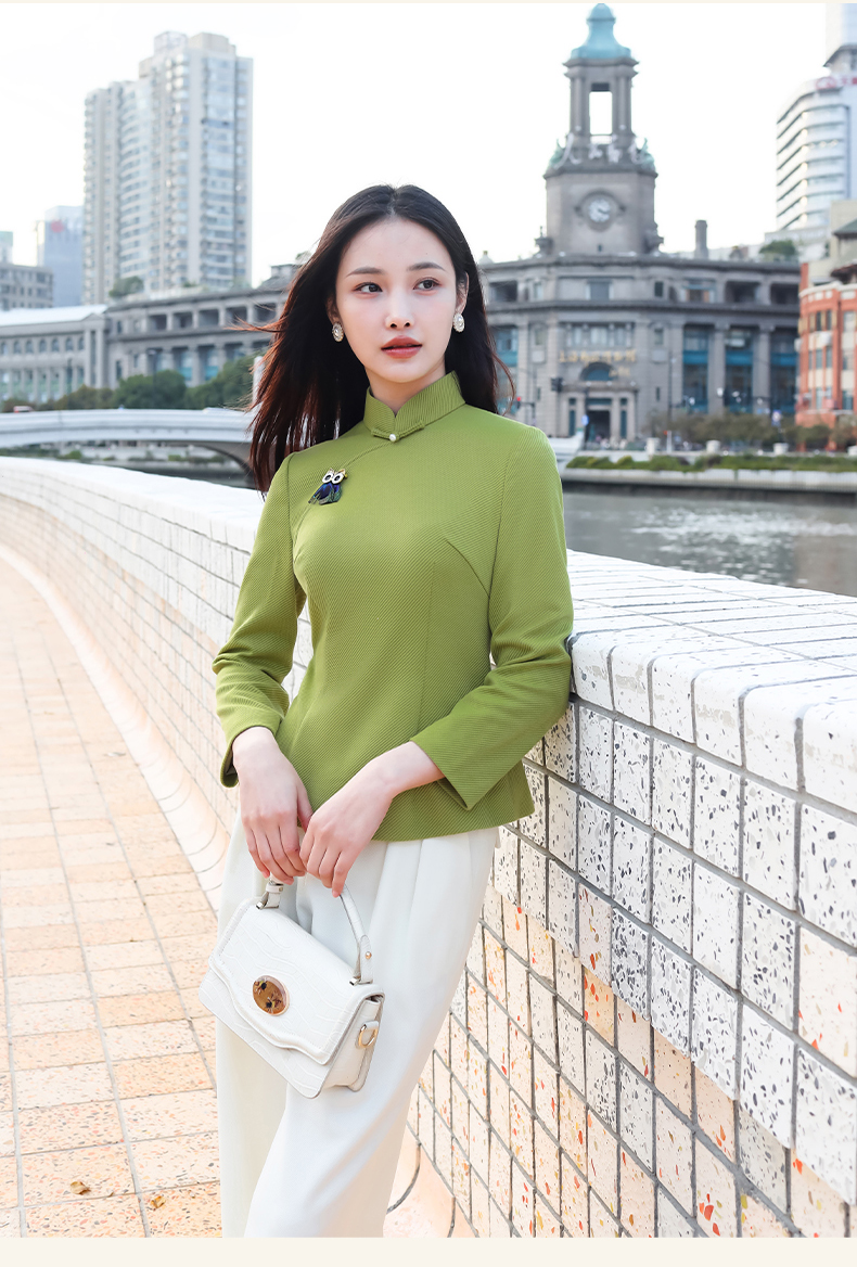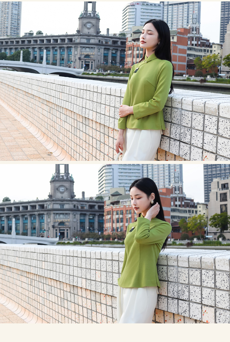 逸红颜青莺2025秋新款极简都市风斜纹针织新中式长袖改良旗袍上衣