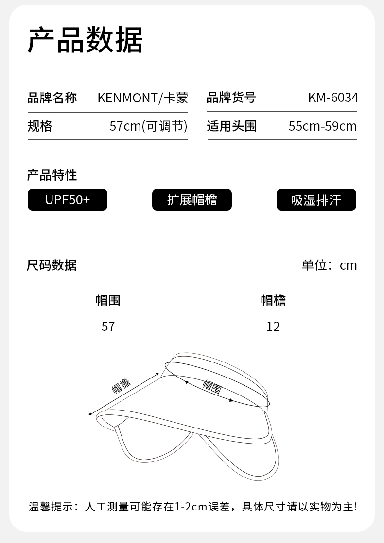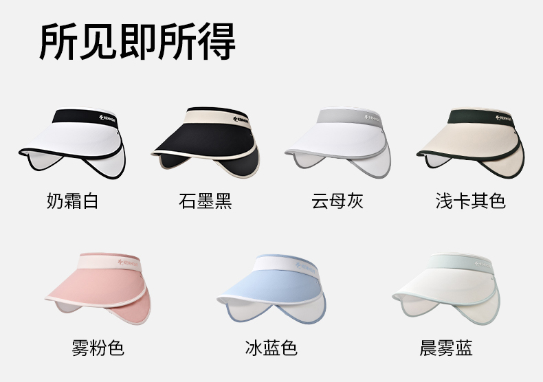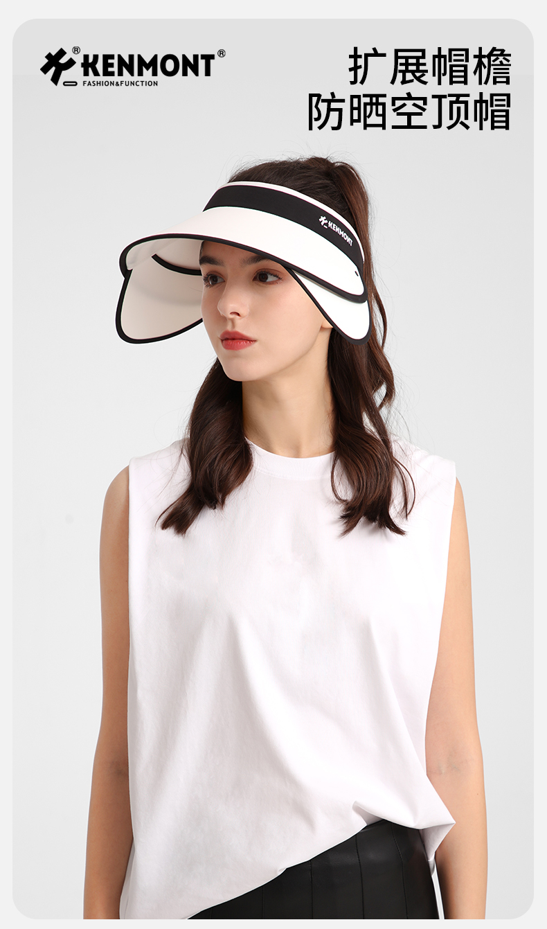卡蒙可伸缩帽檐防紫外线遮脸跑步空顶帽女夏高尔夫运动速干防晒帽KM-6034