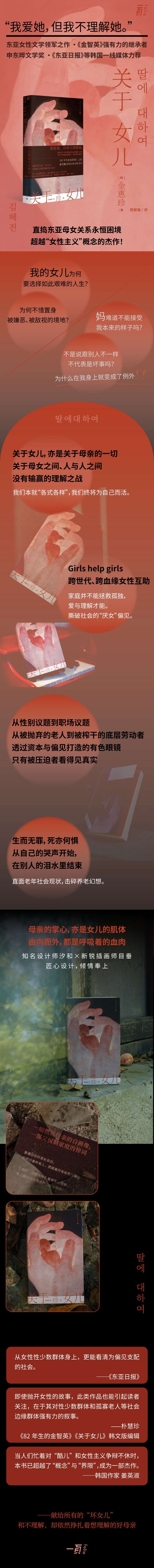 2018年,凭借《关于女儿》获第36届“申东晔文学奖”,该作也成为了继《82年生的金智英》之后zui受关注的韩国女性小说。
