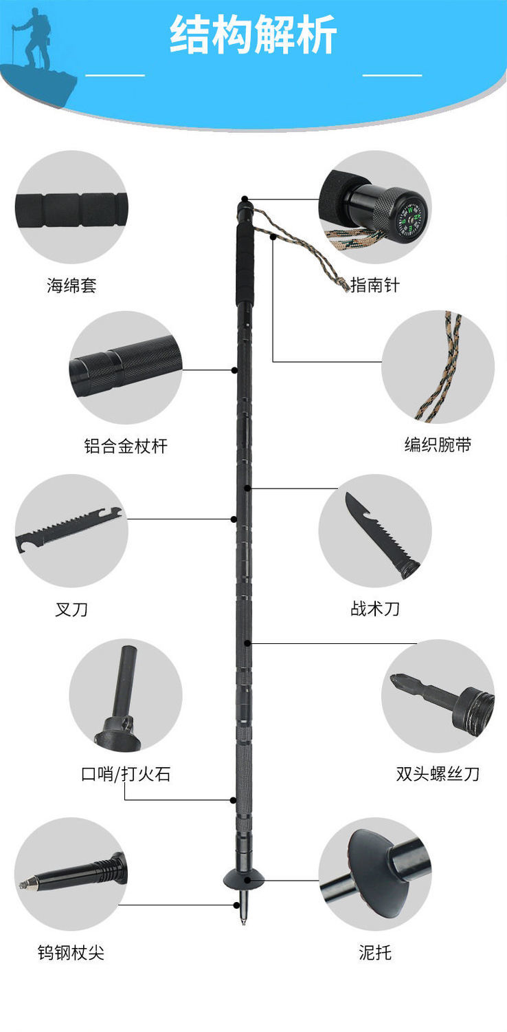 登山杖旅行杖防身装备徒步装备超轻多功能伸缩折叠拐杖手杖行山杖
