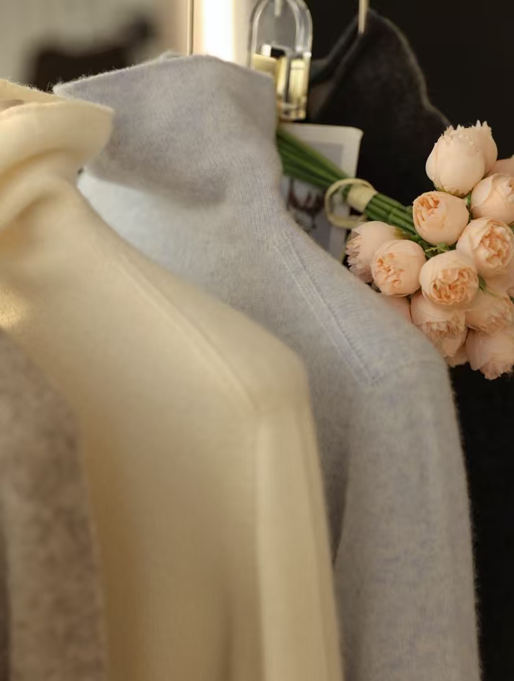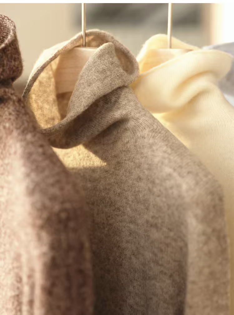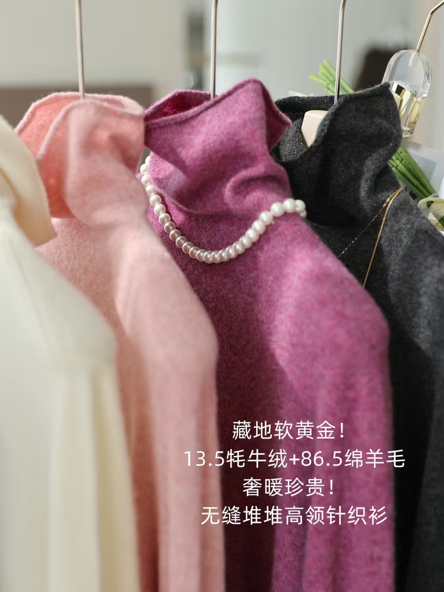 柔糯舒适, 触感将温暖具象表达 ,羊毛牦牛绒无缝荃成型高领针织上衣,体感就像把100山羊绒穿在身上,轻量无物感。