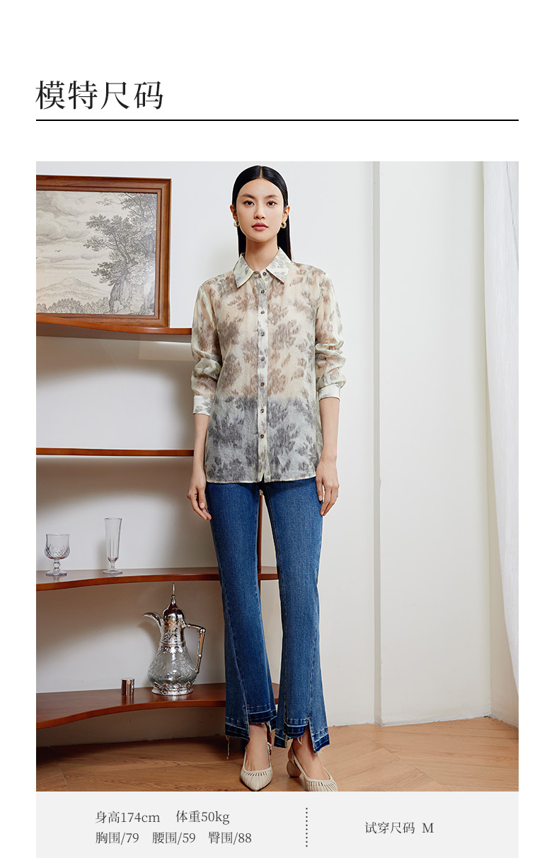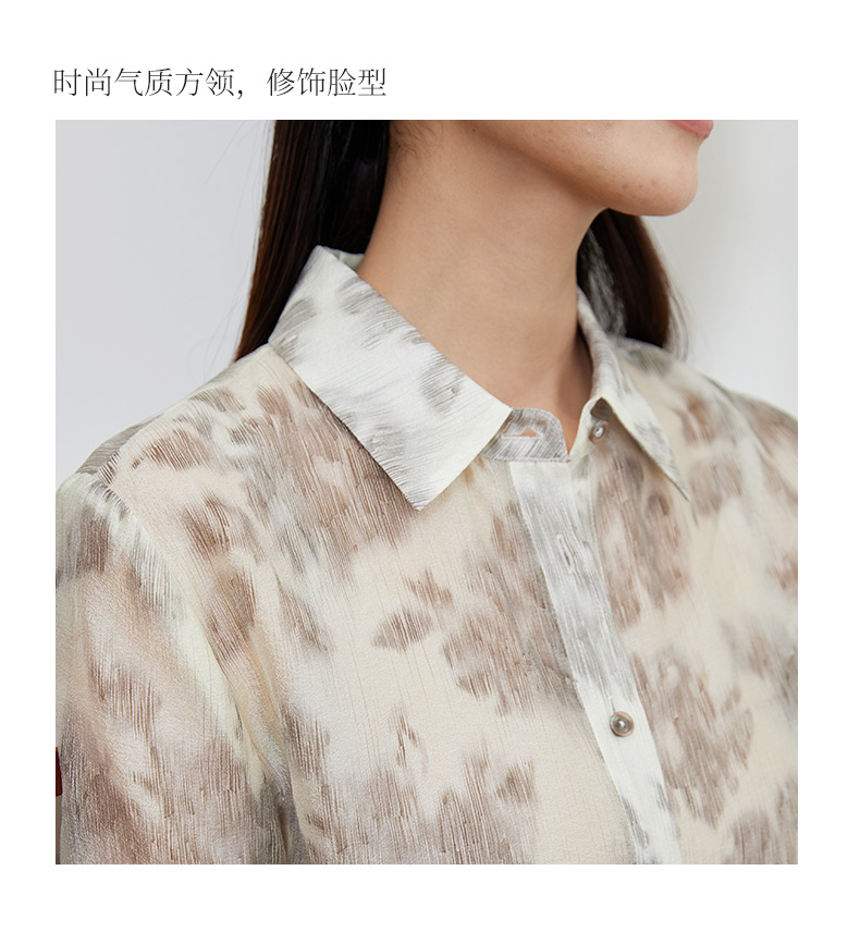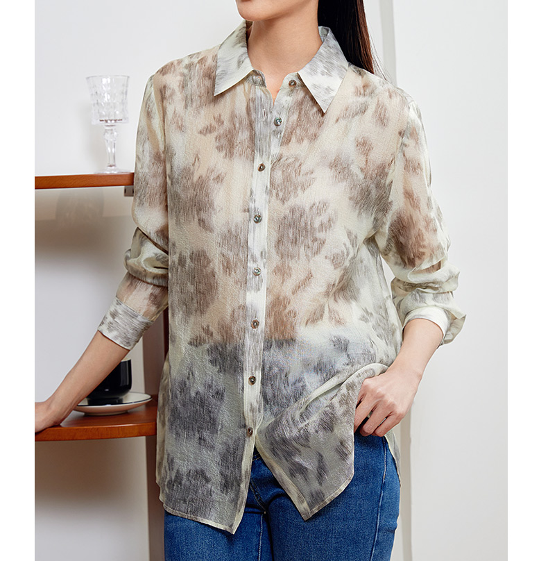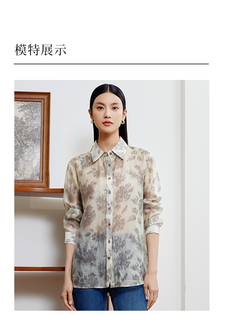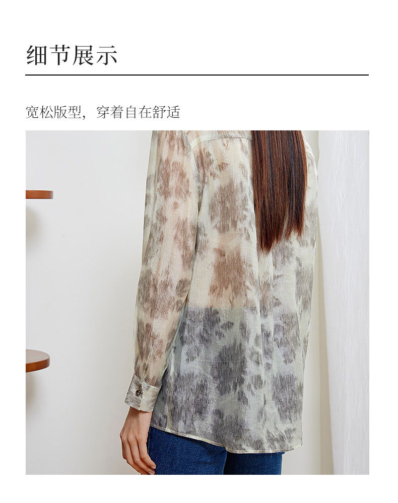 玳莎印花宽松衬衫女2024年春季新款复古优雅长袖方领微透上衣外搭 EA31309