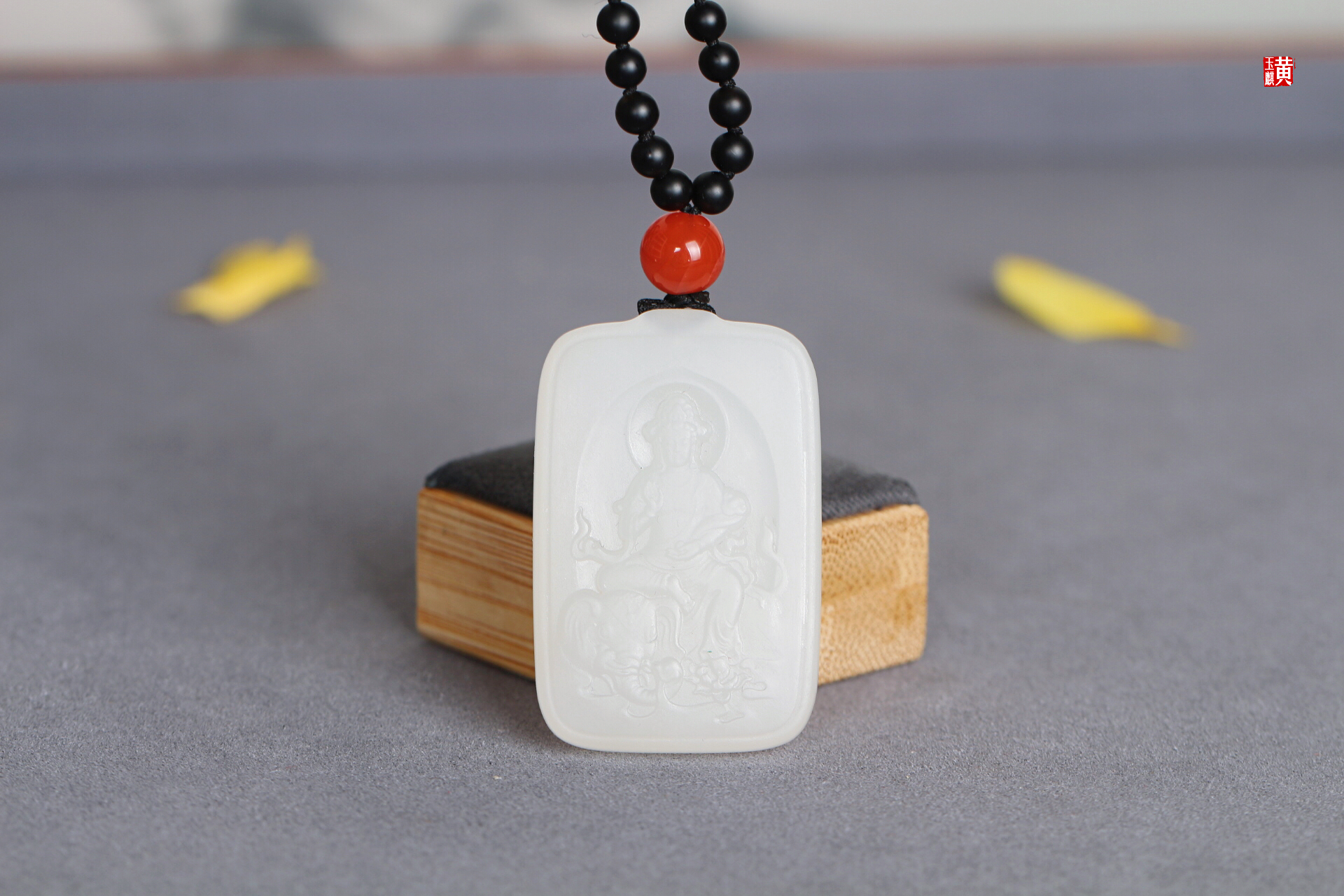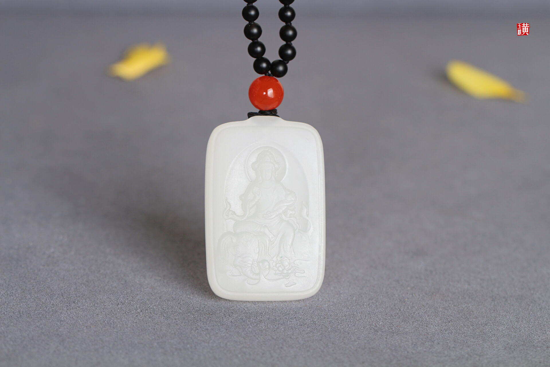 和田白玉【普贤菩萨】吊坠, 配精美挂绳