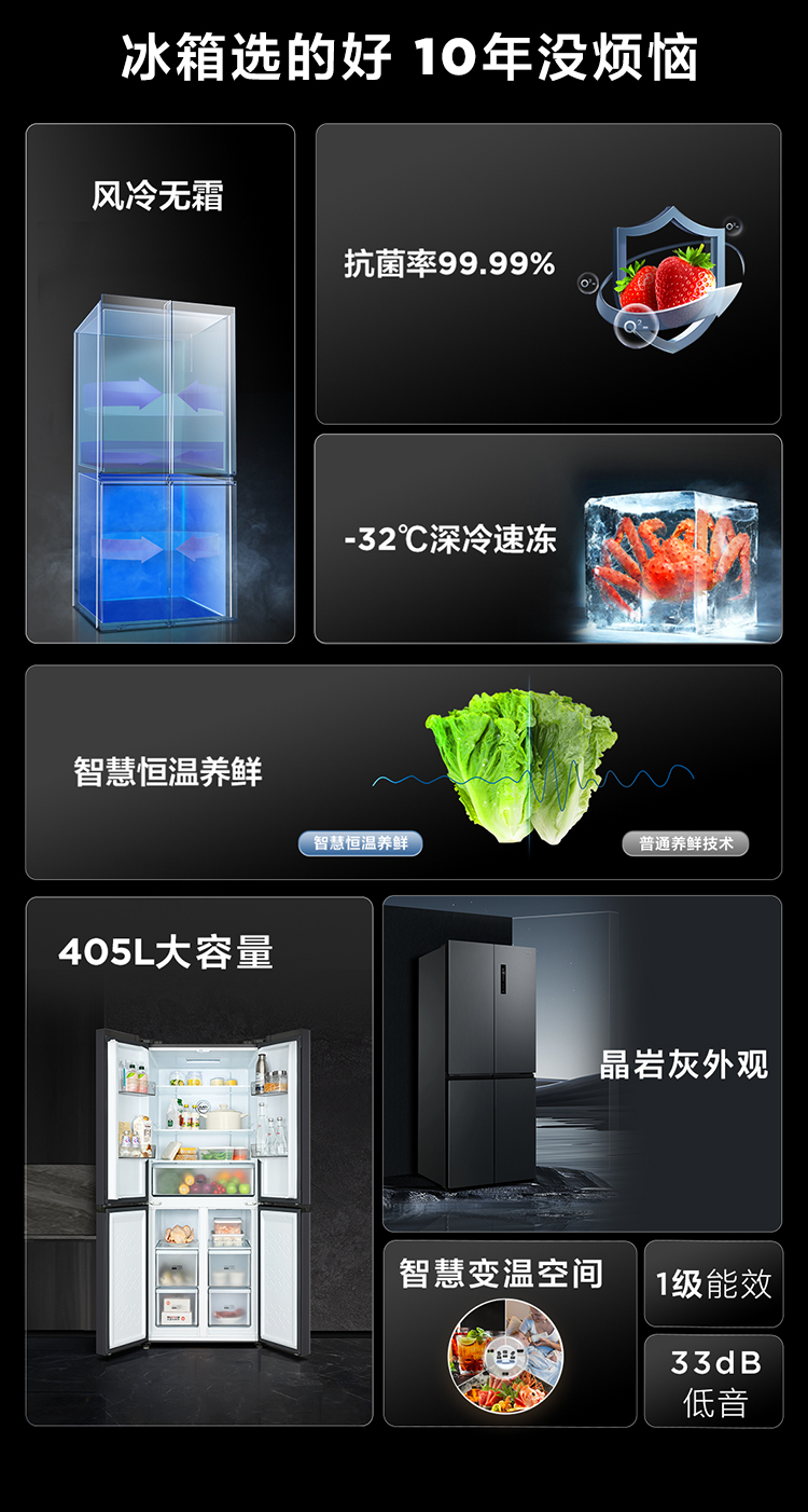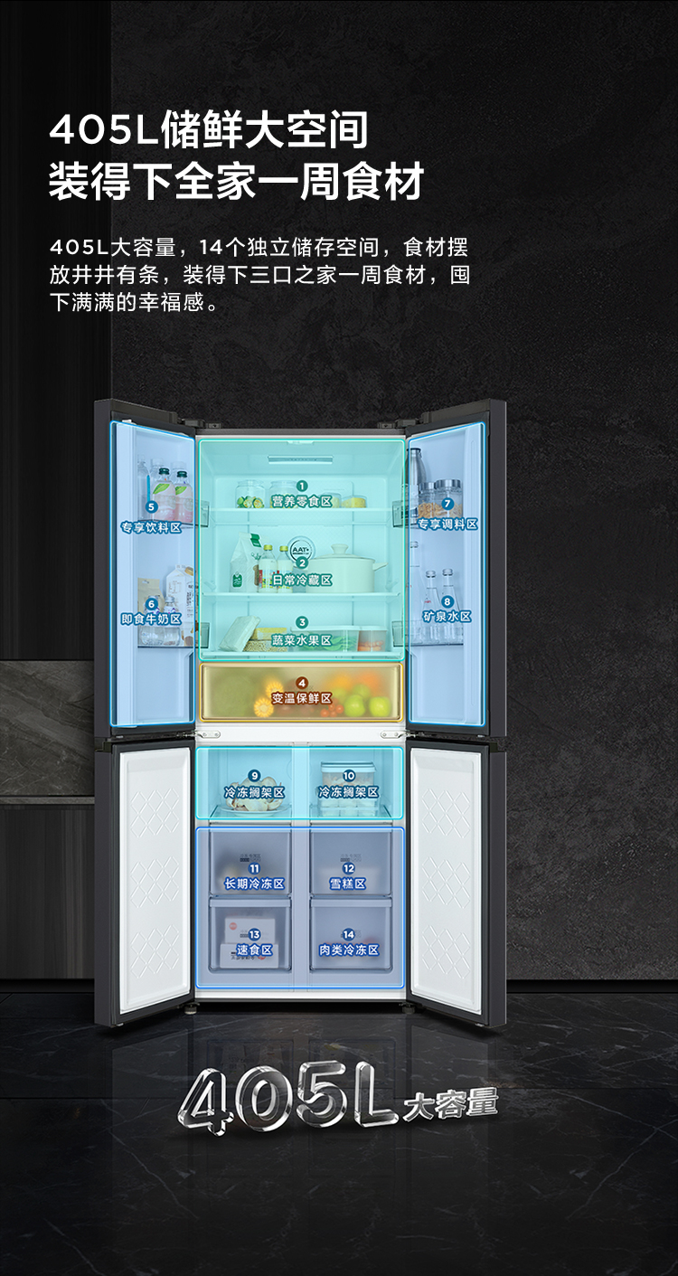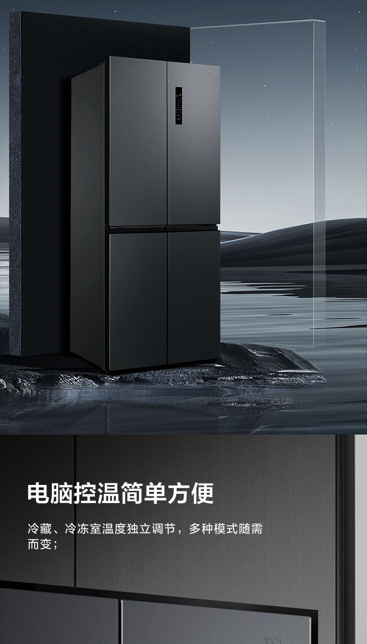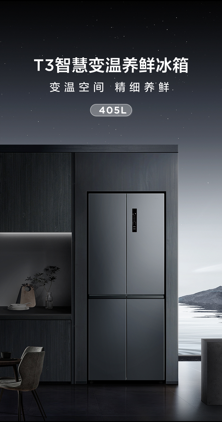 TCL 405升十字对开四开门智慧变温养鲜冰箱双变频一级能效 33分贝低噪冰箱 R405T3-U(咨询客服送优惠大礼包)