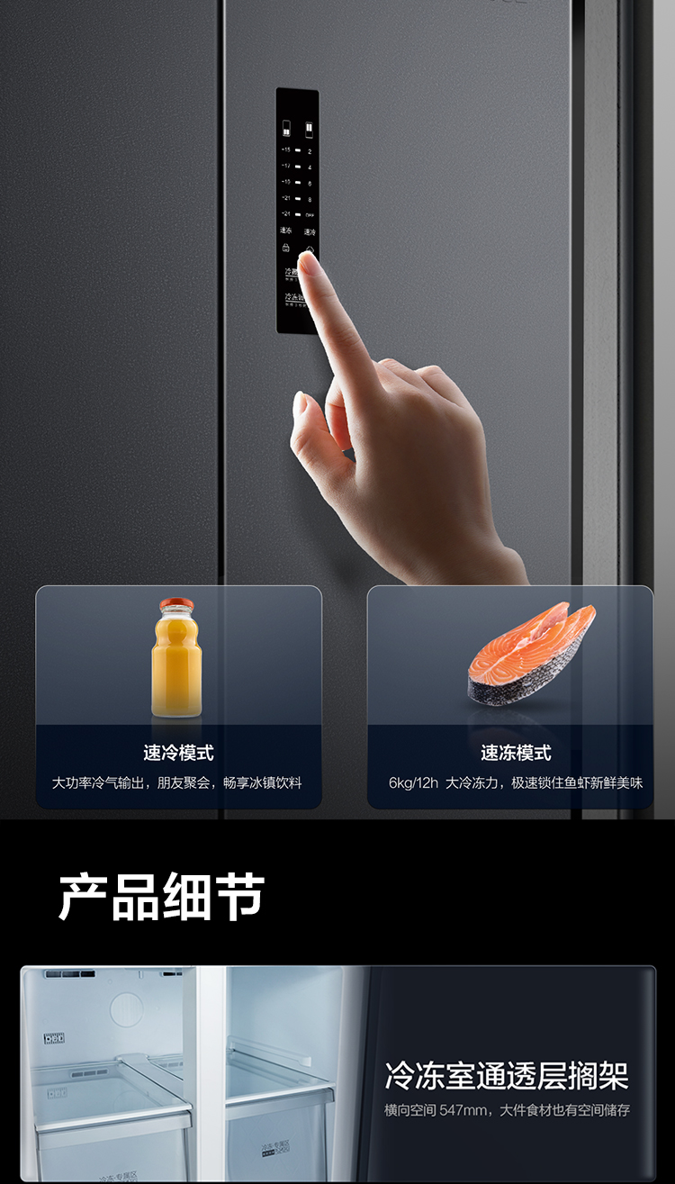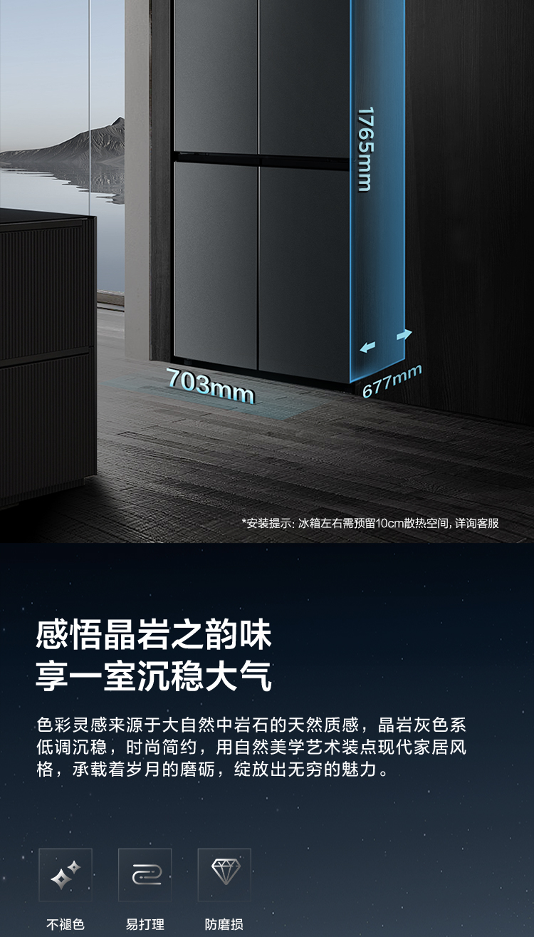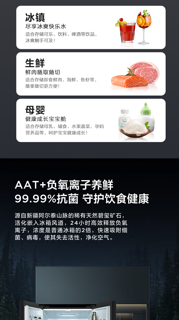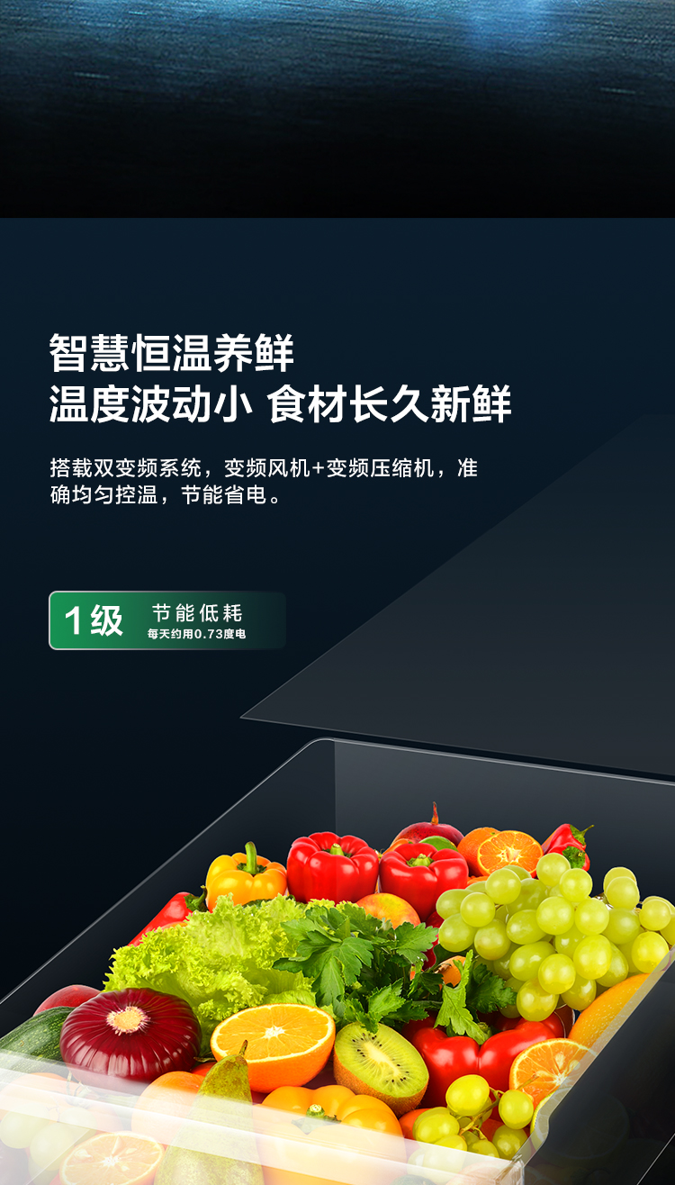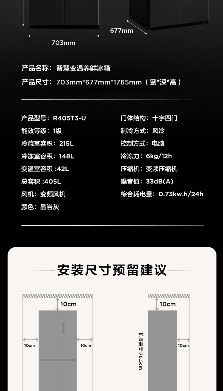 TCL 405升十字对开四开门智慧变温养鲜冰箱双变频一级能效 33分贝低噪冰箱 R405T3-U(咨询客服送优惠大礼包)