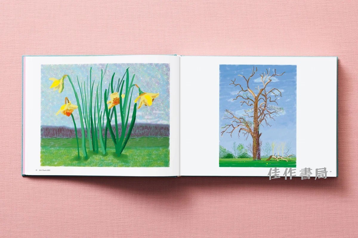 大卫·霍克尼在诺曼底肥沃田野与草地间一座风景如画的小农舍中,追踪了2020年及新年伊始的四季更迭。他用iPad随性地描绘周围风景给人的印象,捕捉初绽的春日繁花、夏日的气息、秋日浓艳的色彩,以及冬日里光秃秃的深色枝丫形态。这本书中的220幅(外加4幅附赠的)iPad绘画采用六色印刷,以匹配艺术家丰富的视觉呈现。霍克尼在一篇简短的引言中讲述了这个有计划的项目如何在新冠封锁期间成为了他的生命线,他从中传递出希望的讯息:“记住,他们无法取消春天。”