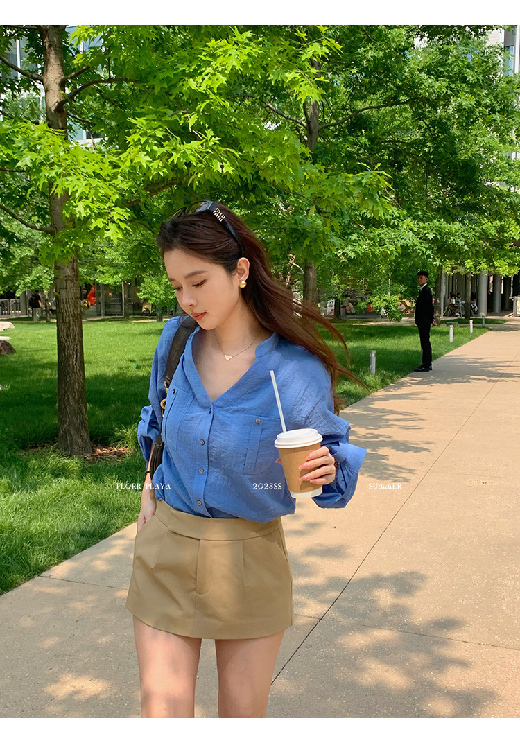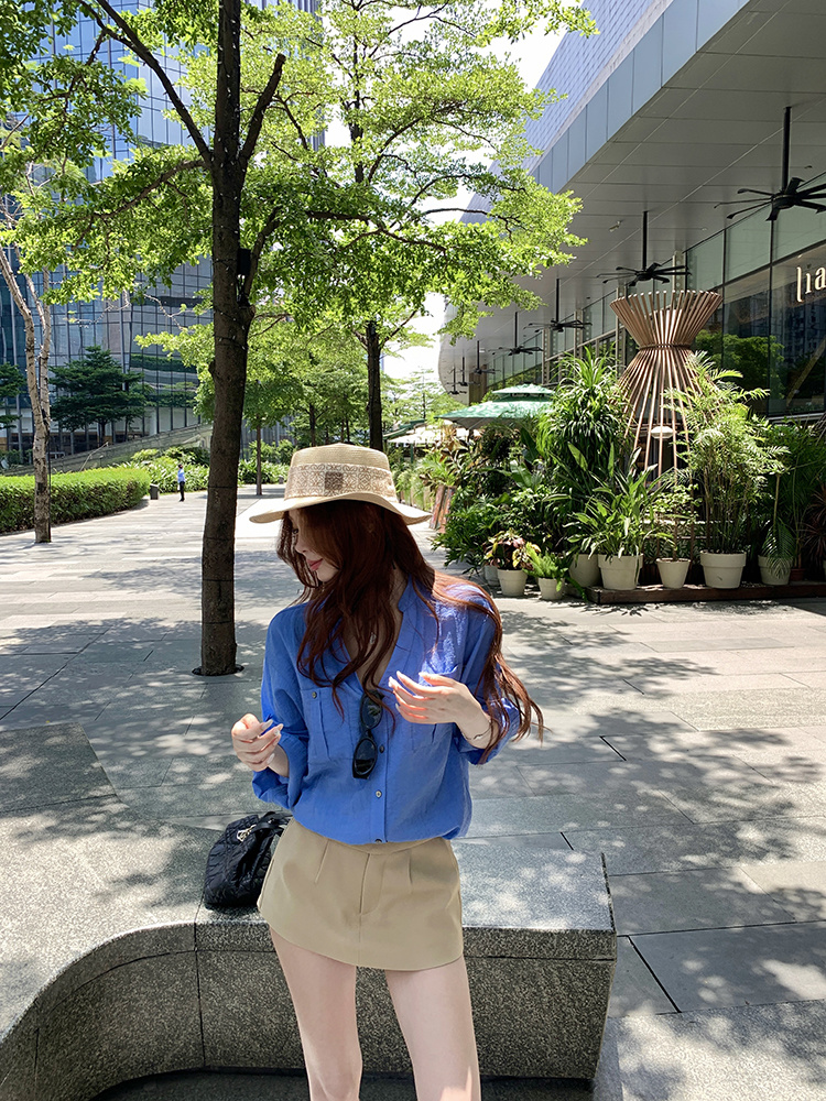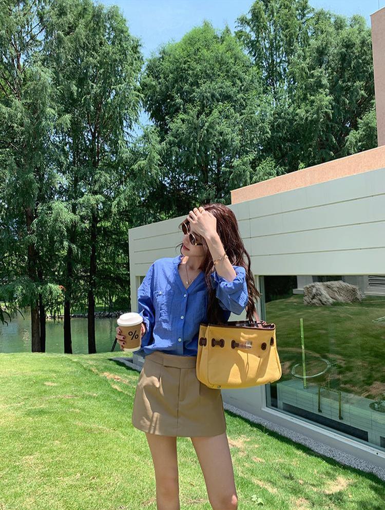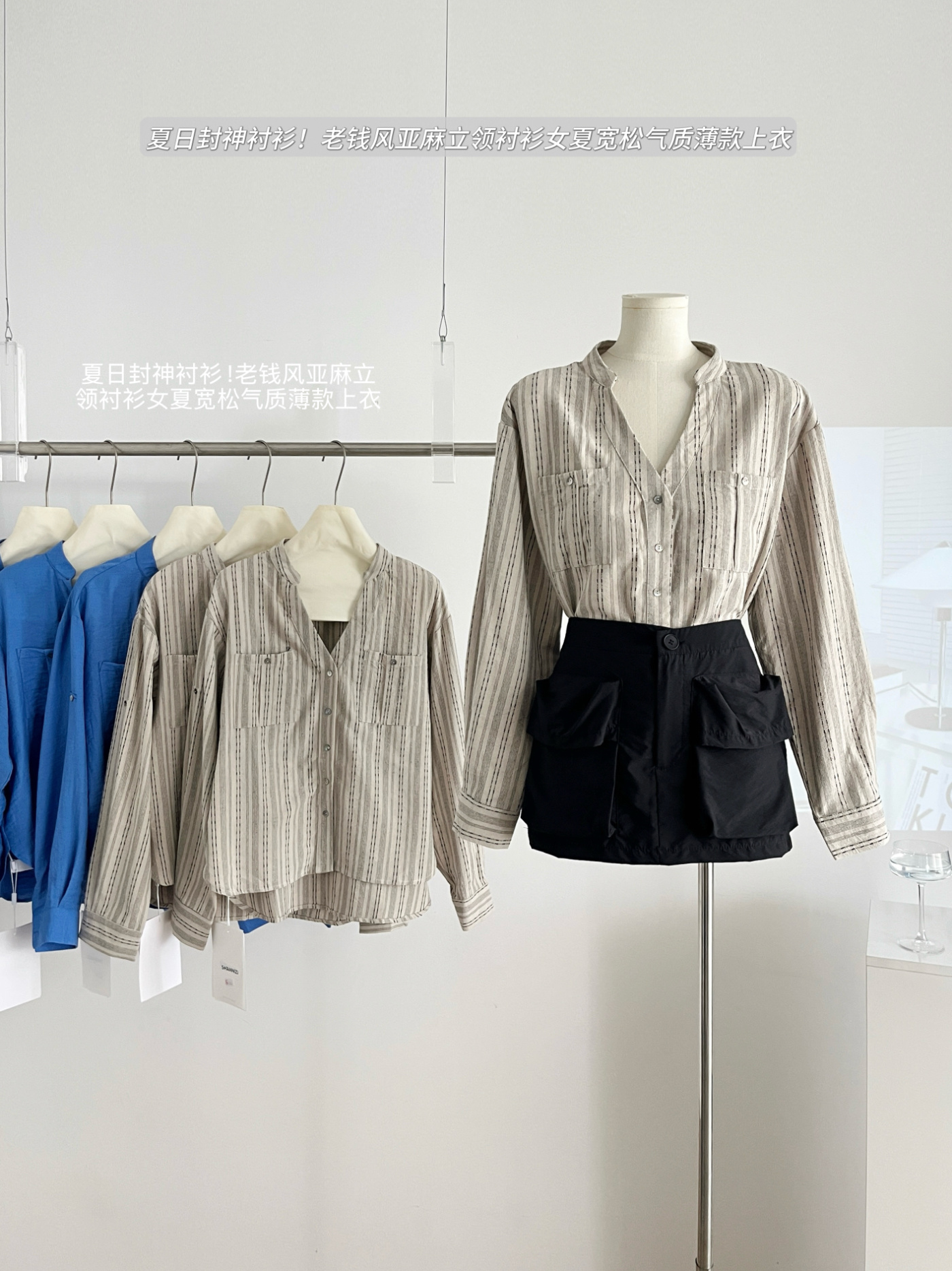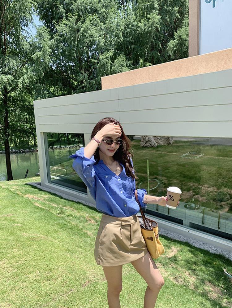 送8元退货运费【老钱风亚麻立领衬衫+百搭短款裙裤】早秋封神套装!王炸组合△版型不挑身材 颜色不挑肤色四搭配裙裤简直韩系女主即视感~