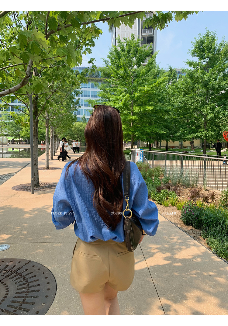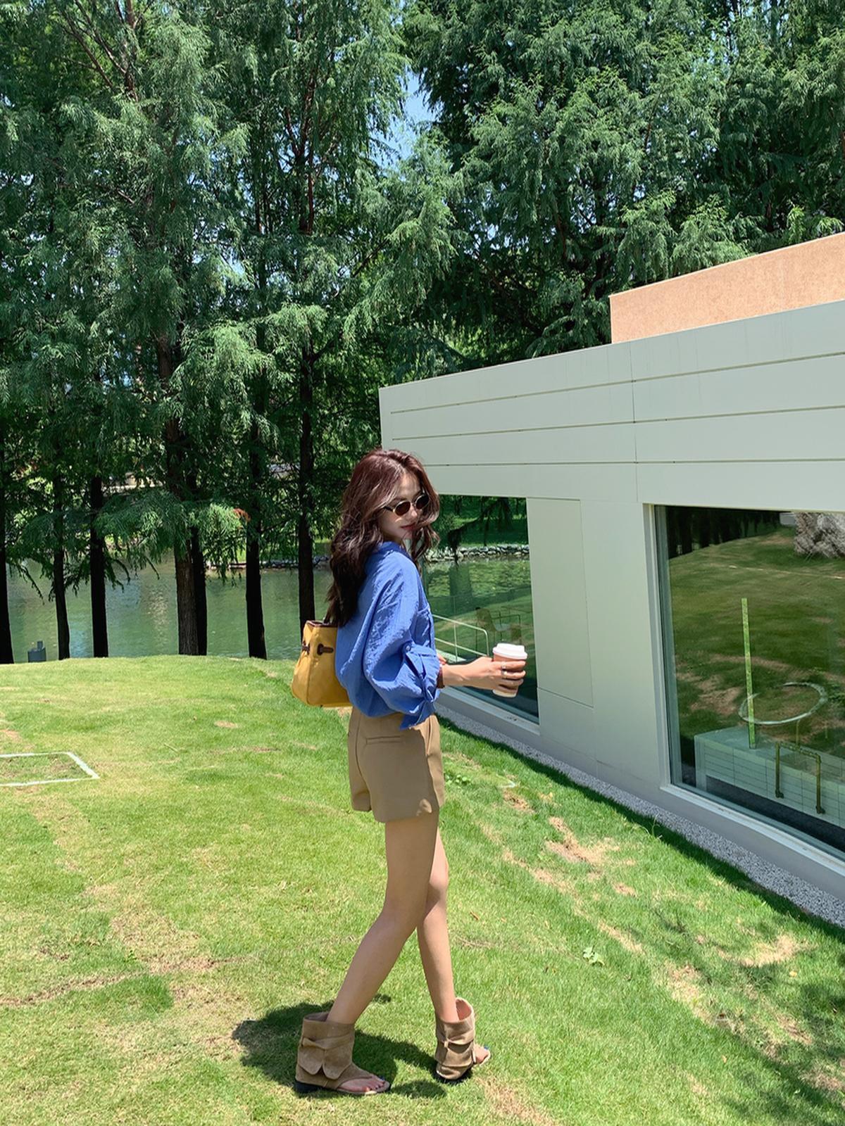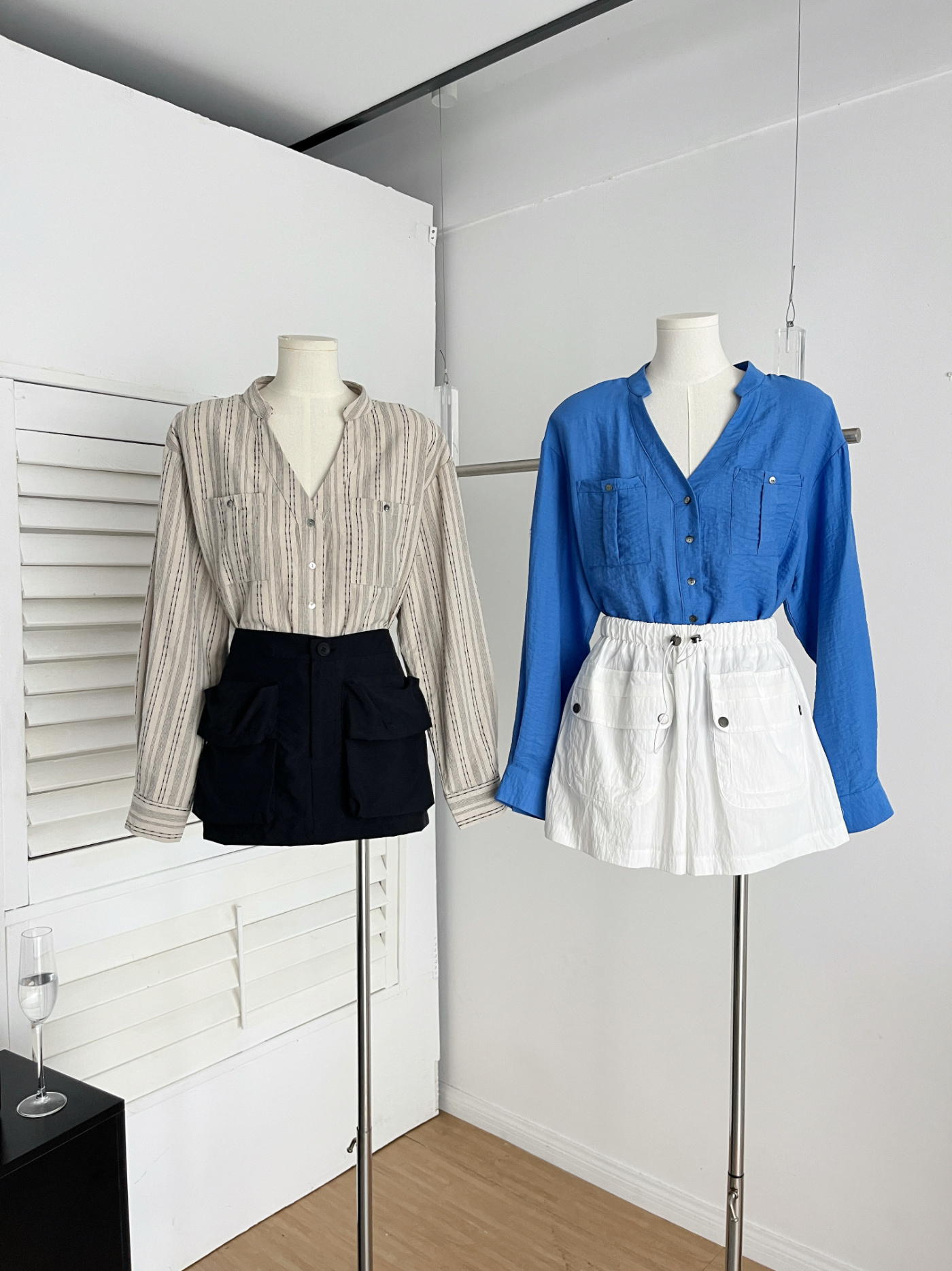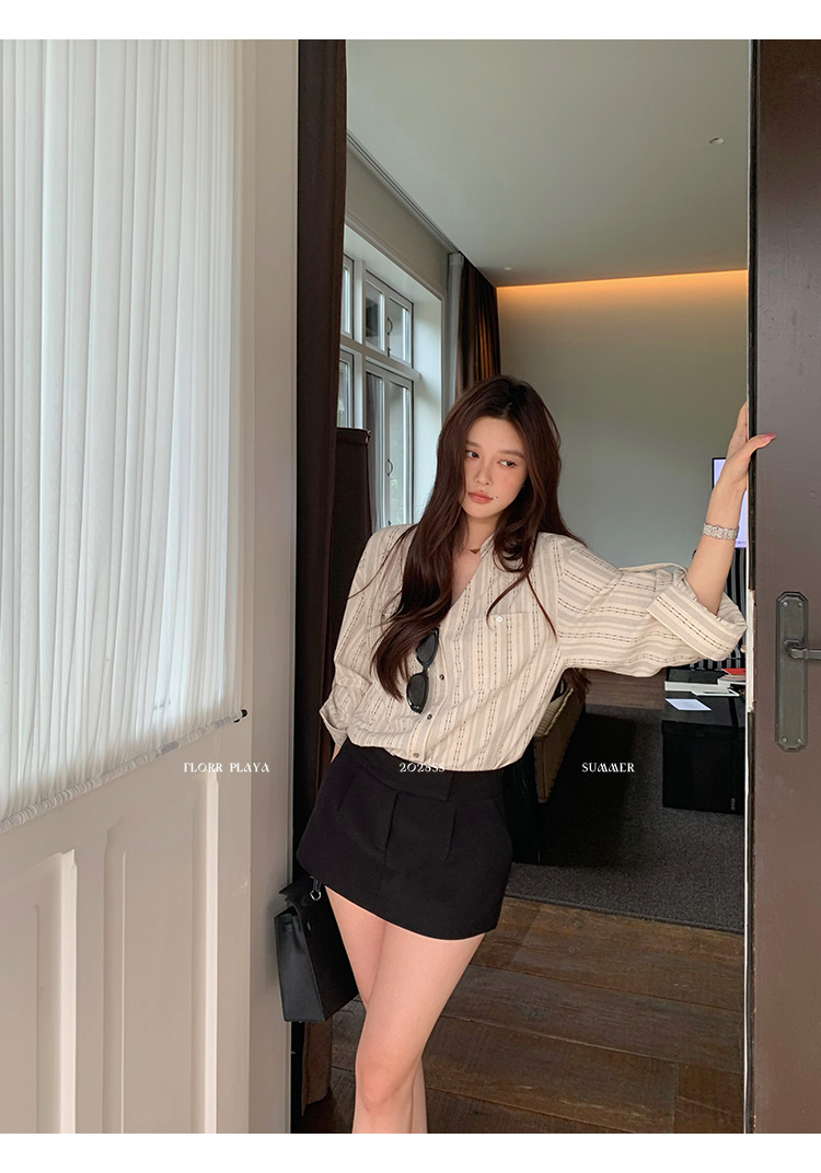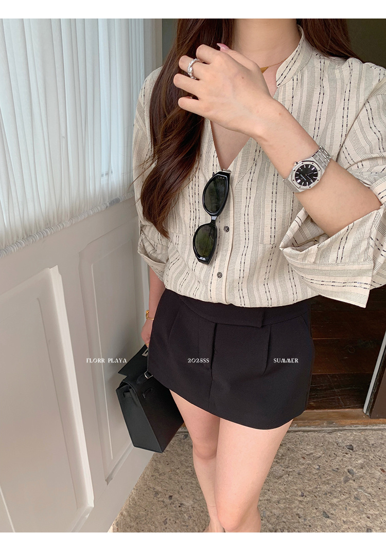 送8元退货运费【老钱风亚麻立领衬衫+百搭短款裙裤】早秋封神套装!王炸组合△版型不挑身材 颜色不挑肤色四搭配裙裤简直韩系女主即视感~