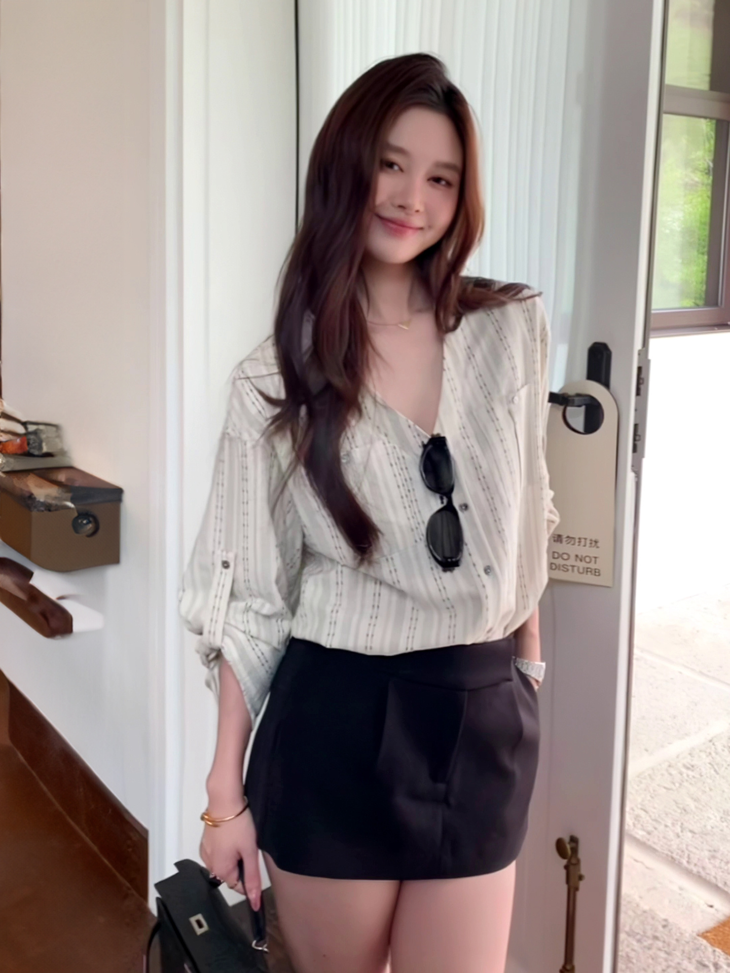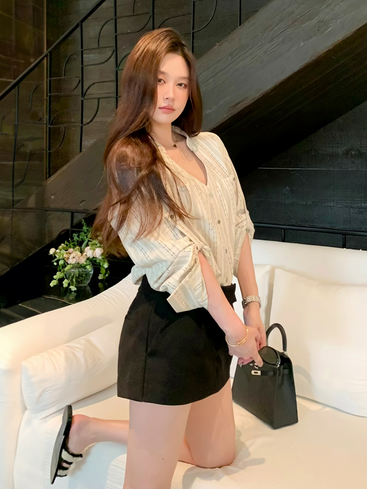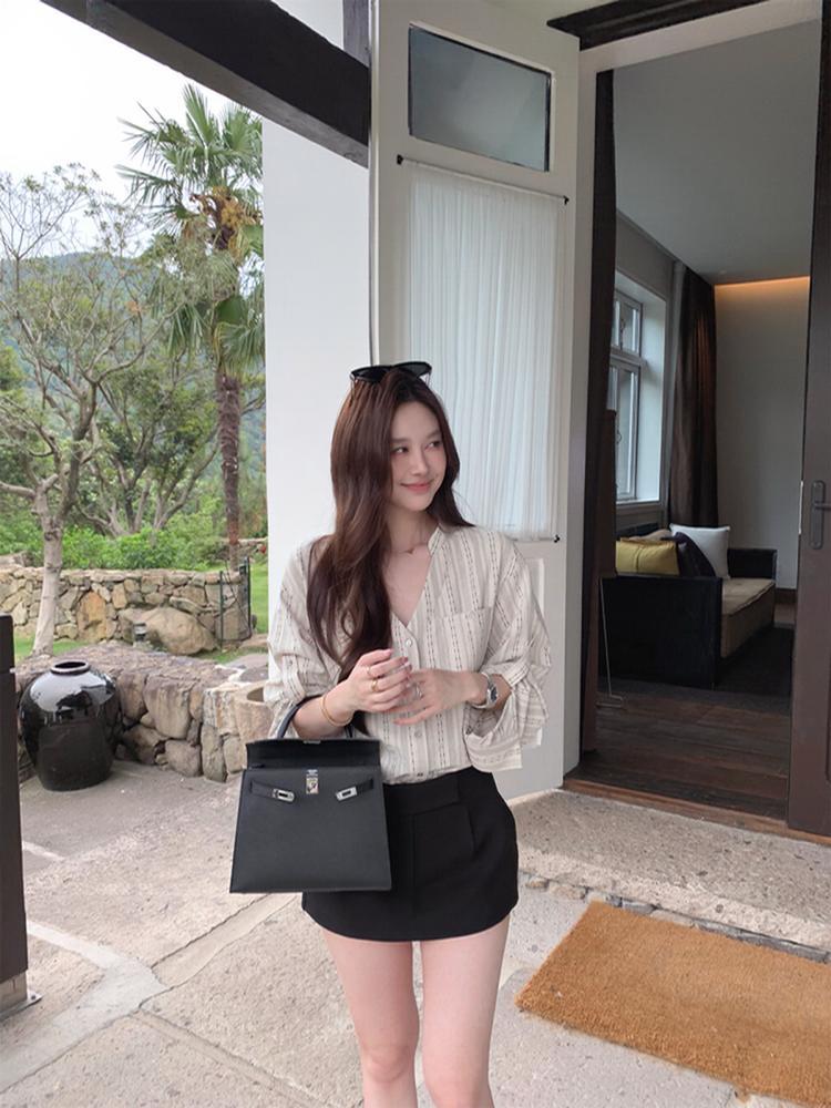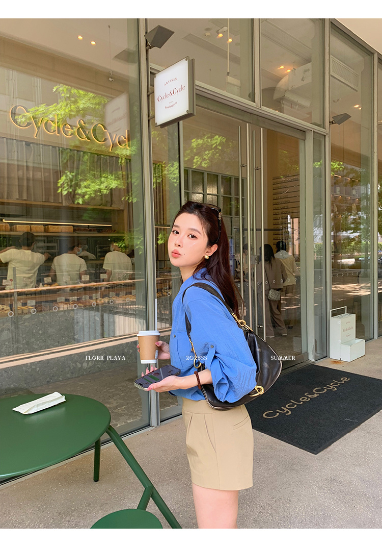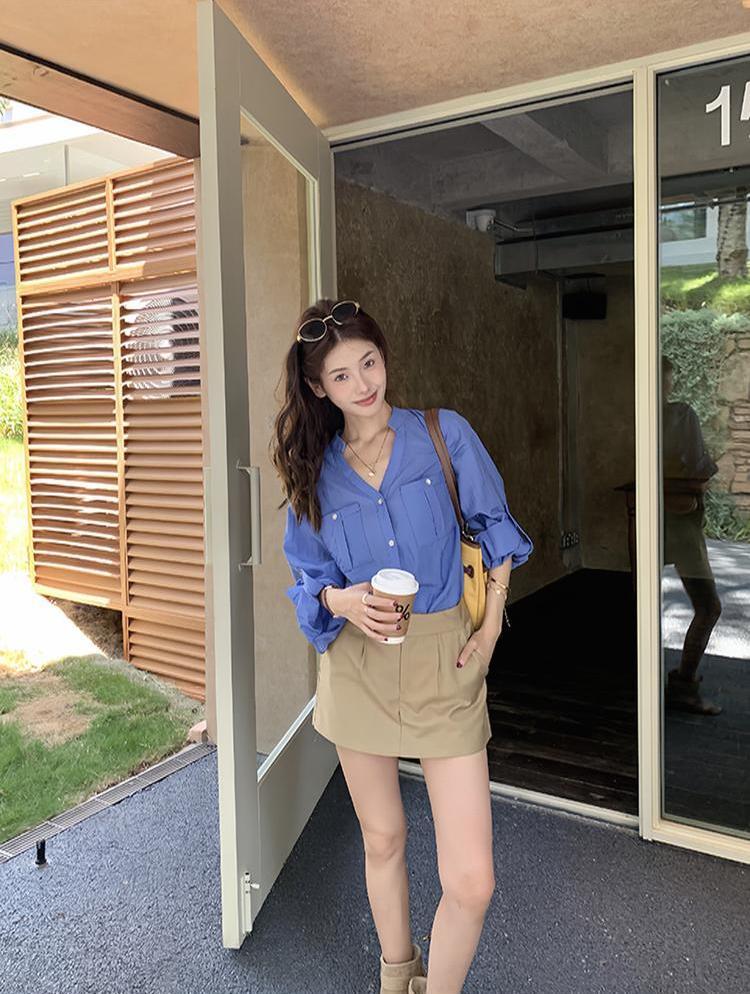 送8元退货运费【老钱风亚麻立领衬衫+百搭短款裙裤】早秋封神套装!王炸组合△版型不挑身材 颜色不挑肤色四搭配裙裤简直韩系女主即视感~