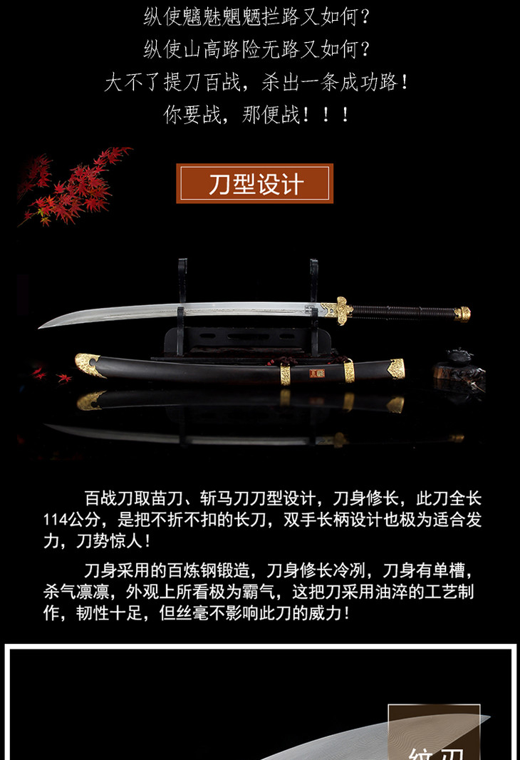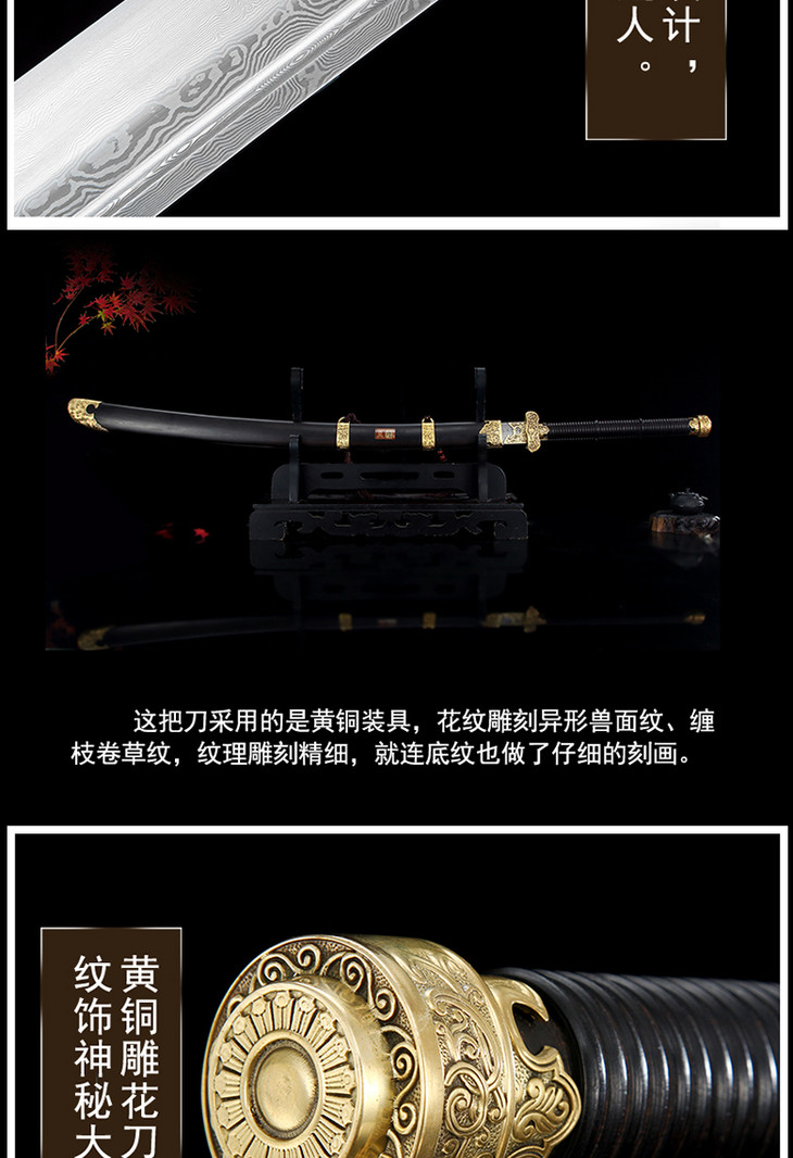 百战刀,百炼钢黄铜装双收长柄战刀!(未开刃)