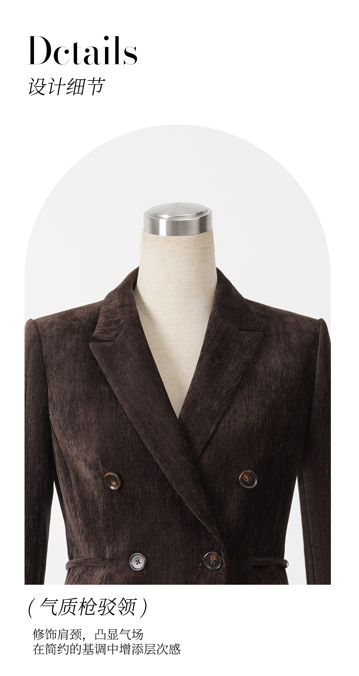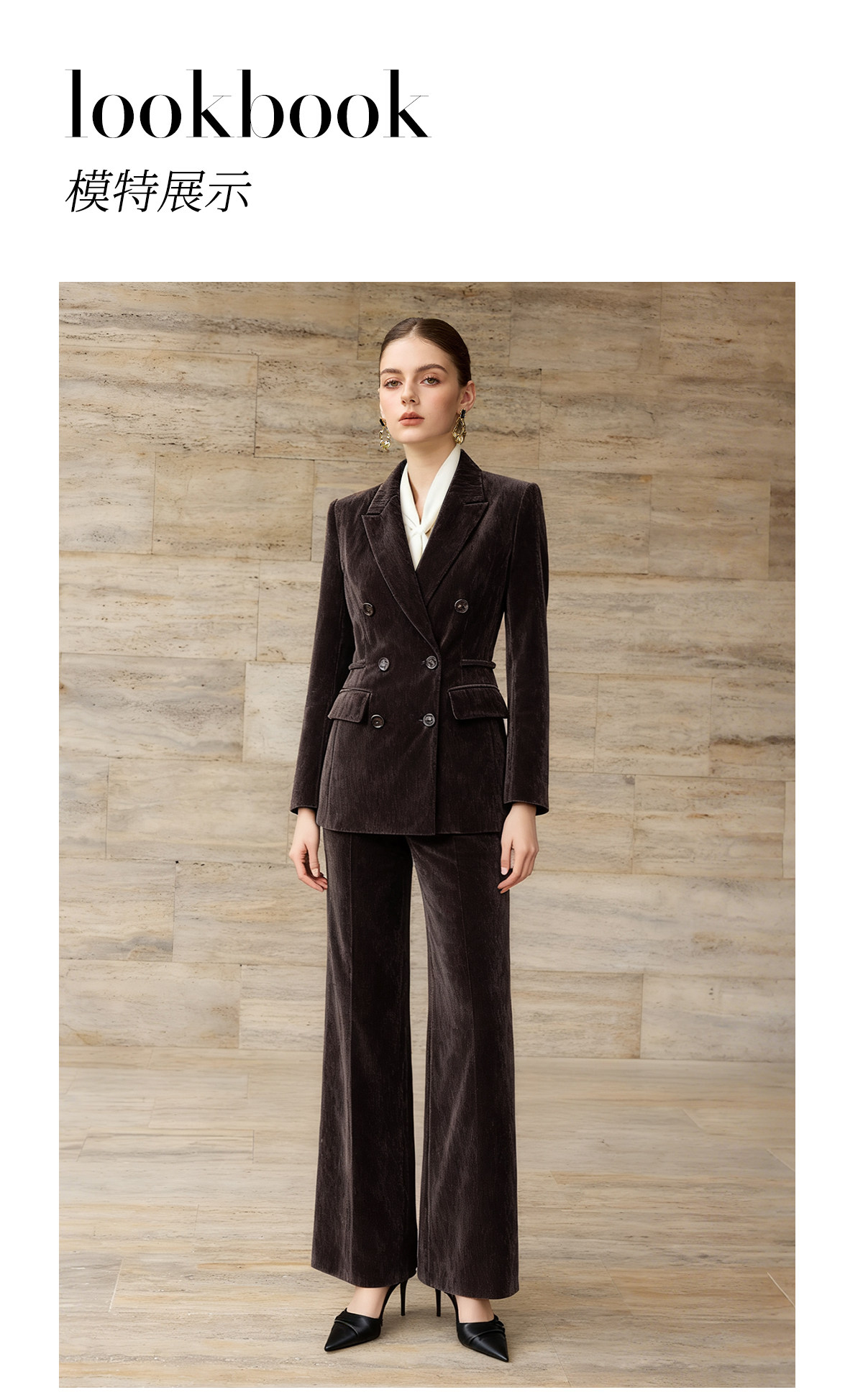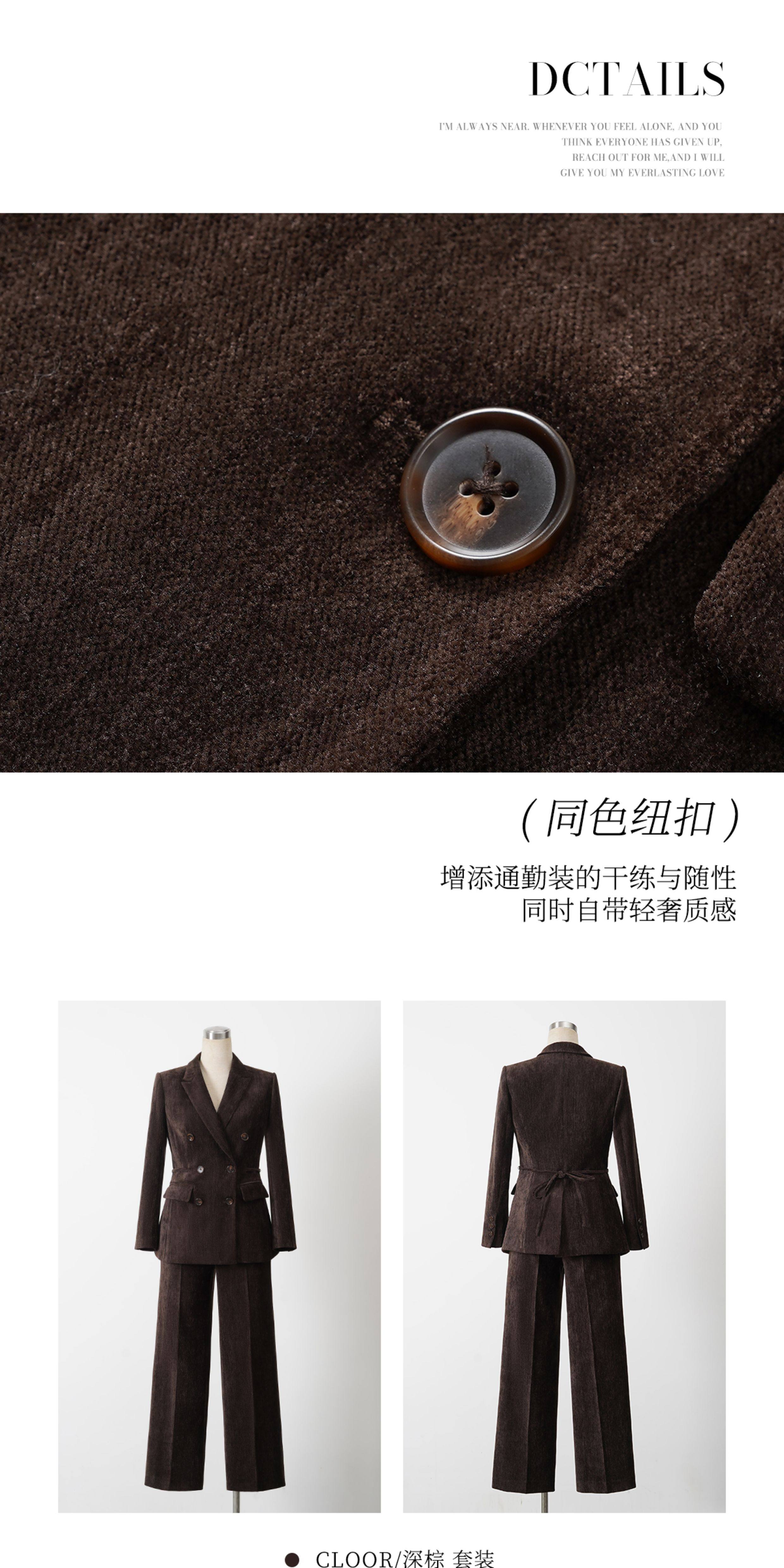 艾尚臣高级感雪尼尔西装套装女冬职业装双排扣灯芯绒通勤休闲西服