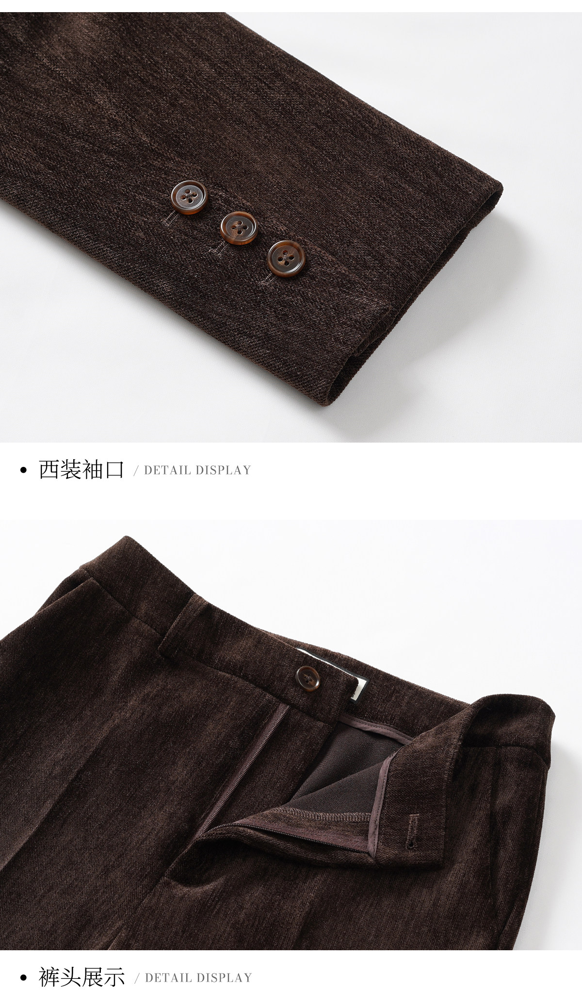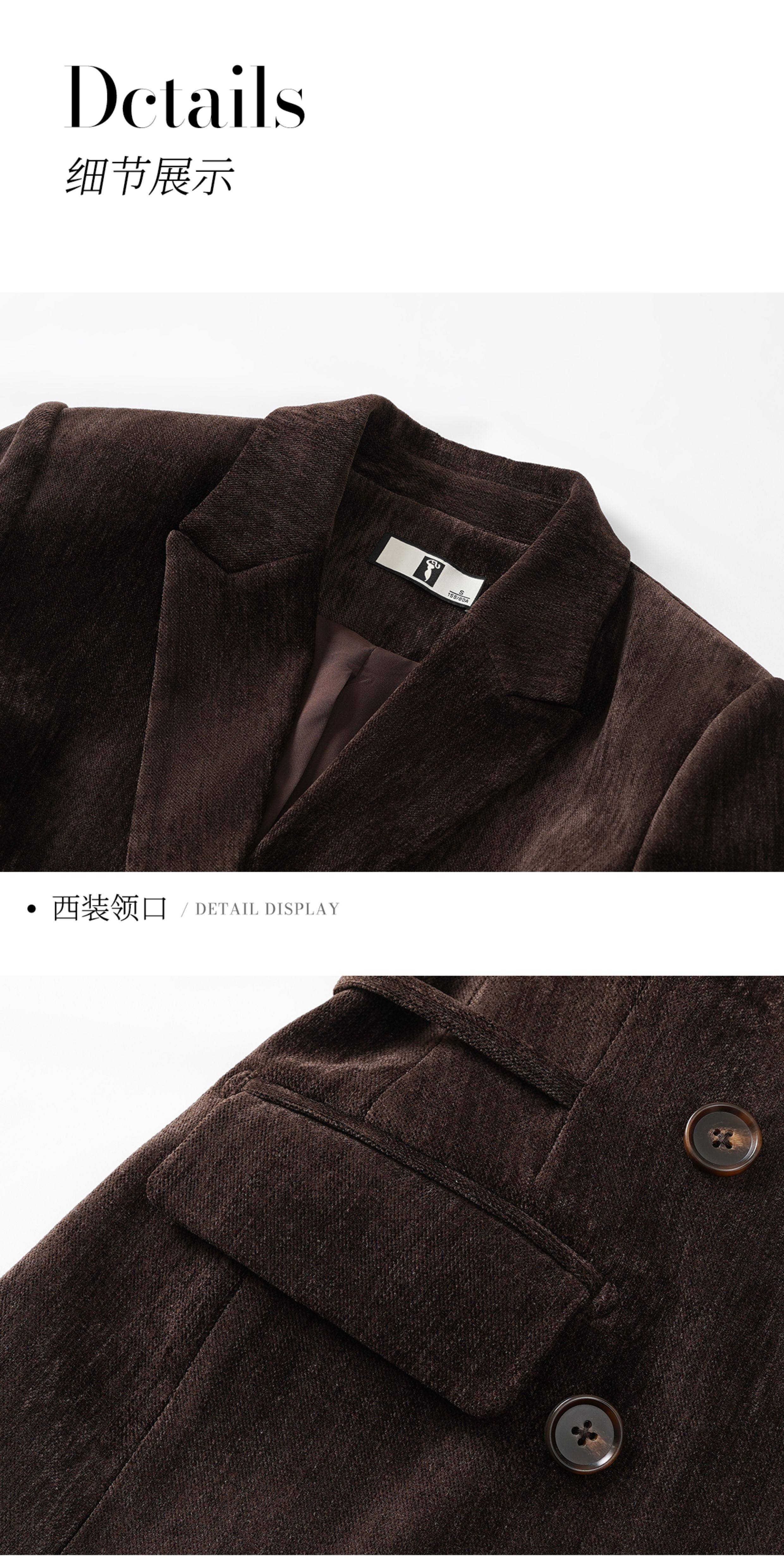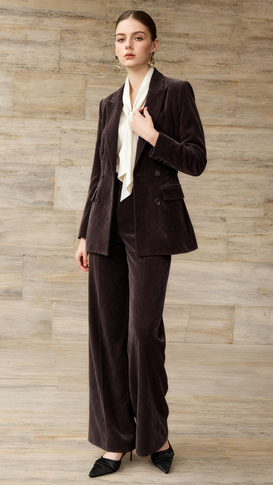 艾尚臣高级感雪尼尔西装套装女冬职业装双排扣灯芯绒通勤休闲西服
