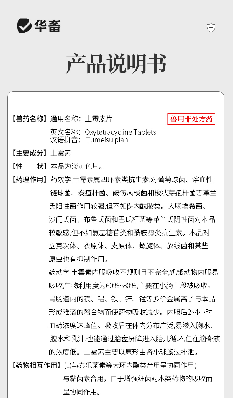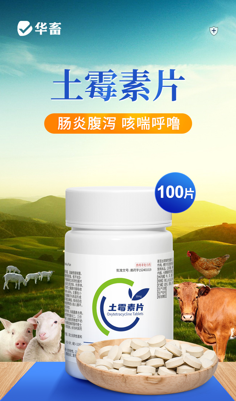 华畜土霉素片兽药兽用猪龟鱼用水族鸡鸭鹅羊宠物猫狗用腹泻拉稀消炎药