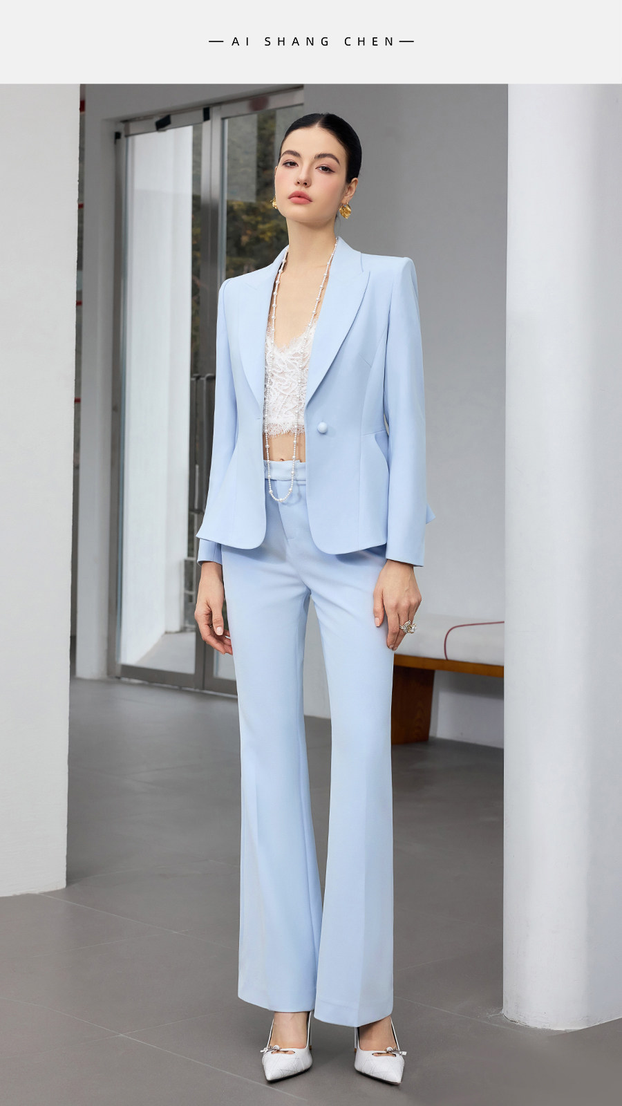 艾尚臣蓝色西装套装女修身医美职业装商务风高级感职场正装主持人