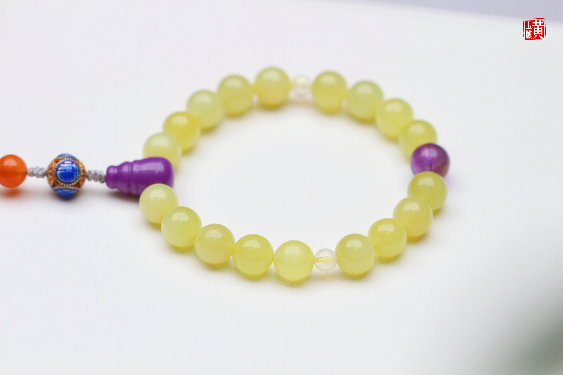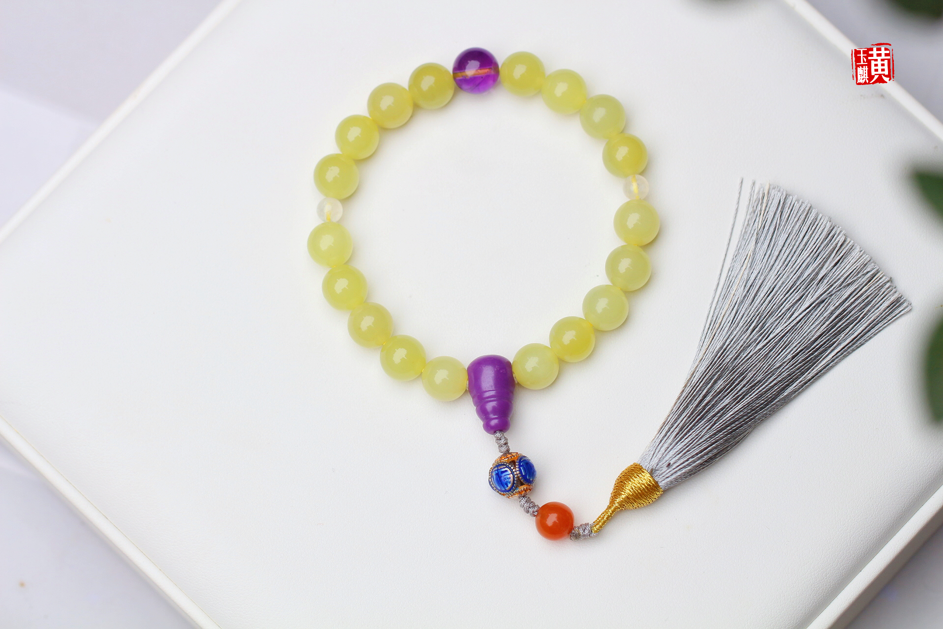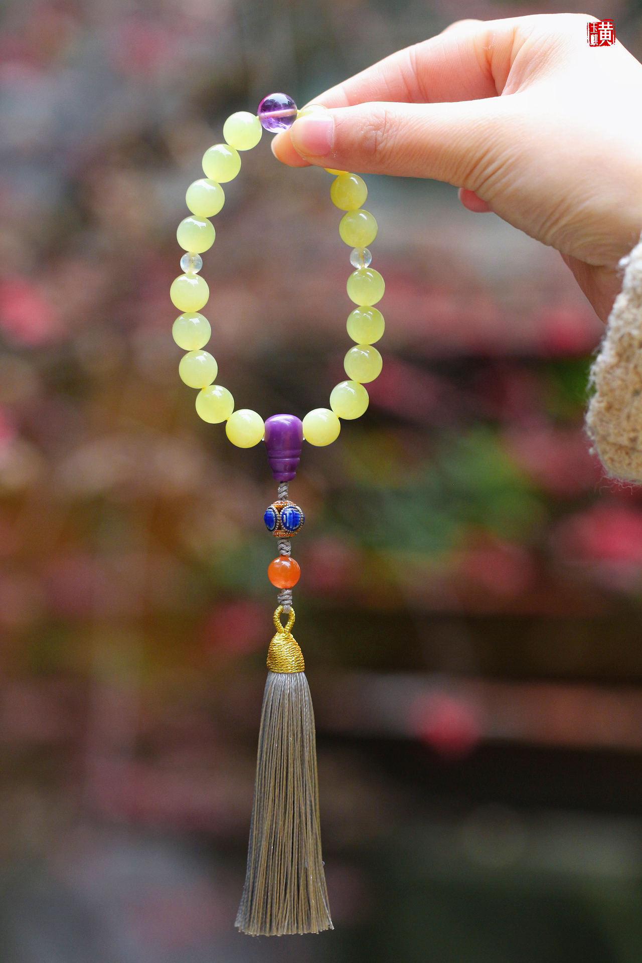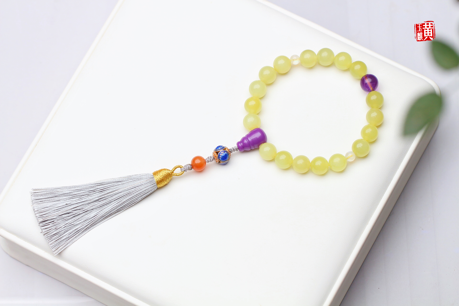 配饰:南红、紫云母、紫水晶、月光石、景泰蓝、流苏