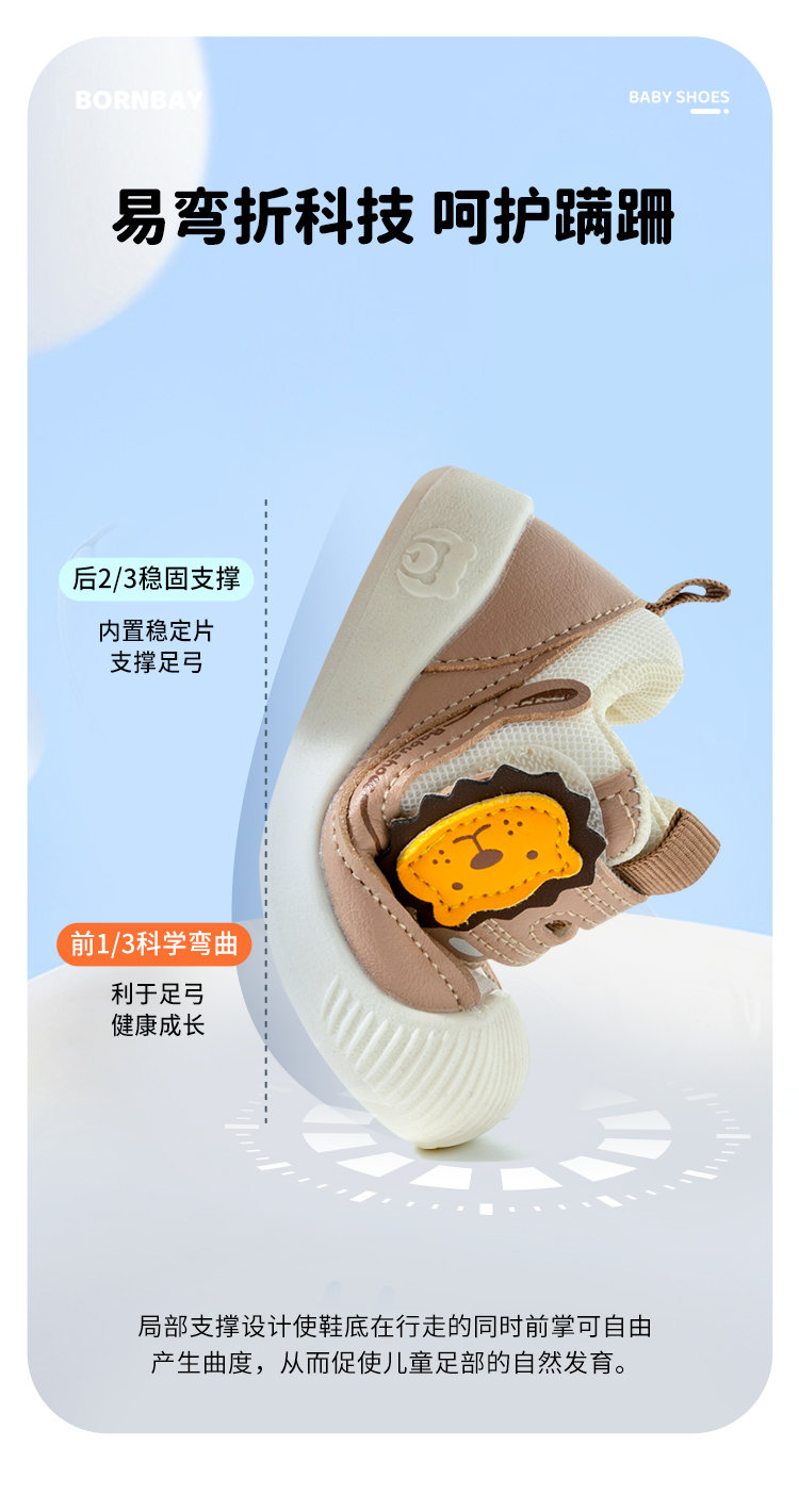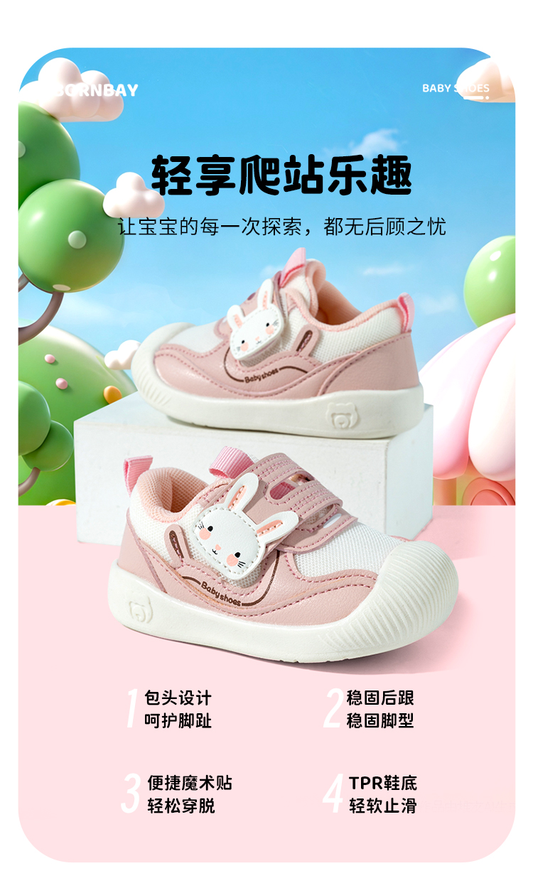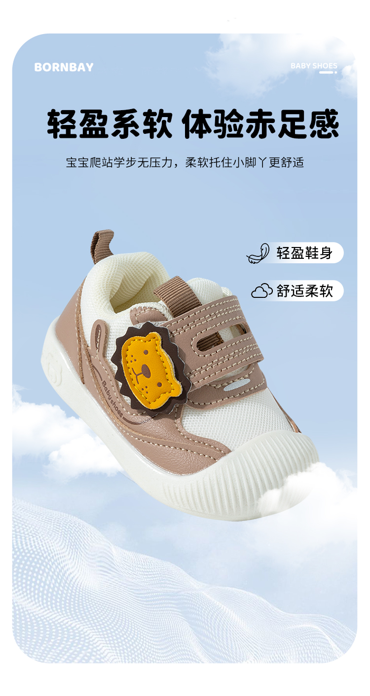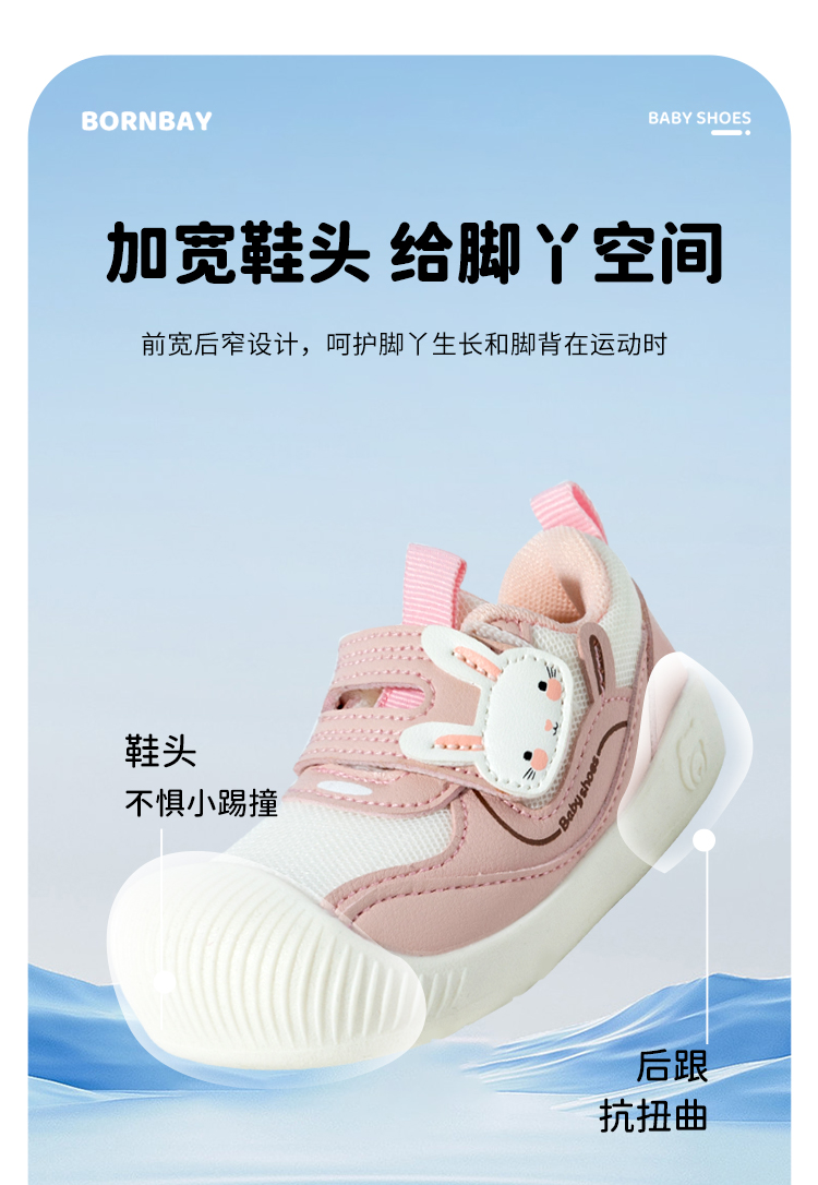 贝贝怡25春新款男女宝宝学步鞋软底网面包头鞋儿童稳步鞋ZB1EX011