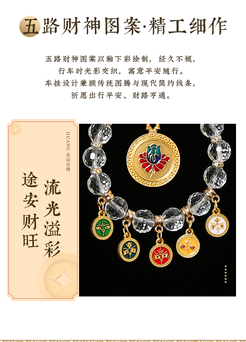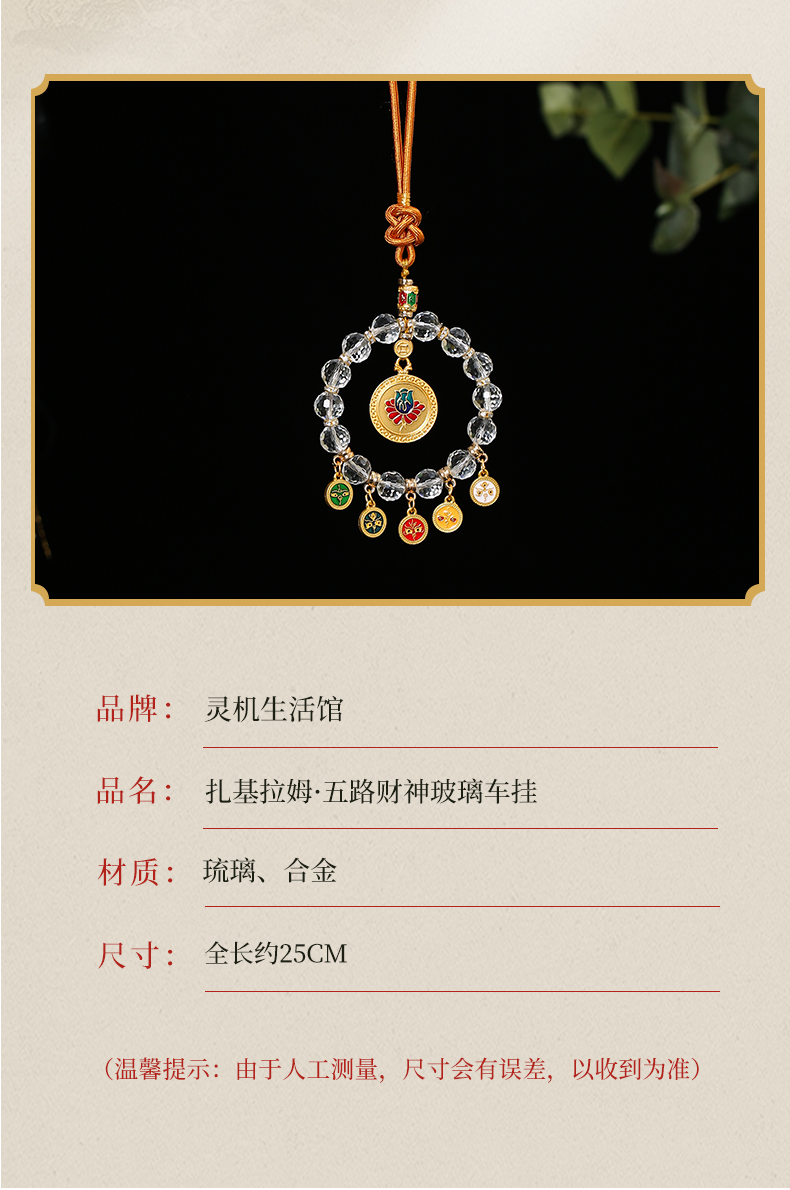 【新品】灵机生活馆扎基拉姆五路财神玻璃车挂