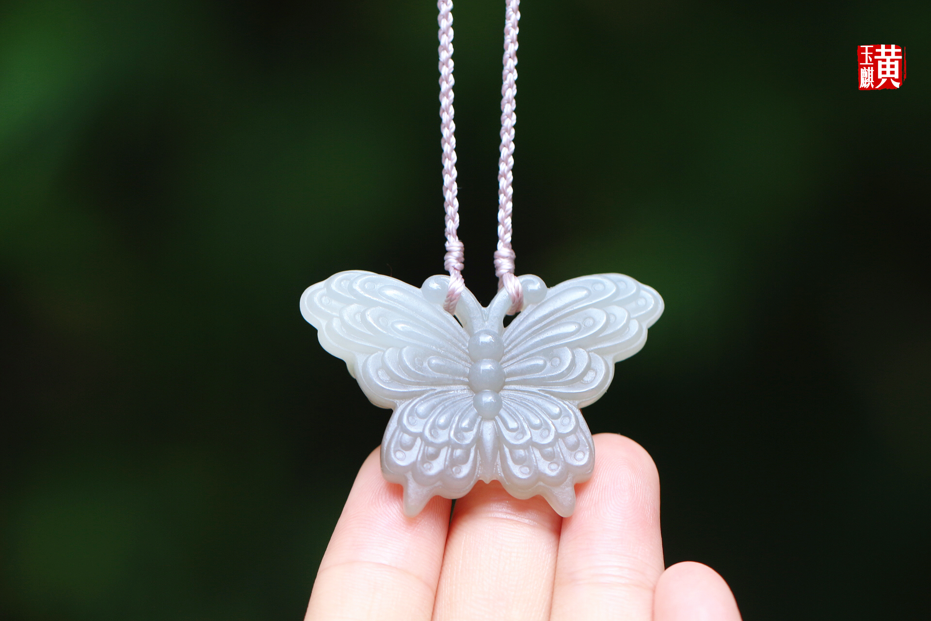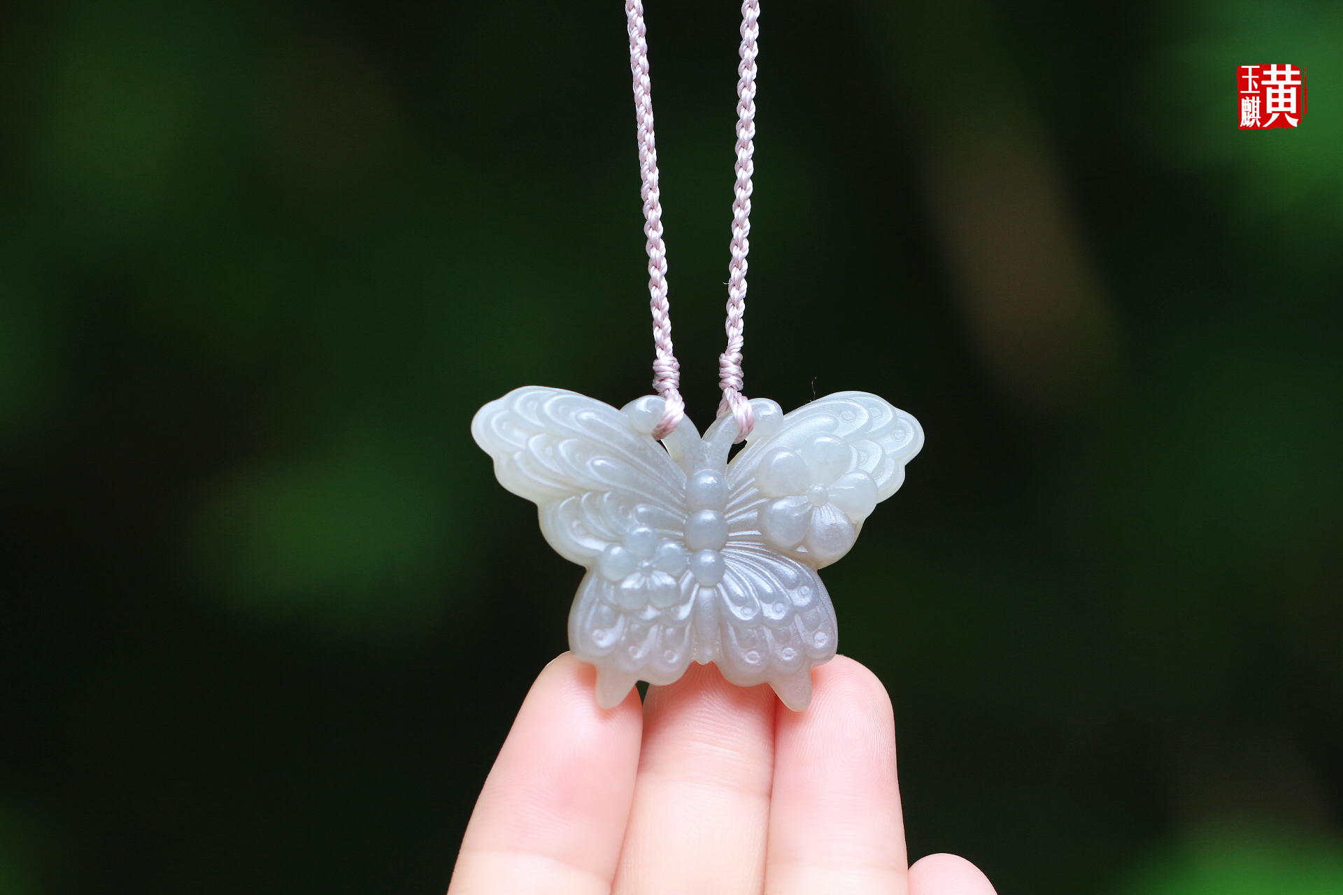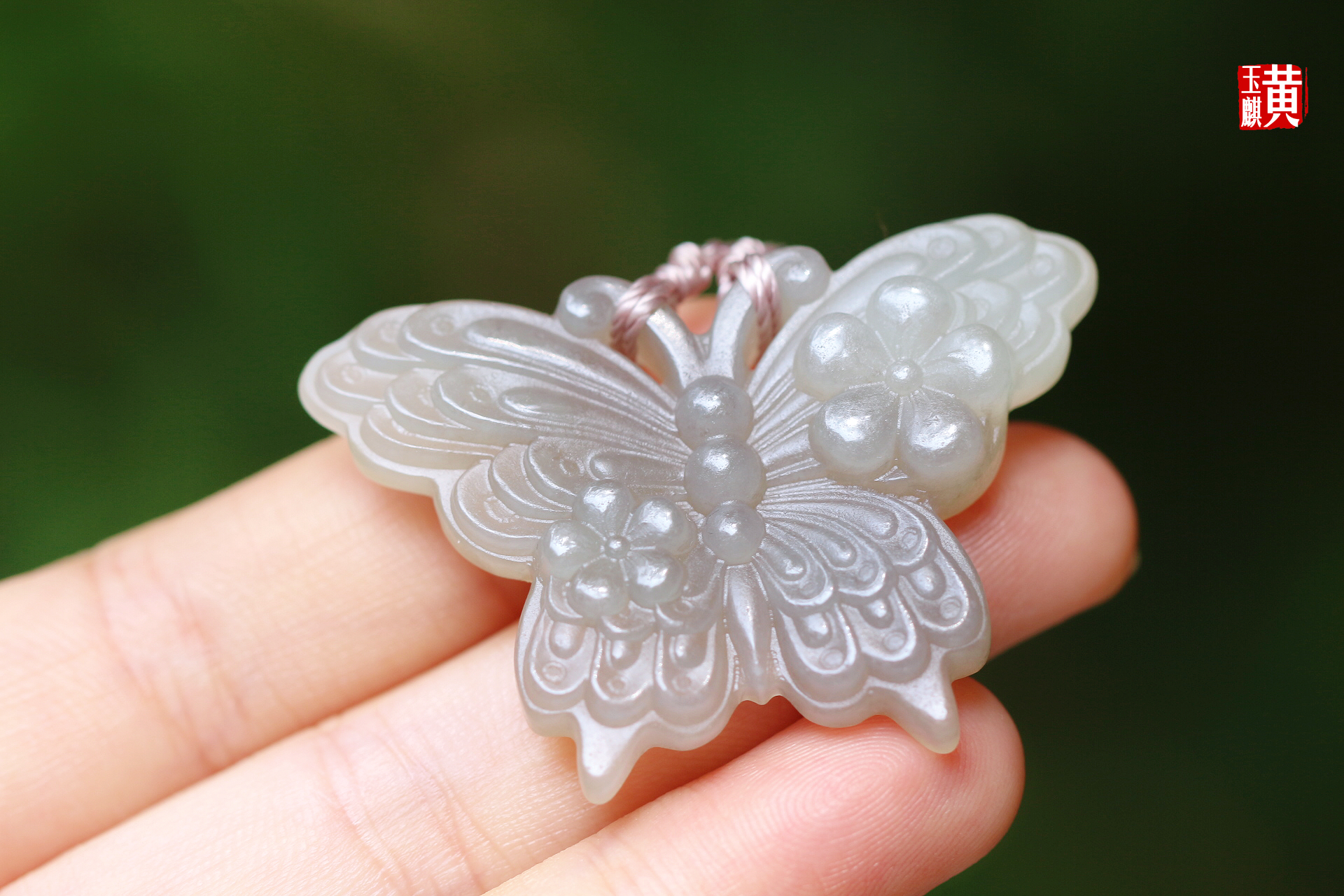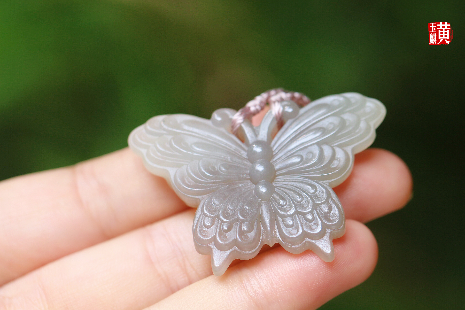 和田玉烟青【蝴蝶】吊坠 配精美挂绳
