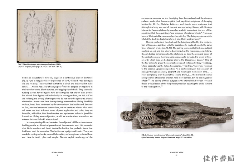 Insightful curatorial essays accompanied by beautiful full-color reproductions explore this difficult but compelling work, considering themes such as the life, death and rebirth of Bloom’s artistic reputation; the growing divide between figuration and abstraction at this defining moment of American art; earlier artistic traditions of representing mortality; the relationship between these works and Bloom’s Judaism, interest in Eastern religions, and belief in reincarnation; and the artist’s desire to find beauty and meaning within death and decay. In these drawings and paintings, as Bloom himself asserted, “the paradox of the harrowing and the beautiful [can] be brought into unity.”