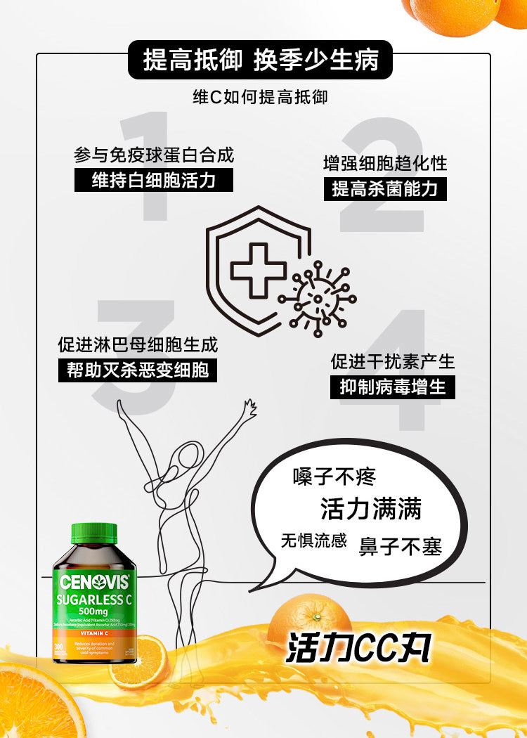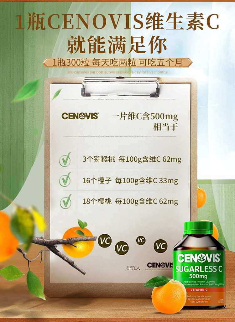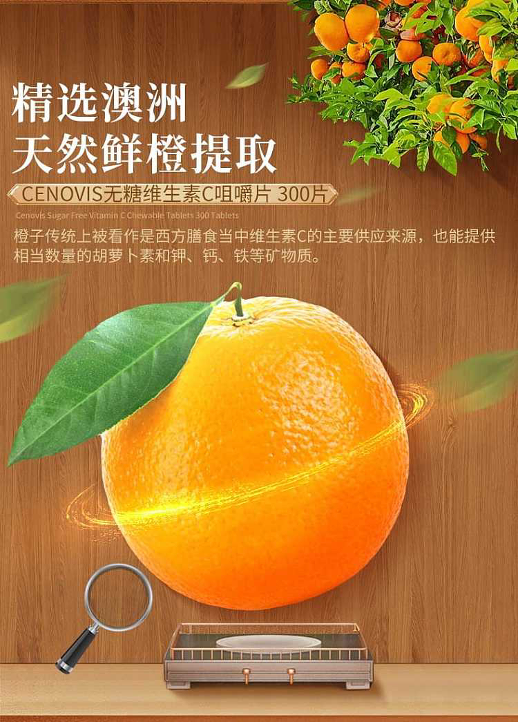 Cenovis维生素C儿童成人无糖维C美白抵抗力一直黑色素咀嚼片300粒 墨姐澳洲代购