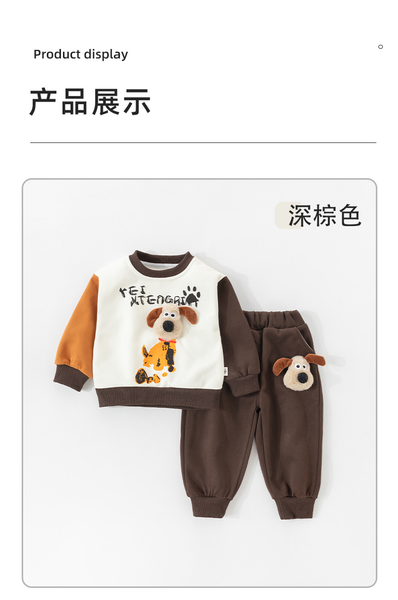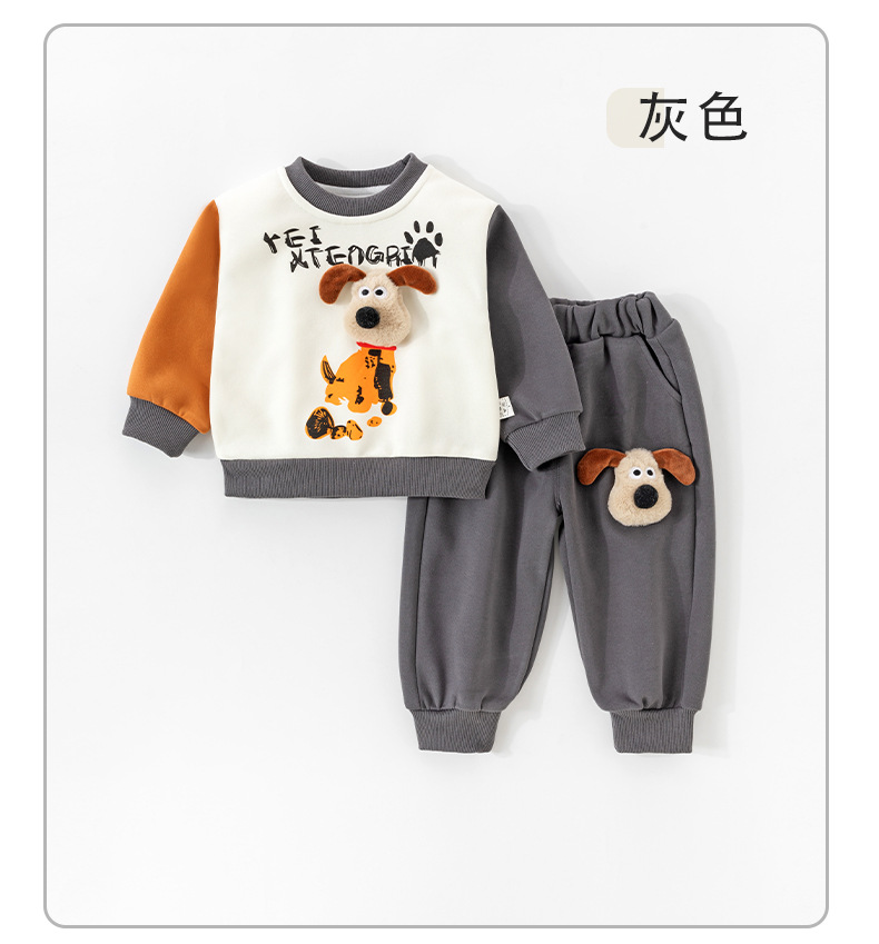 【小狗圆领儿童卫衣套装】春秋季新款男童卫衣卫衣两件套宝宝外出休闲套装秋季